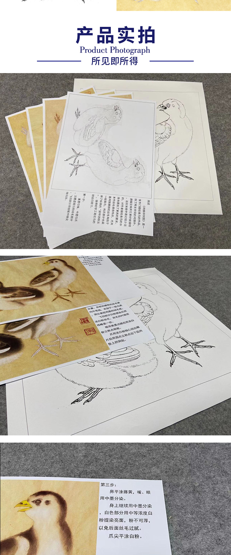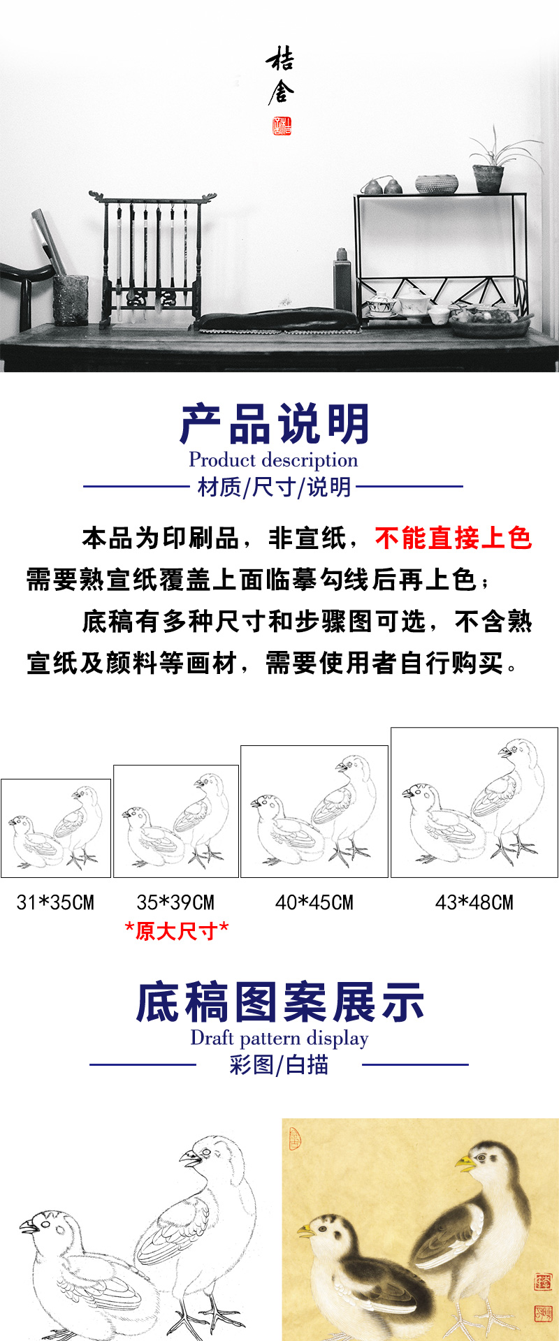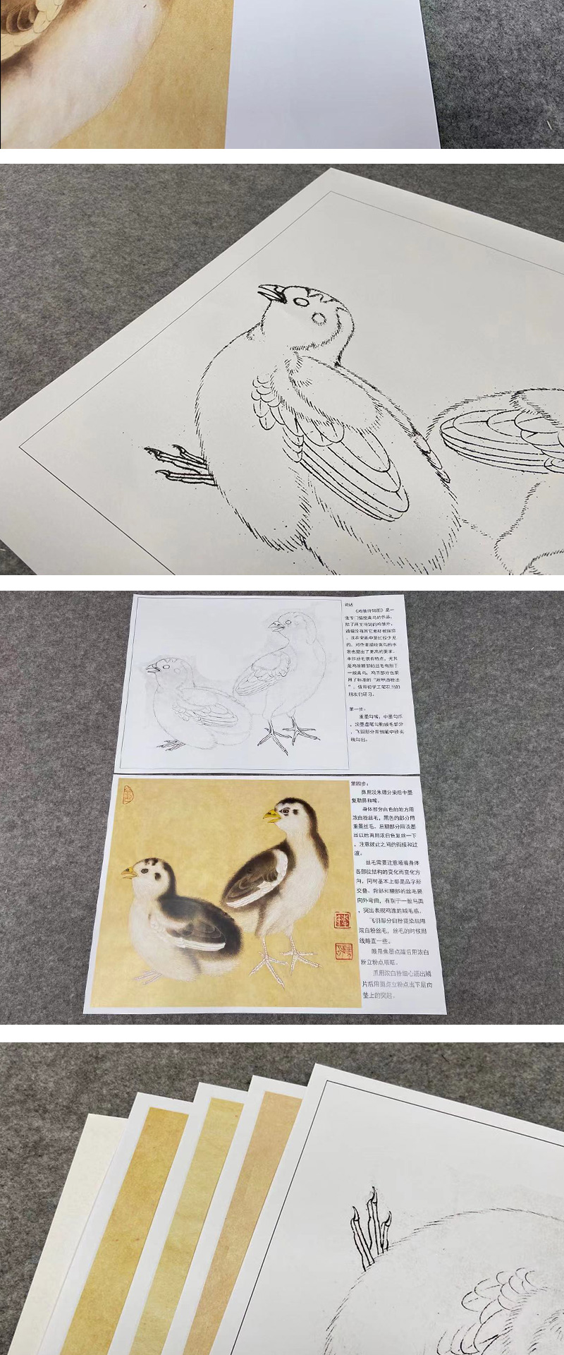 【有步骤、大彩图】李晓明工笔画白描底稿斗方小品《鸡雏待饲图》初学者临摹高清打印稿KC30