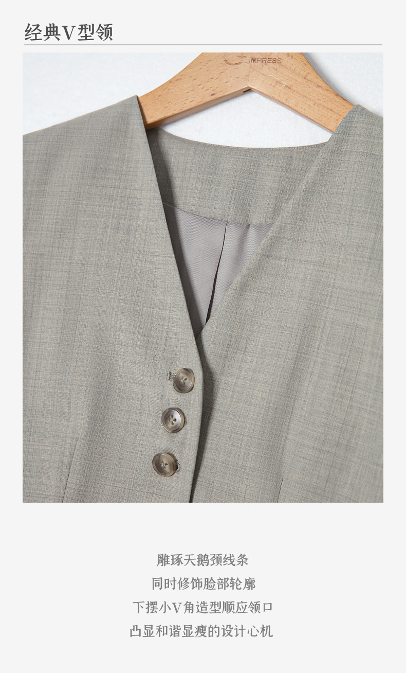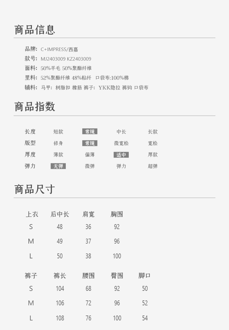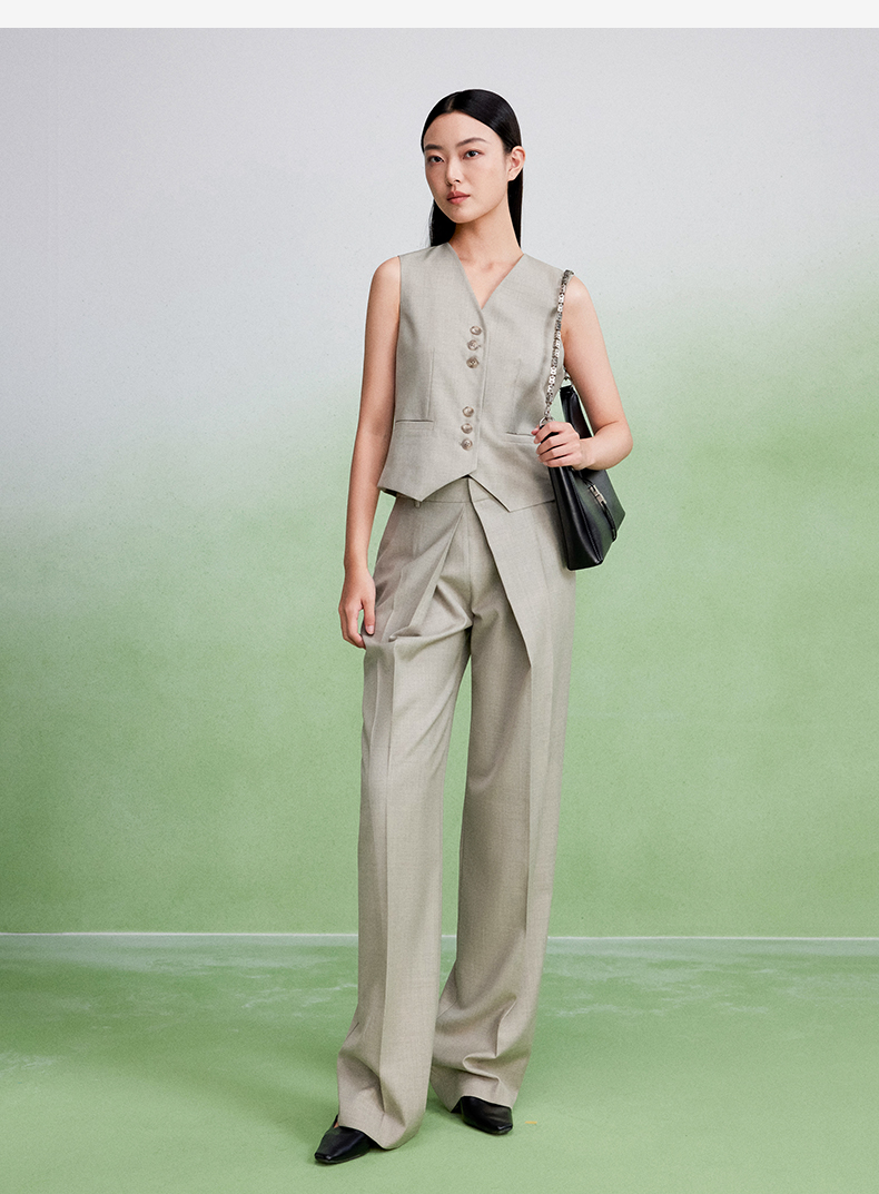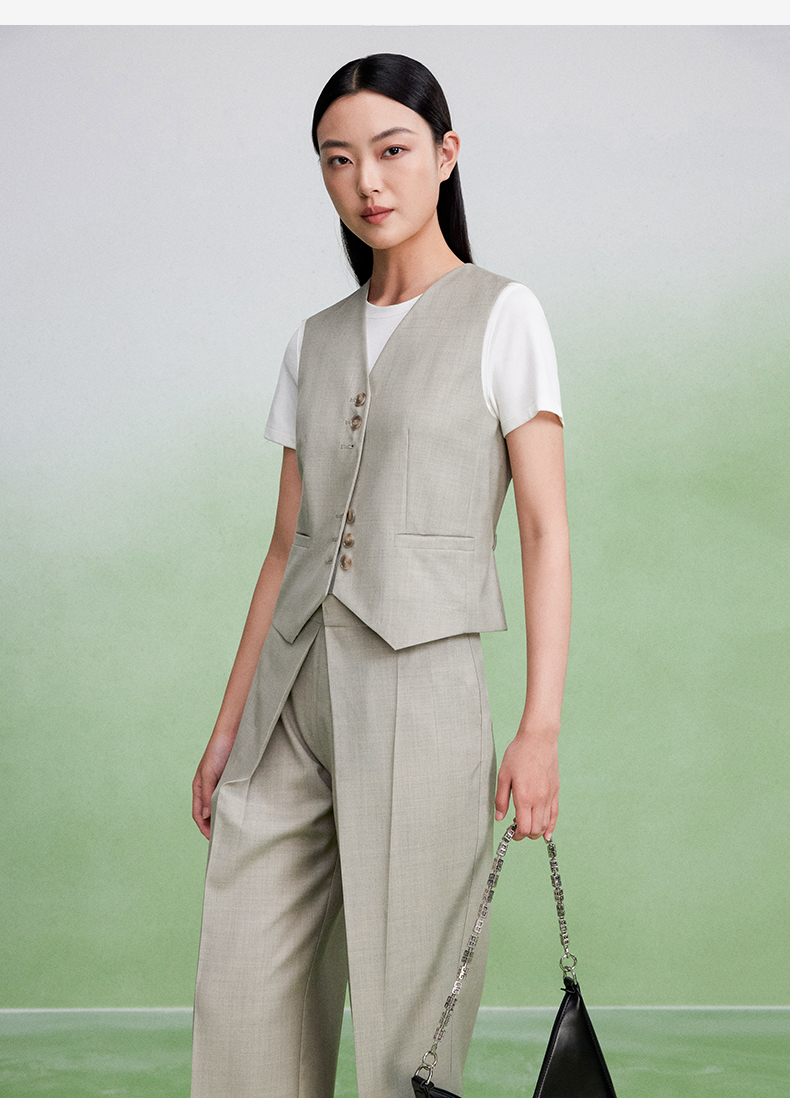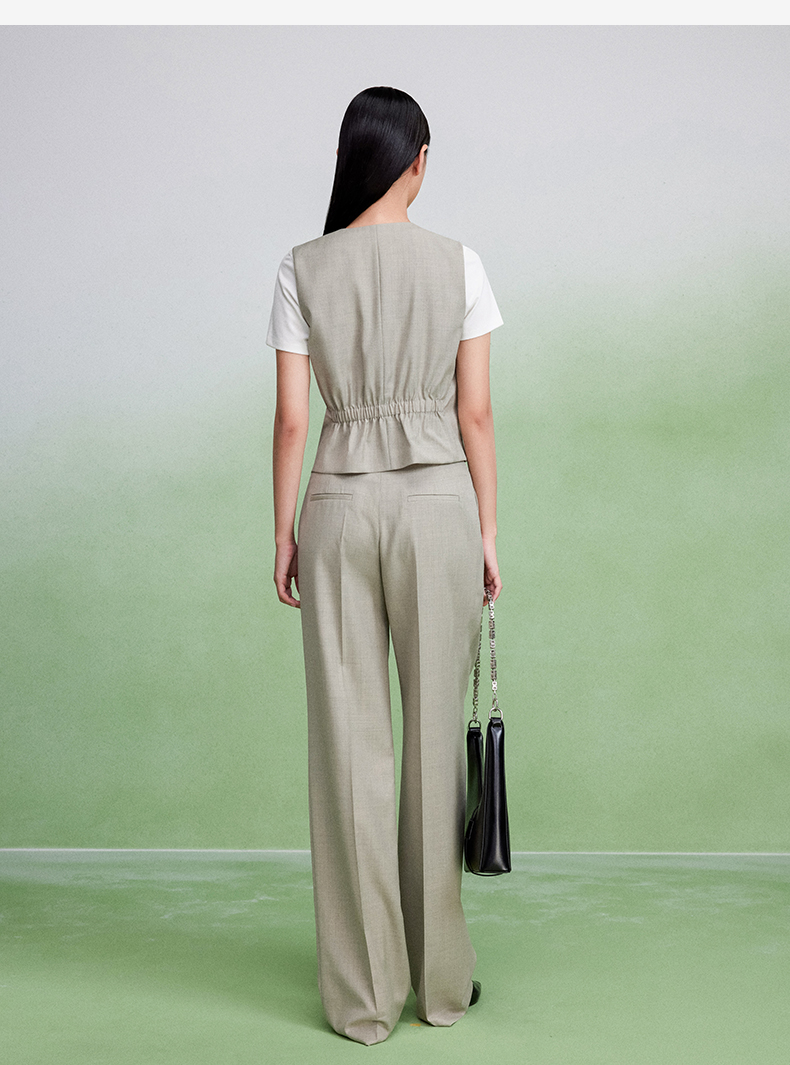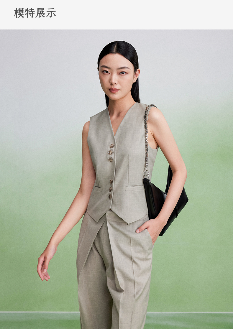 【清仓】西嘉老钱风马甲套装|混色肌理精纺羊毛经典无领马甲+对褶显瘦阔腿裤MJ2403009