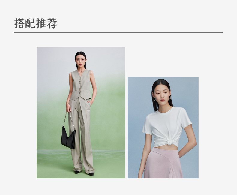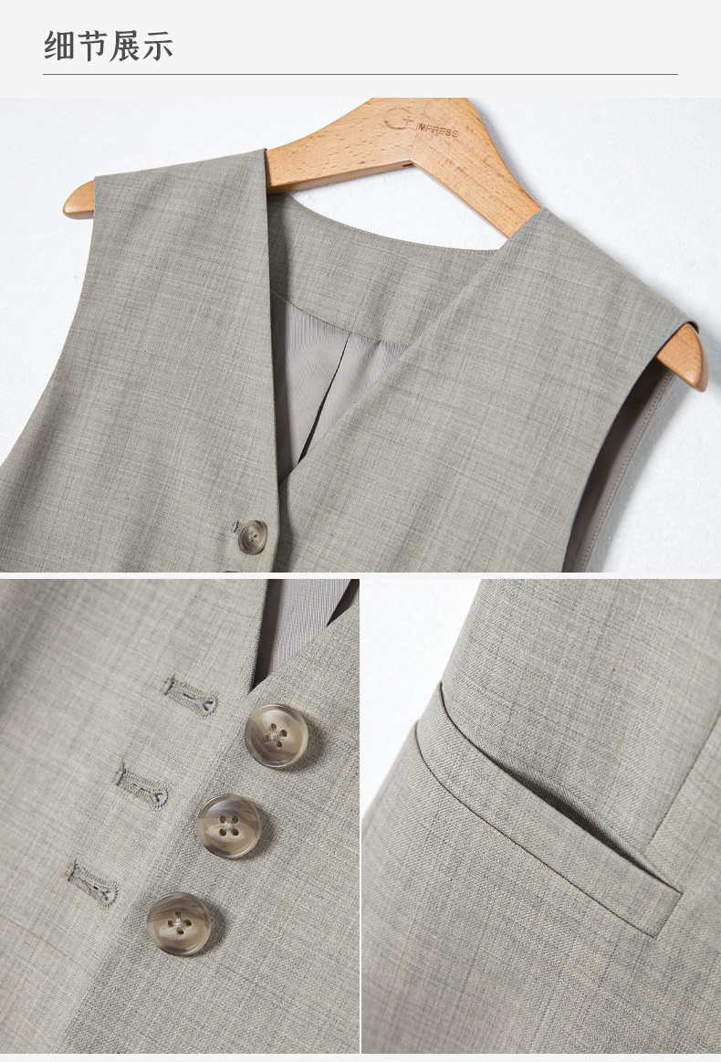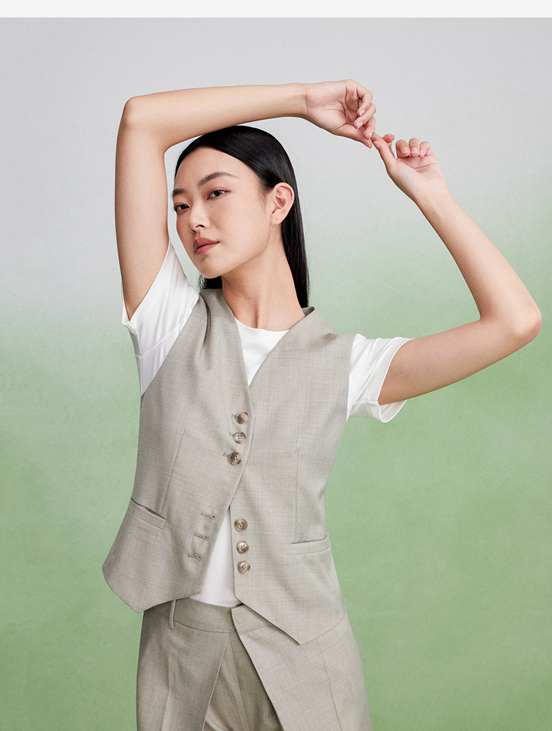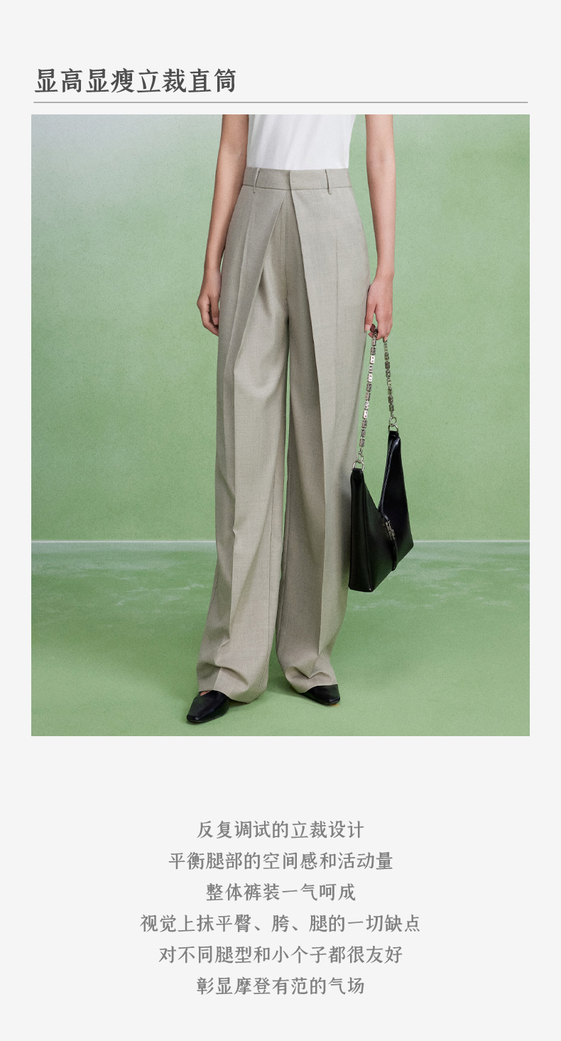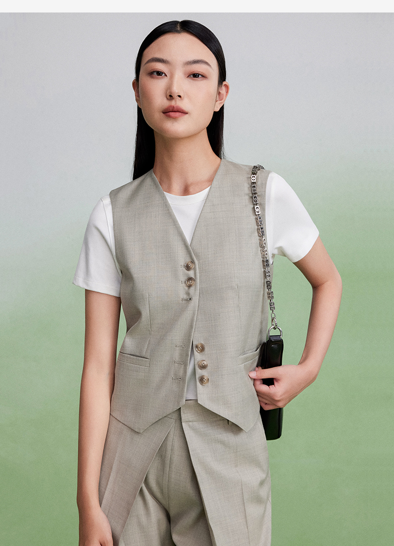 【清仓】西嘉老钱风马甲套装|混色肌理精纺羊毛经典无领马甲+对褶显瘦阔腿裤MJ2403009