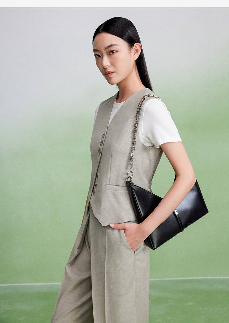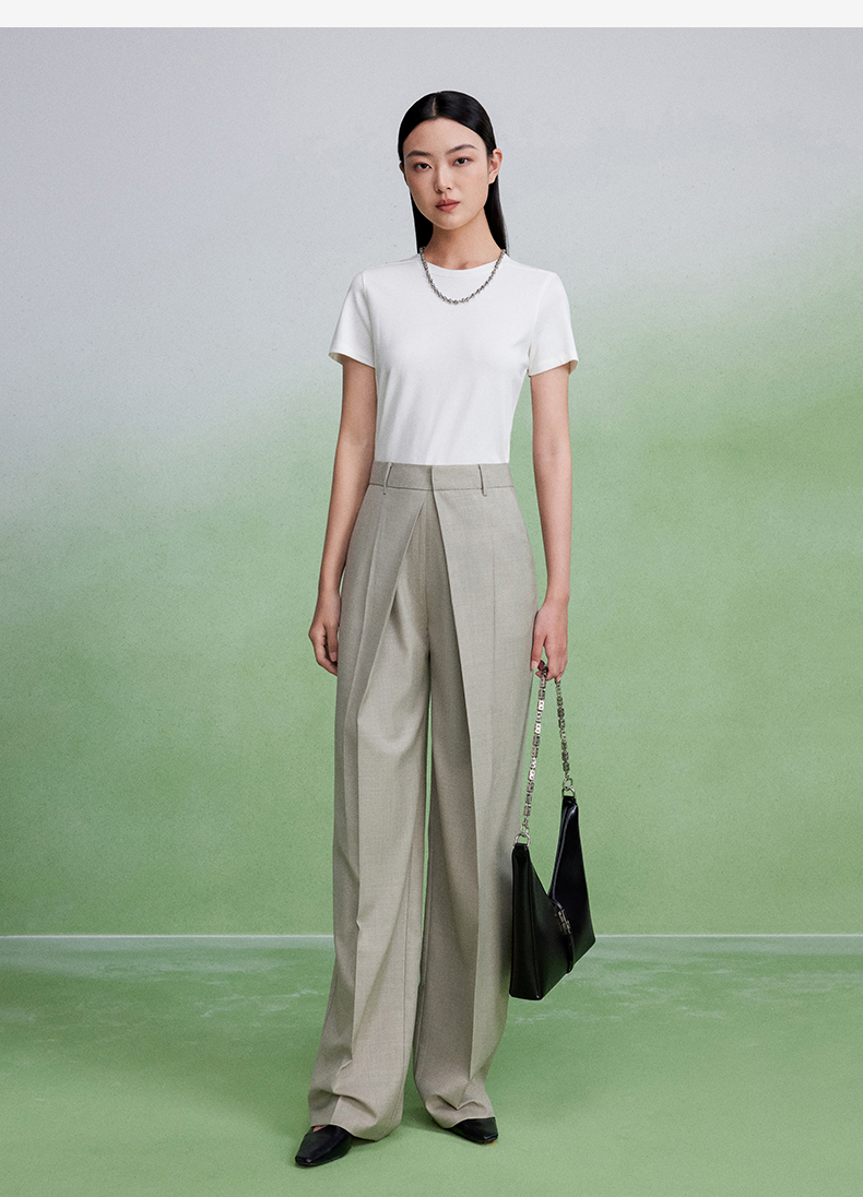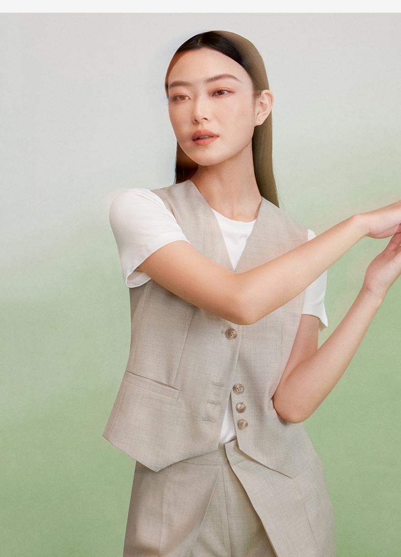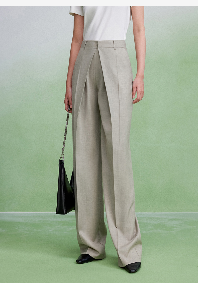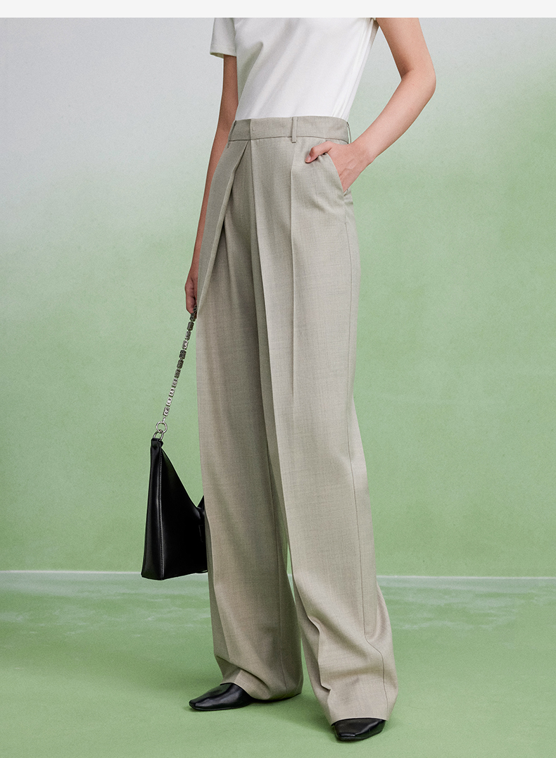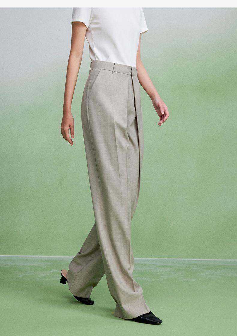 【清仓】西嘉老钱风马甲套装|混色肌理精纺羊毛经典无领马甲+对褶显瘦阔腿裤MJ2403009