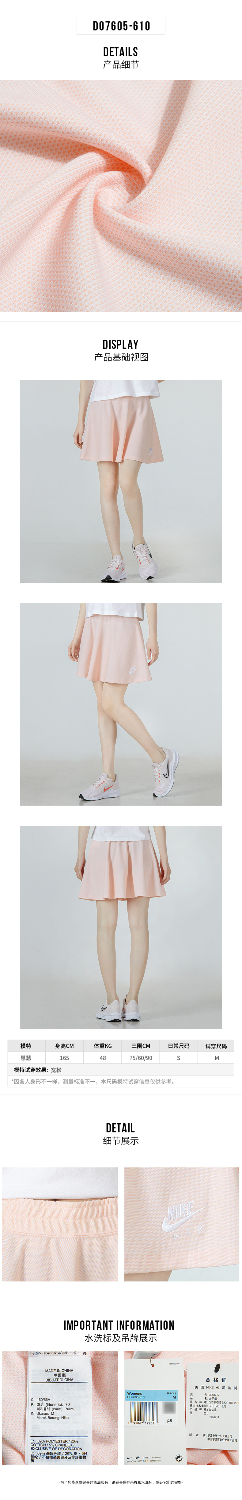 【库存有限 无货将做退款】Nike/耐克运动短裙女夏季新款粉色半身裙休闲A字裙DO7605-610