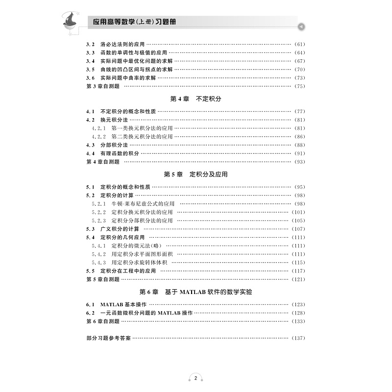这本习题册是结合教材《应用高等数学》(上)编写的配套习题册。本书贯穿能力培养和分层教学的思路,其目的是提高学生学习的时效性,提升学生的解题能力,也为满足不同学生学习的需求。其内容包括六个学习模块:模块一函数、极限与连续;模块二导数、微分及其应用;模块三 导数的应用;模块四不定积分;模块五定积分及其应用;模块六一元函数微积分问题的MATLAB操作。