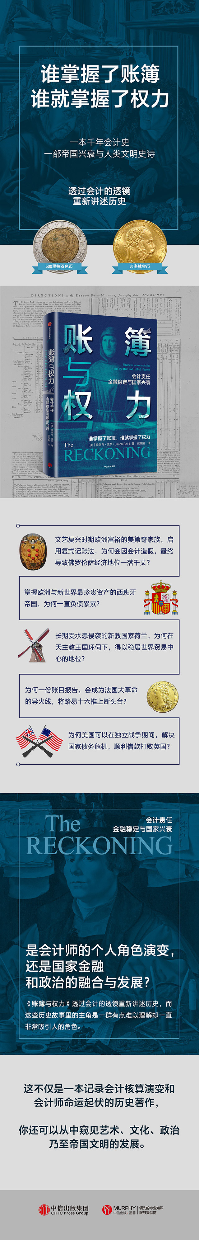 会计记账与诚信可靠的历史,都囊括在《账簿与权力》一书中,这本书记录了有关政治、道德、印刷、外在诱惑以及经济社会命运的那些惊心动魄的历史。