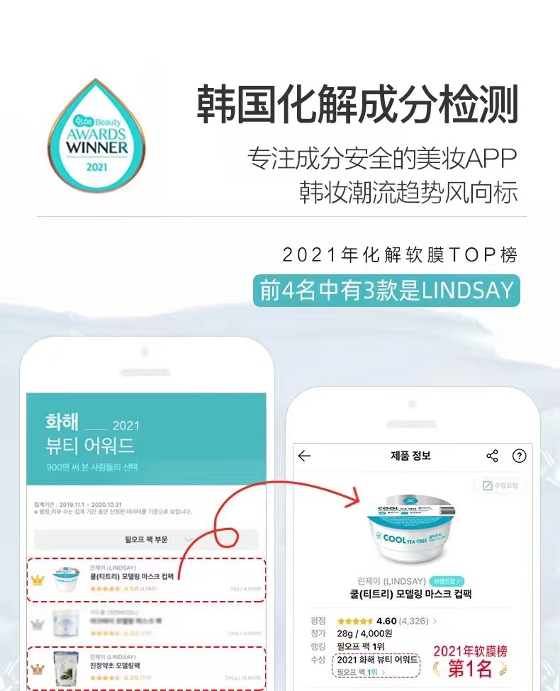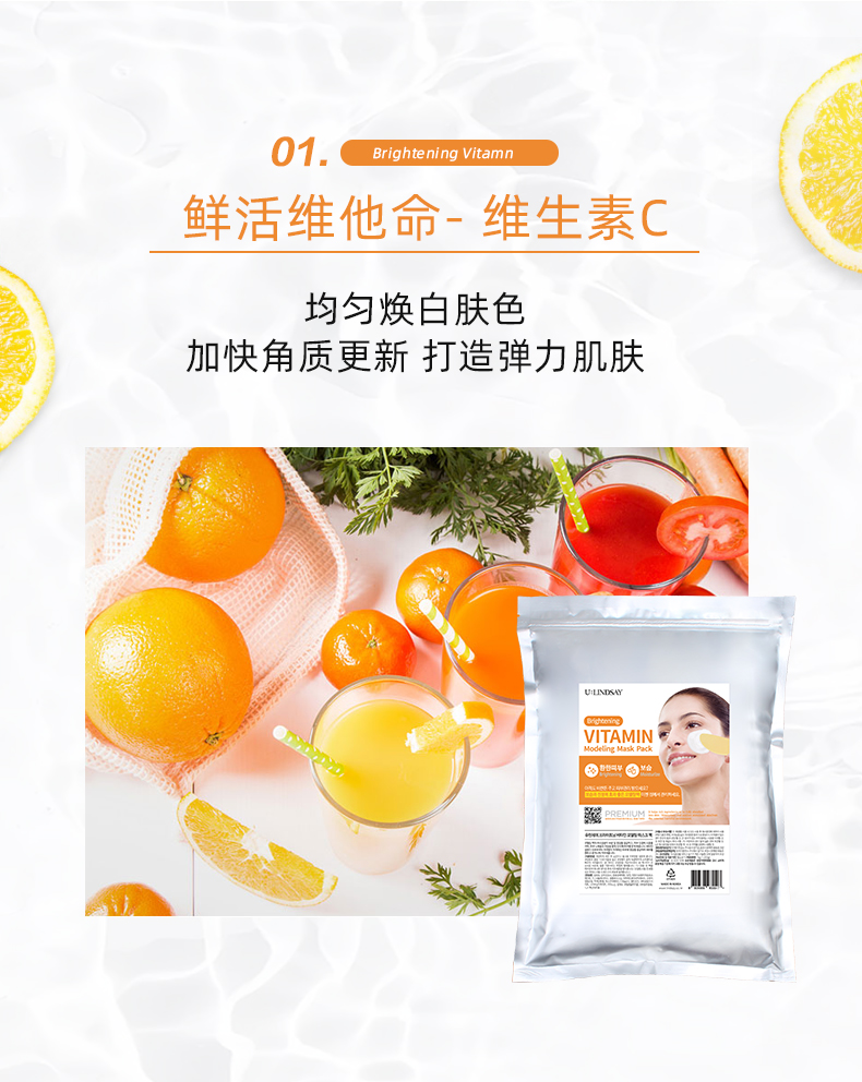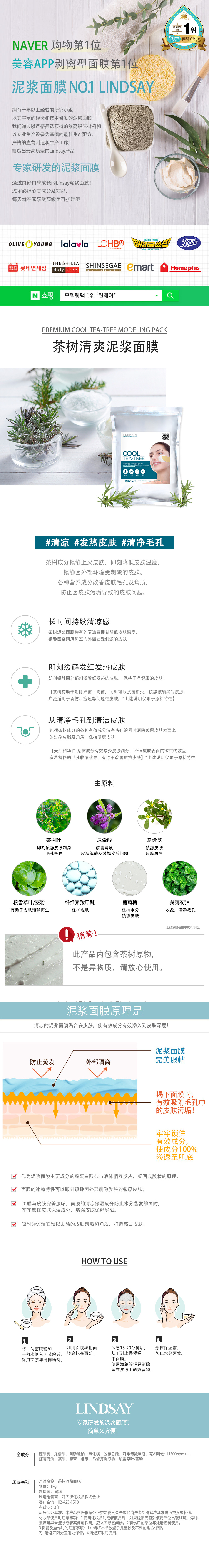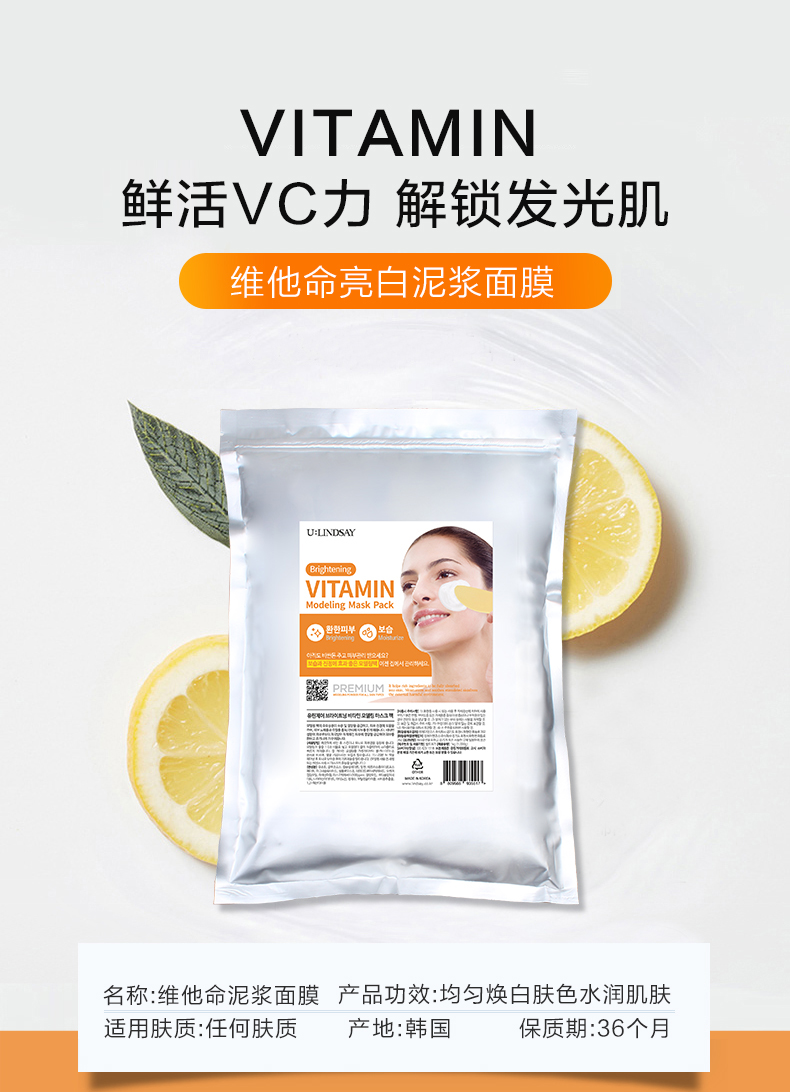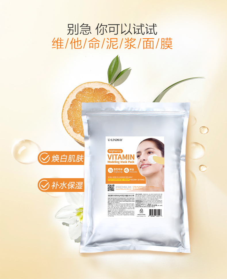 韩国U Lindsay林赛茶树/维他命/胶原蛋白泥浆面膜粉1000ml