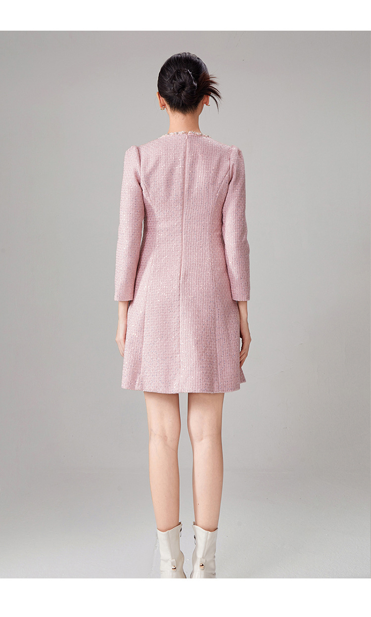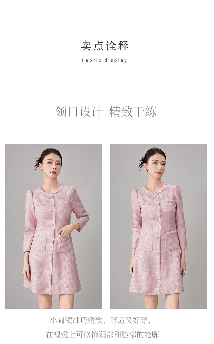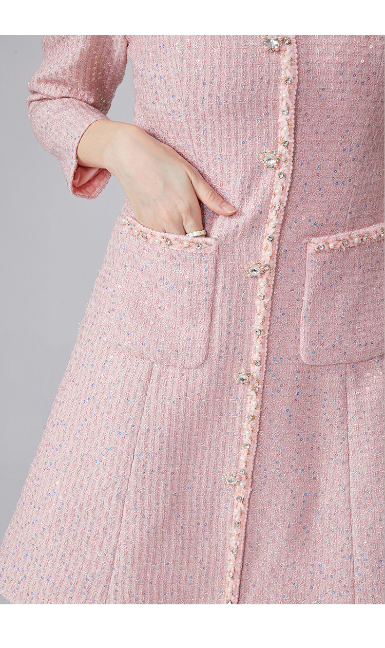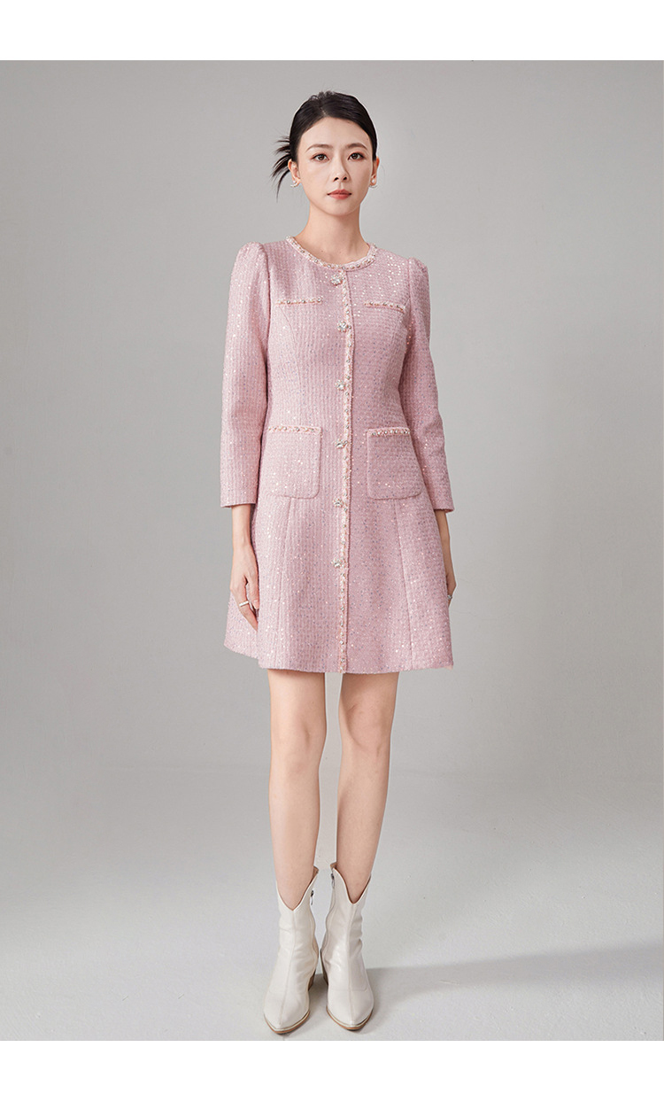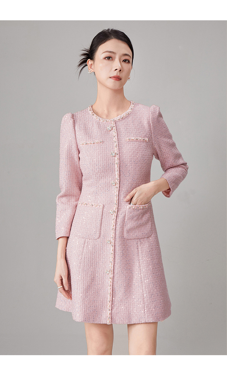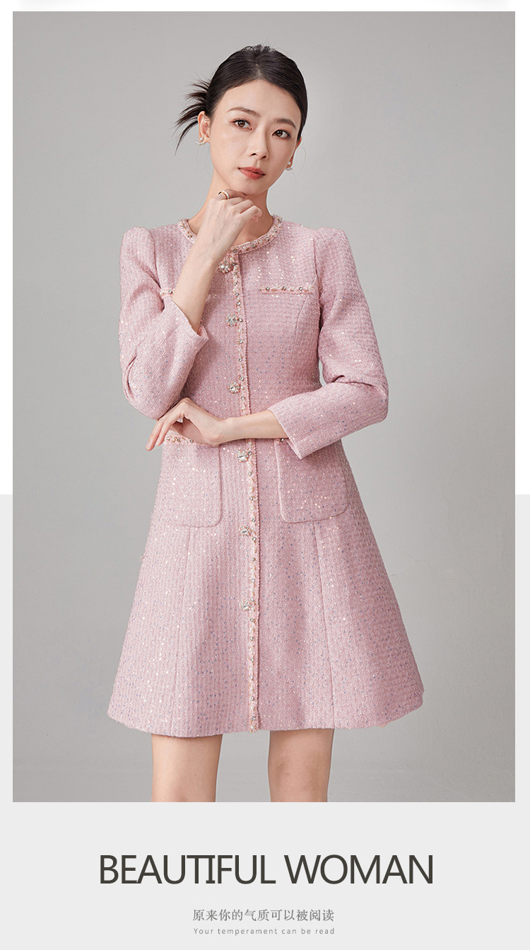 【hr】全新升级【铂金会员514/天猫689/差价175】(10929) 洛诗琳秋冬新款高端精品法式小香风圆领重工钉珠气质连衣裙