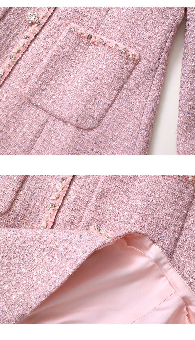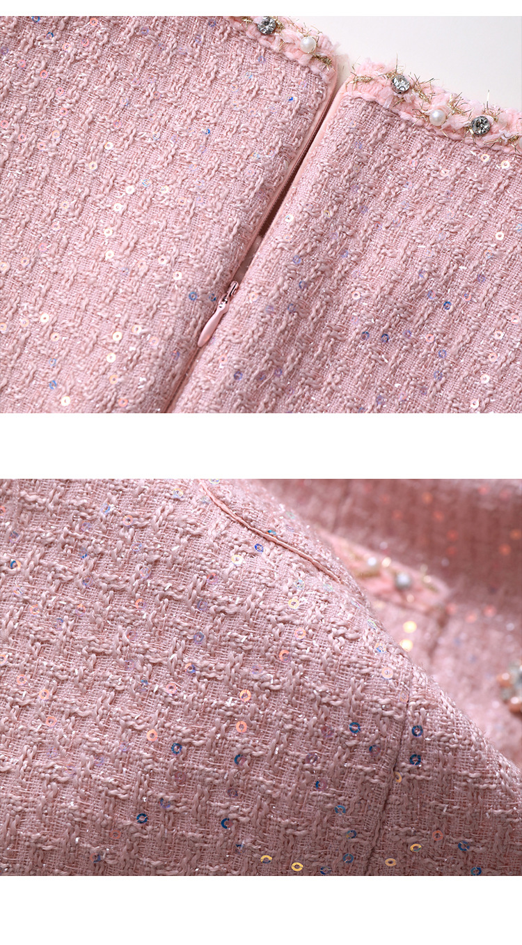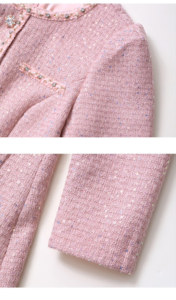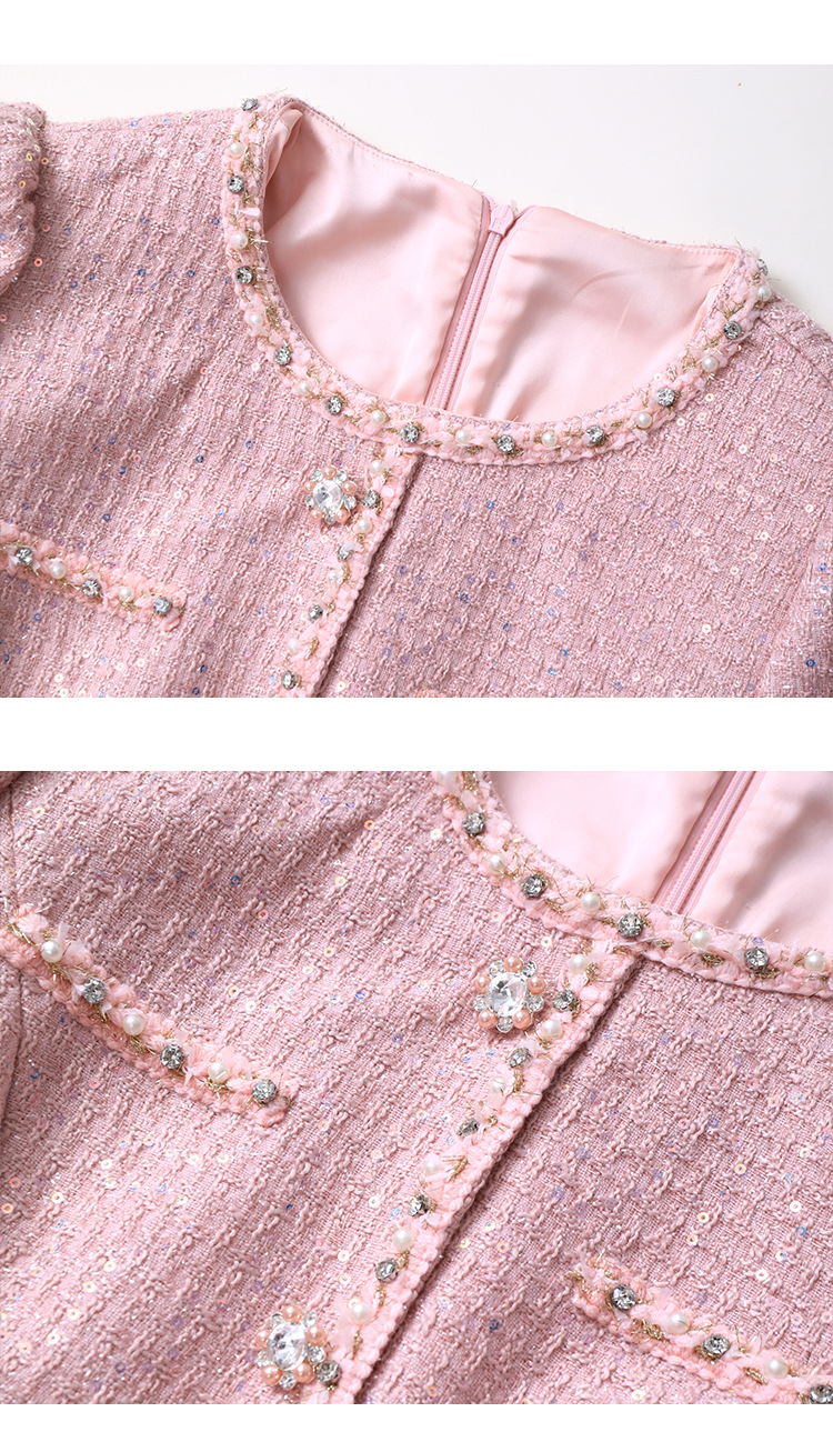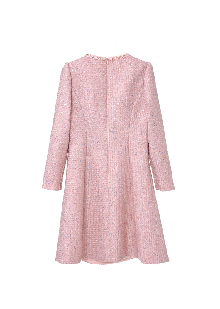 【hr】全新升级【铂金会员514/天猫689/差价175】(10929) 洛诗琳秋冬新款高端精品法式小香风圆领重工钉珠气质连衣裙