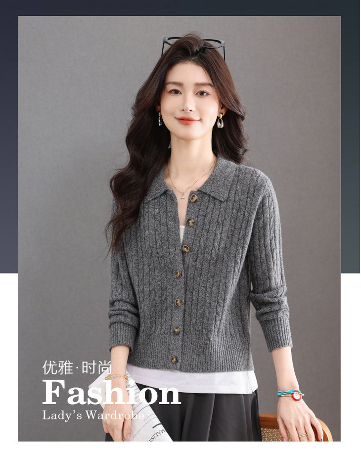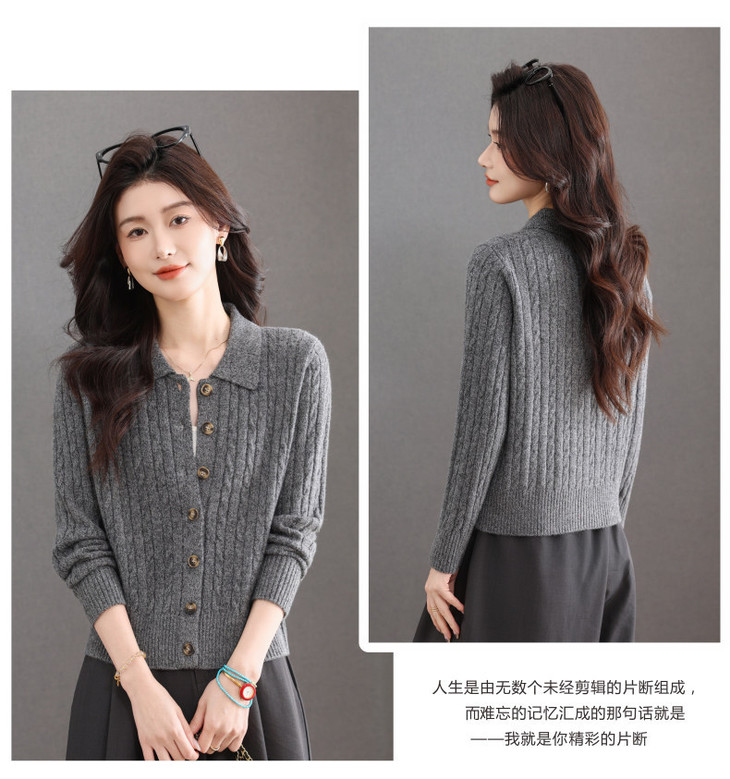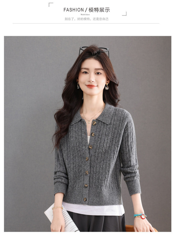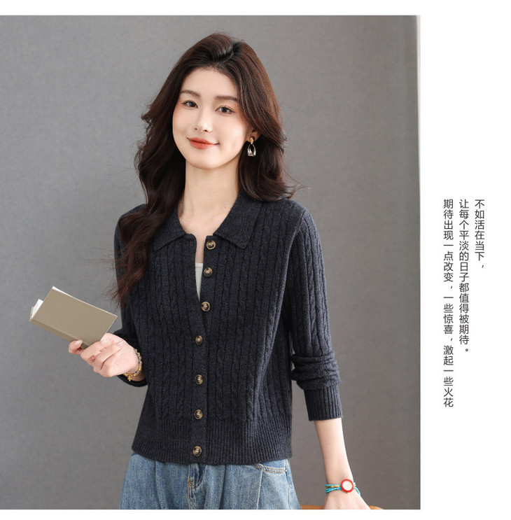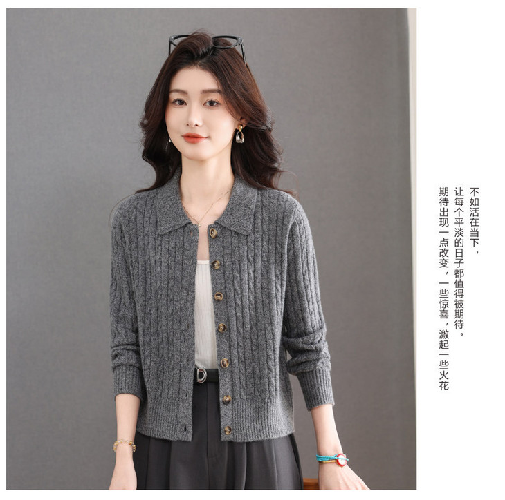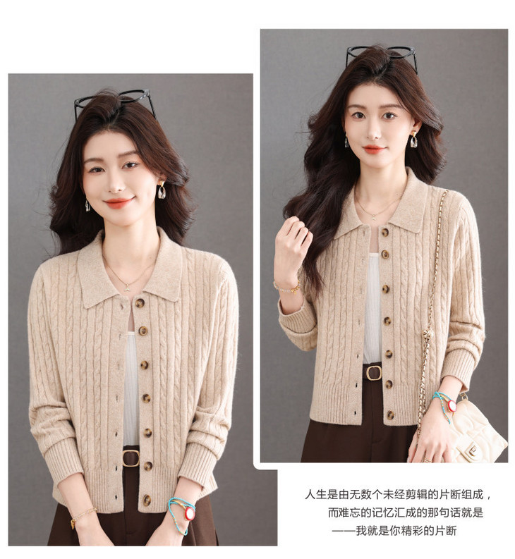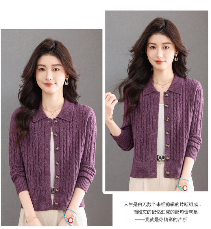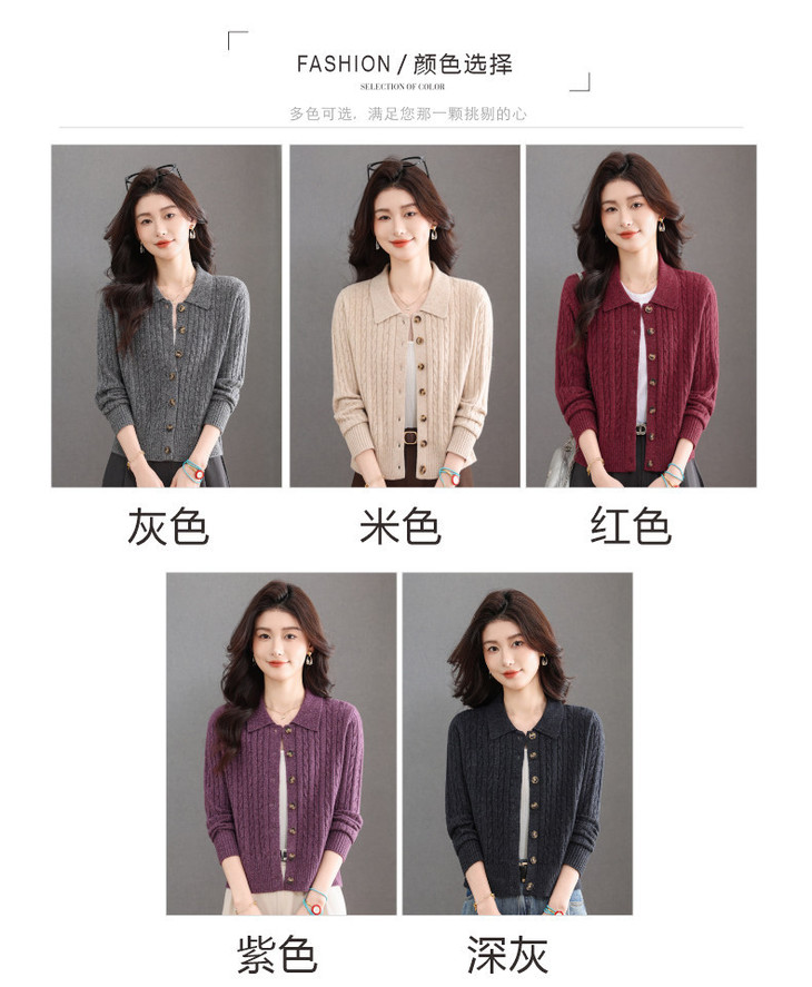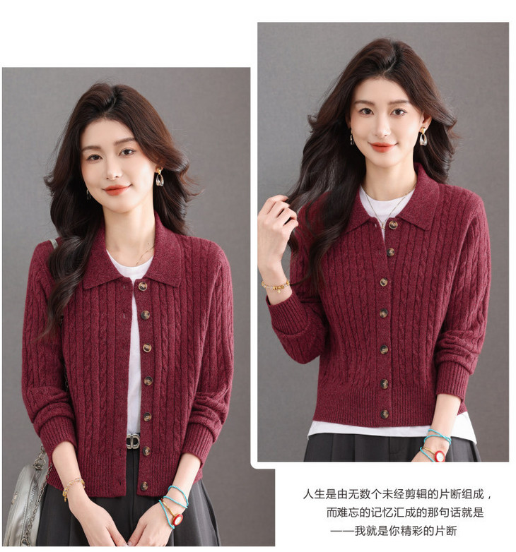 翻领针织小开衫纯色简约气质,中年妈妈早春显瘦外套CC-101-98637