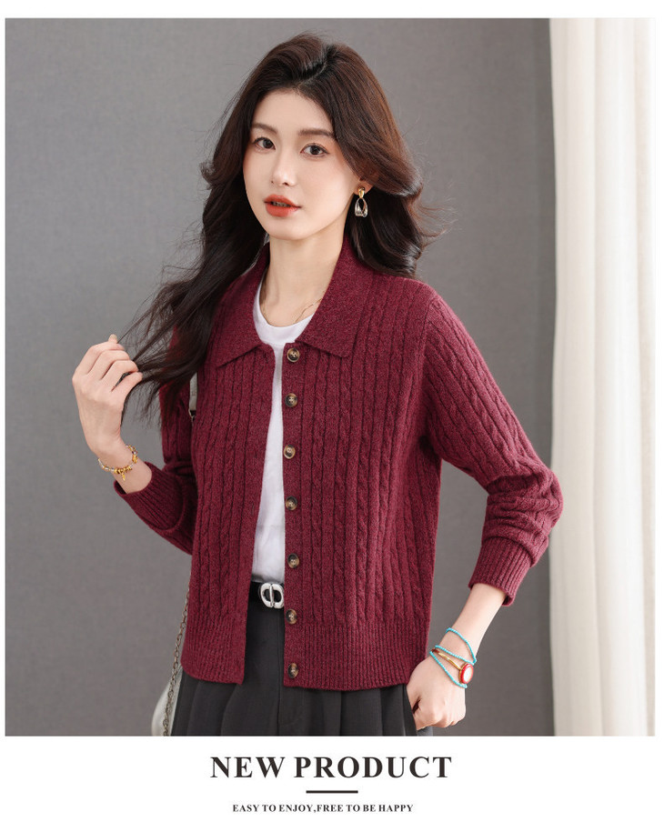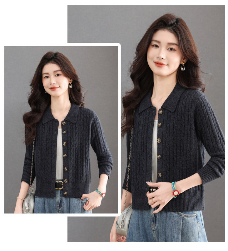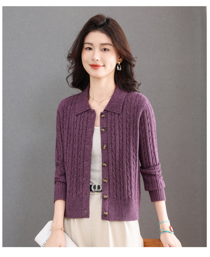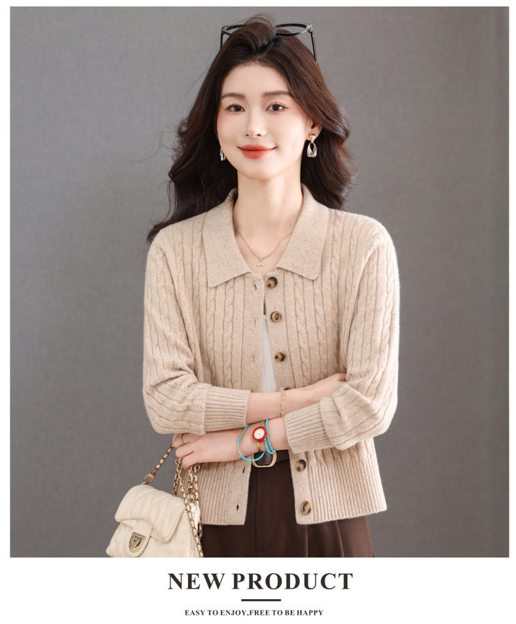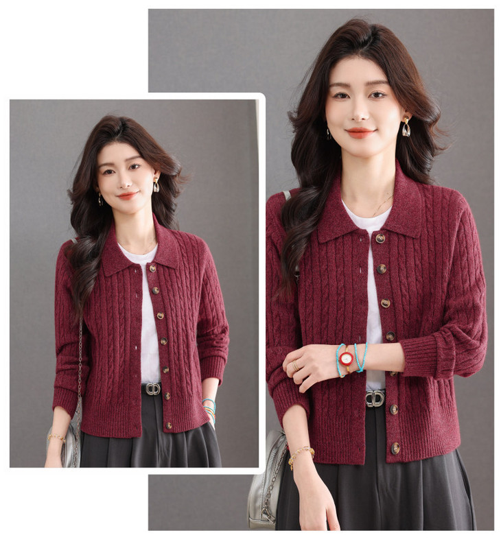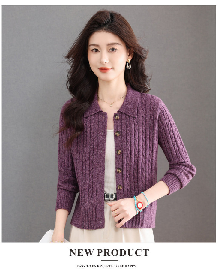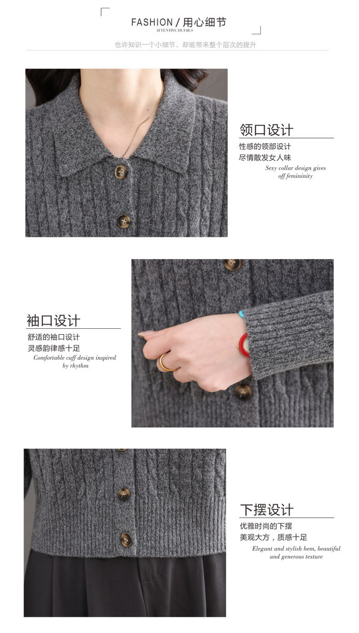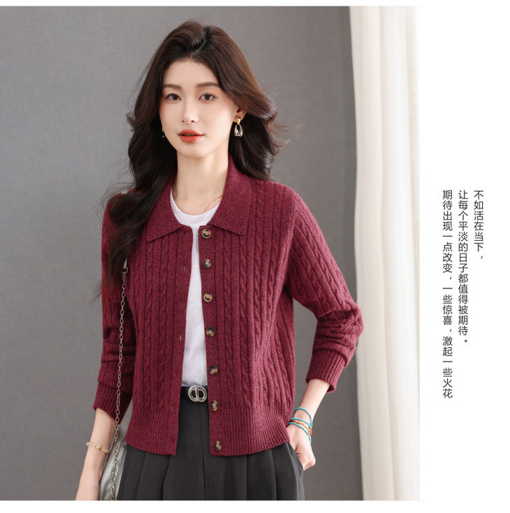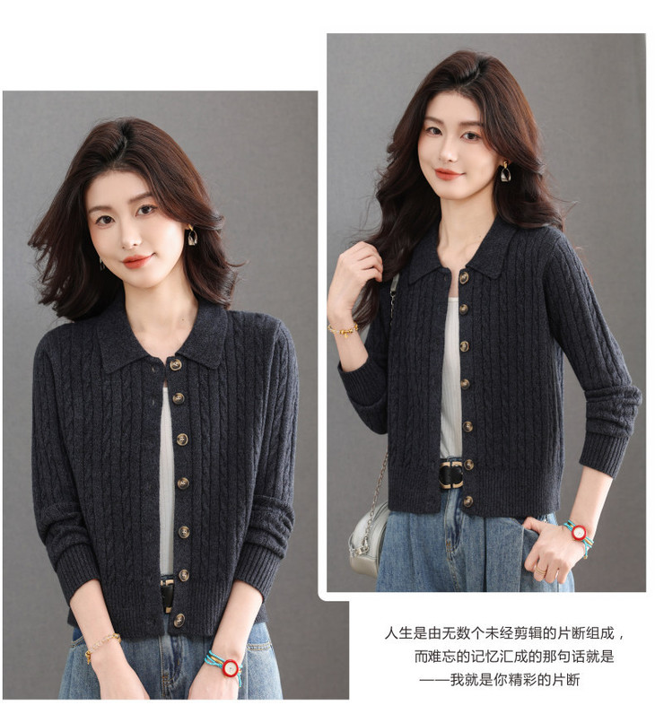 翻领针织小开衫纯色简约气质,中年妈妈早春显瘦外套CC-101-98637
