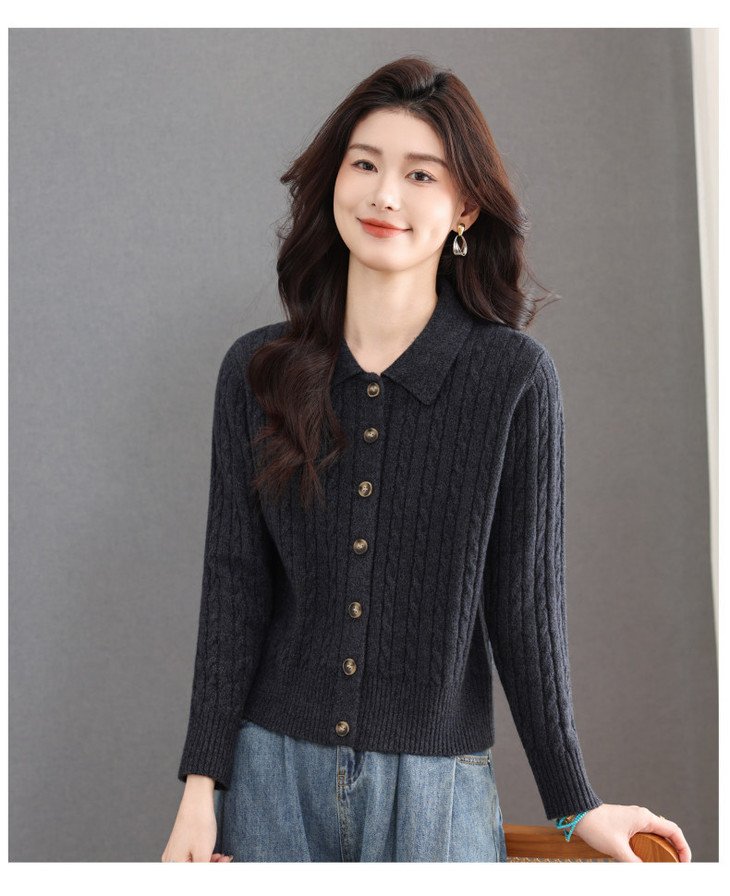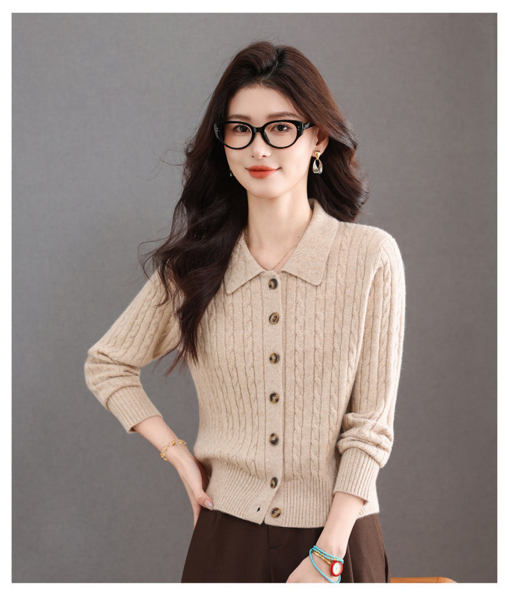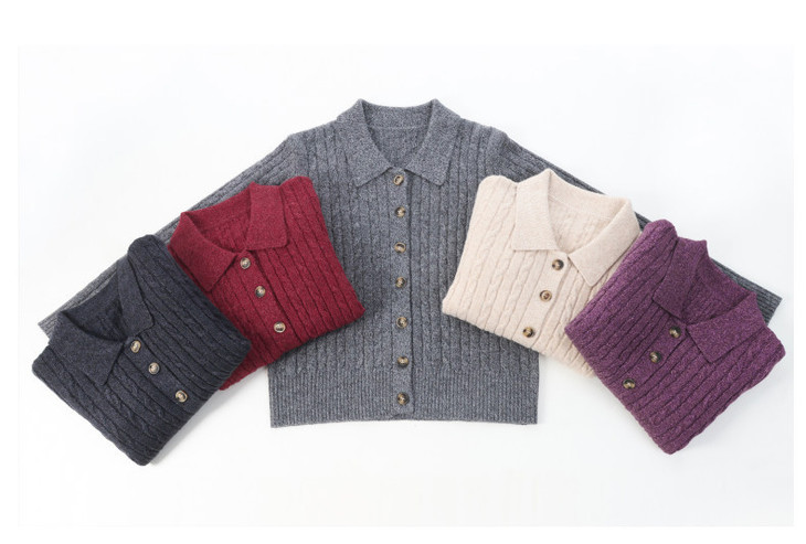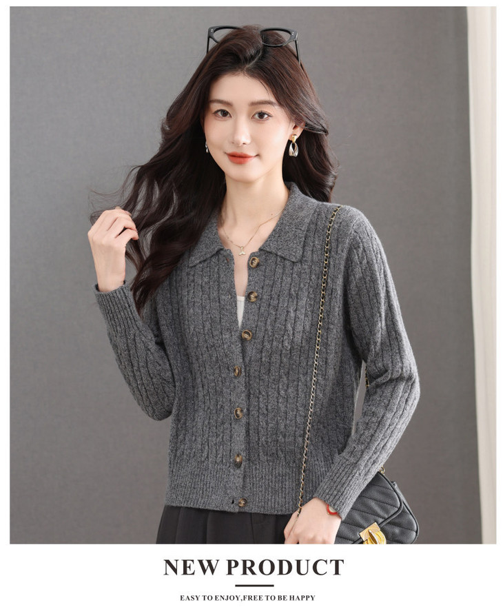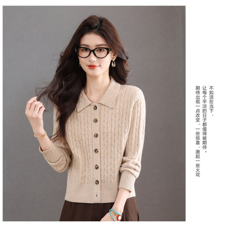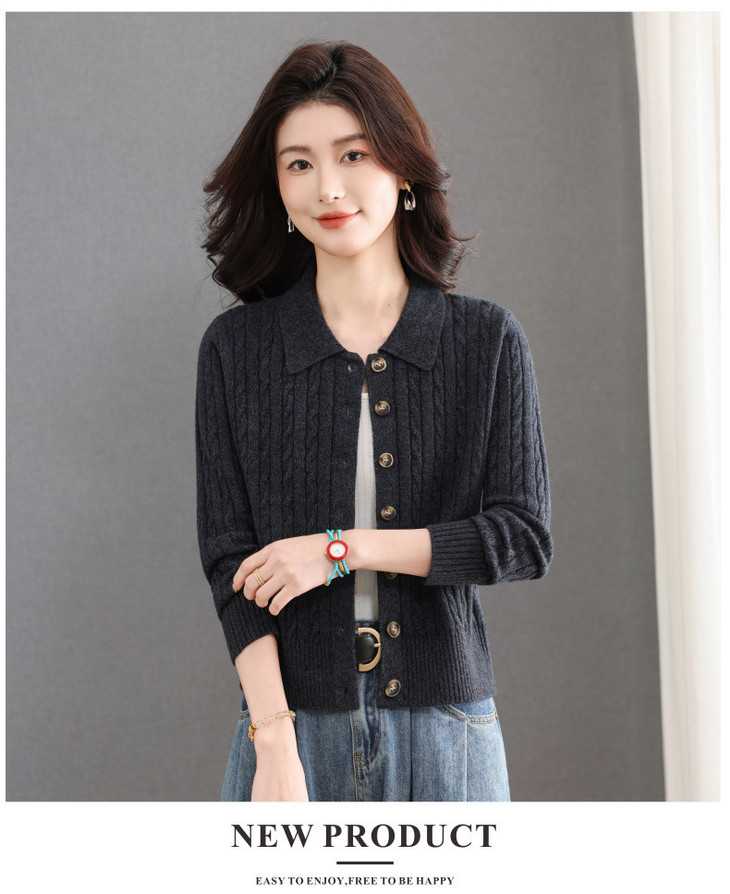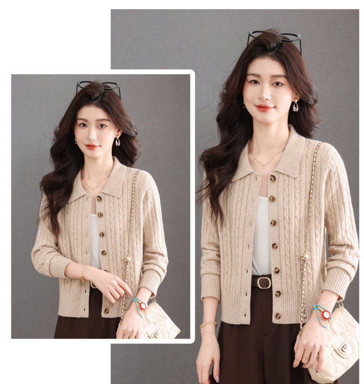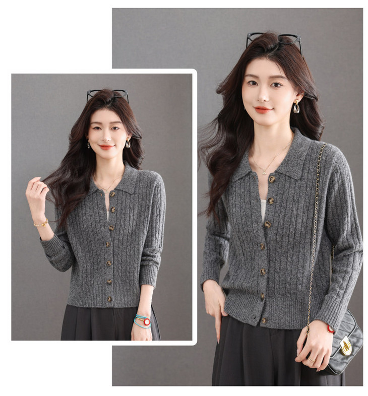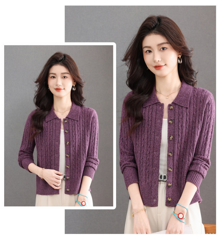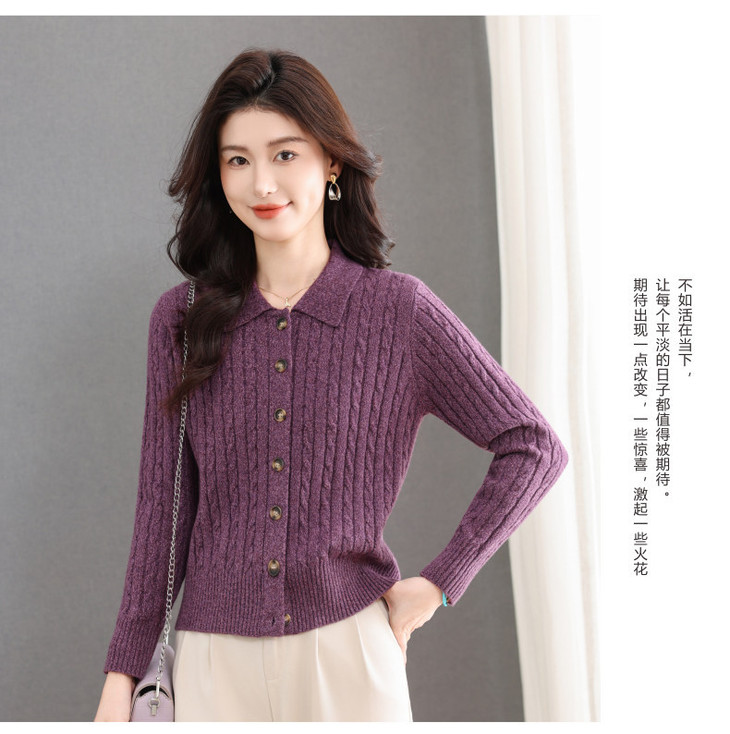 翻领针织小开衫纯色简约气质,中年妈妈早春显瘦外套CC-101-98637