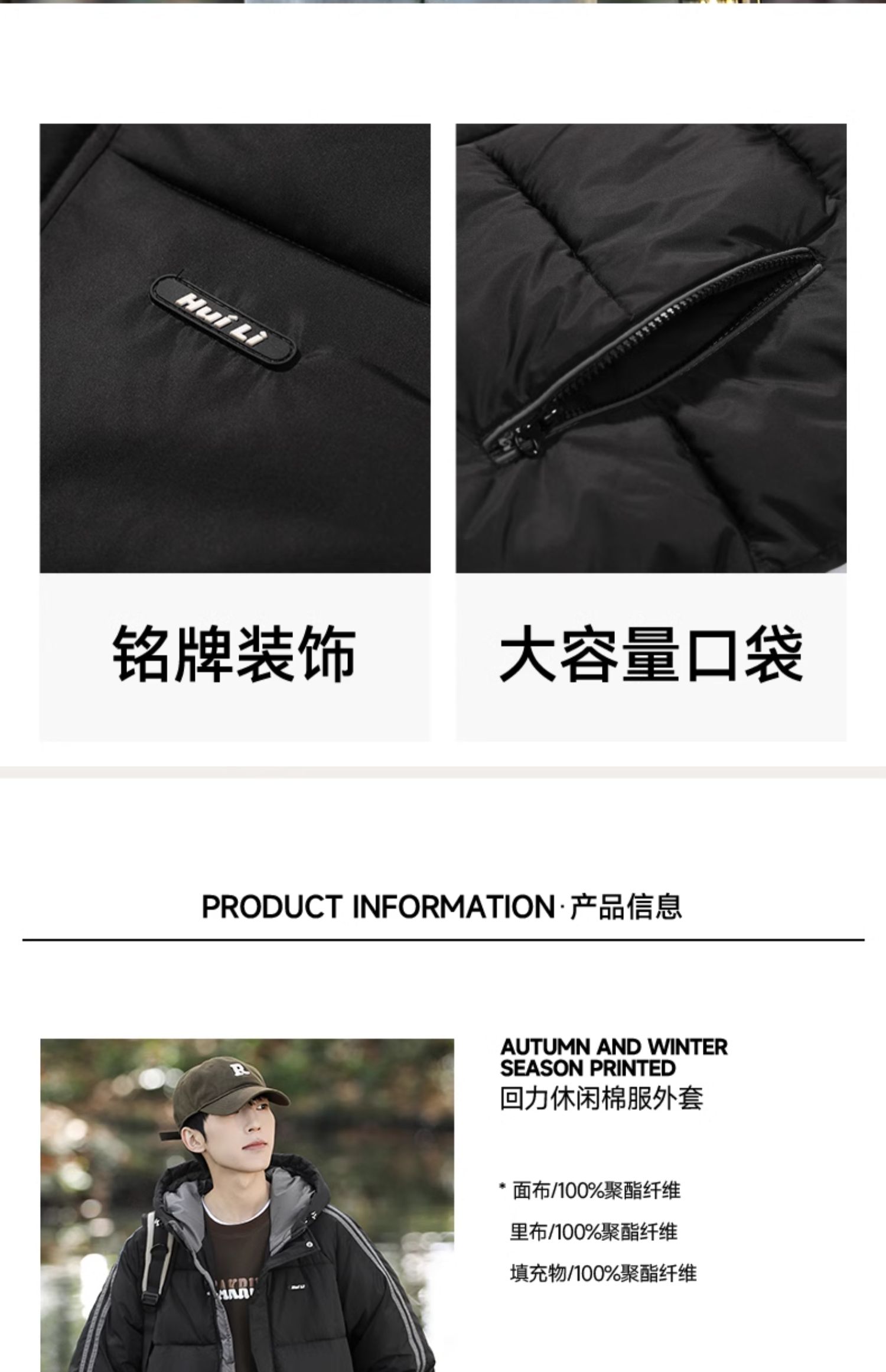 回力棉服外套男2025冬季晋江棉袄潮流连帽加厚保暖羽绒棉衣面包服
