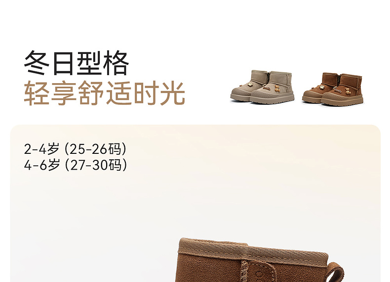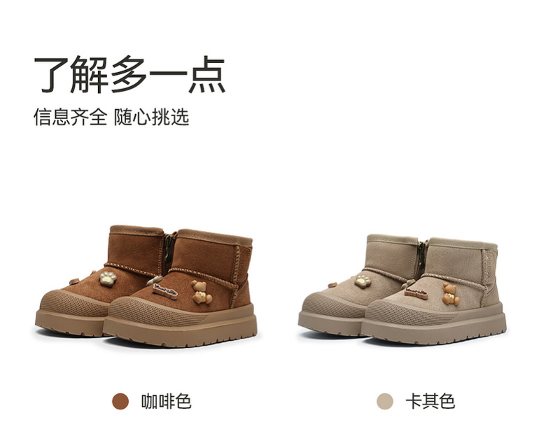 英氏儿童靴子女童冬季棉靴加绒保暖休闲靴男童百搭户外新款童鞋