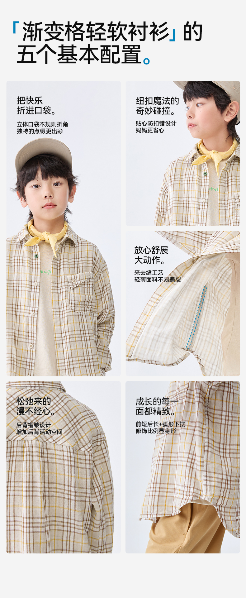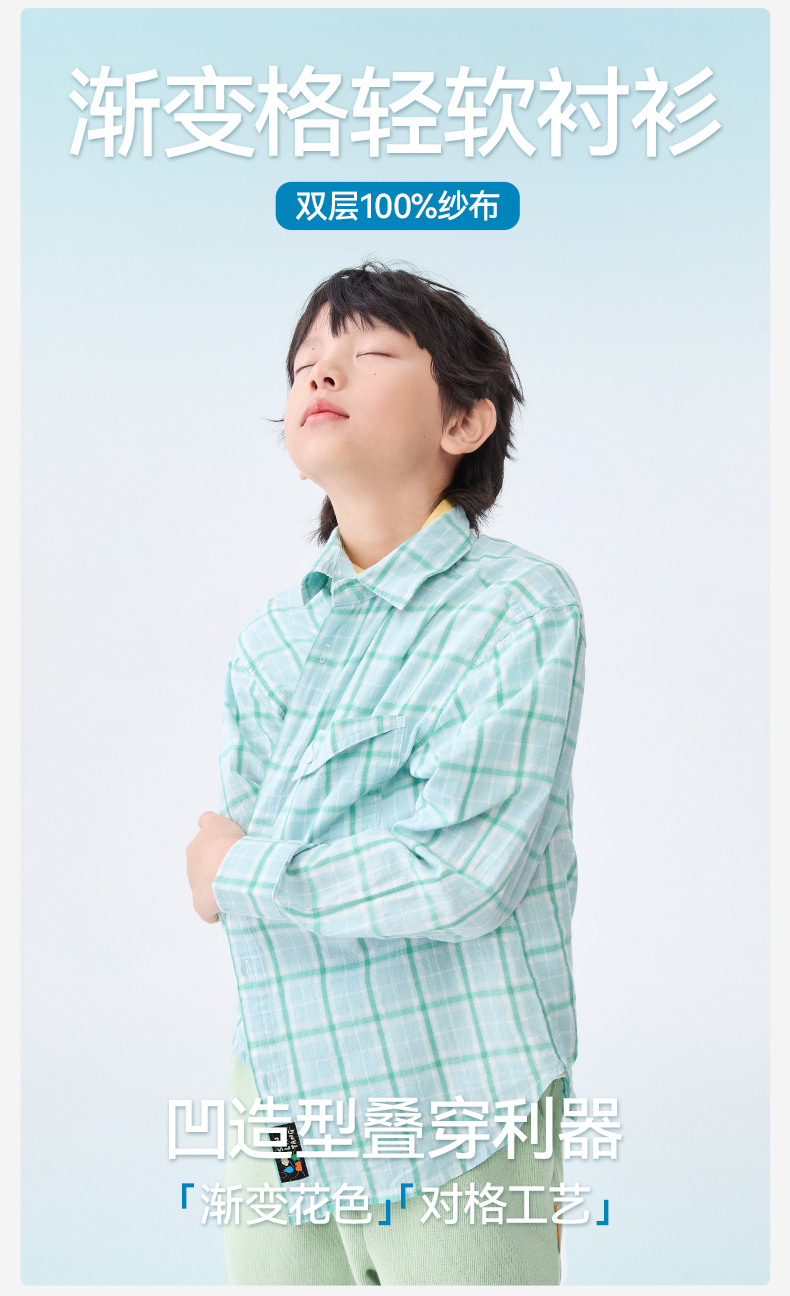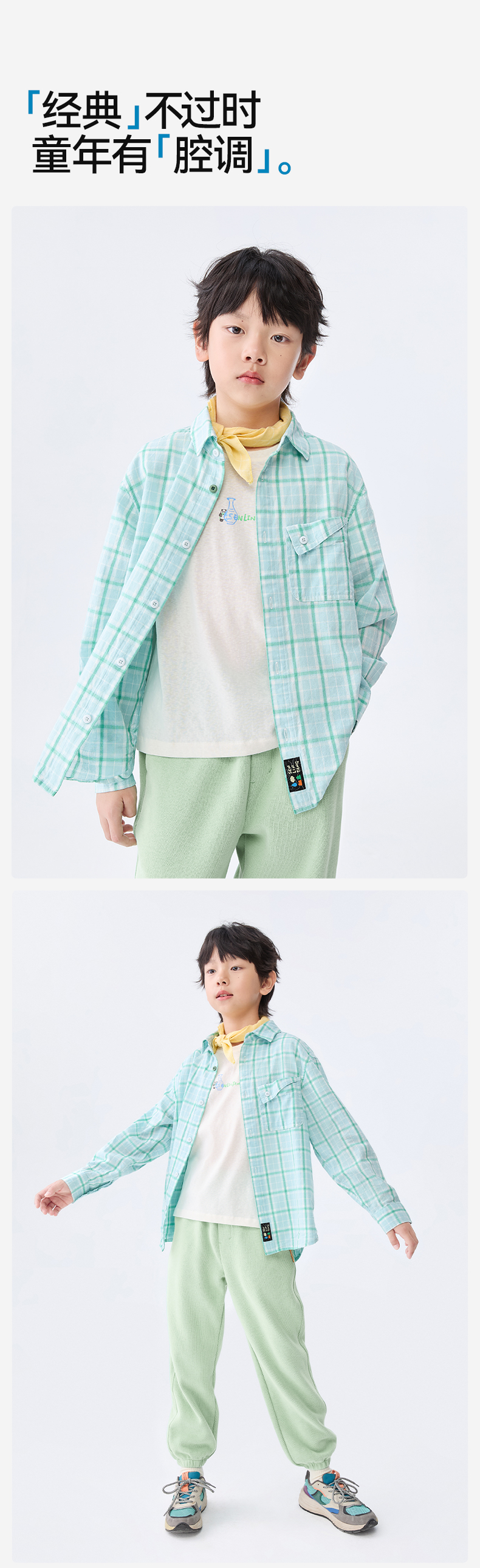 【新复古格纹衬衫】森林棠25秋款儿童经典双层棉纱格子衬衫20522505