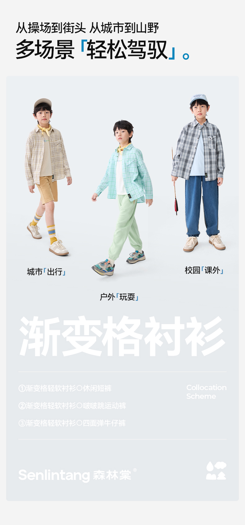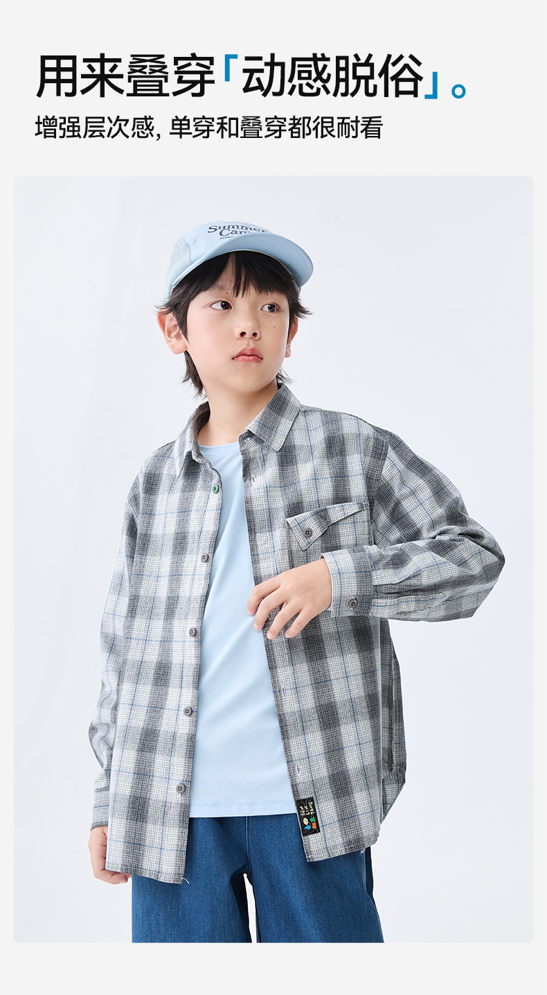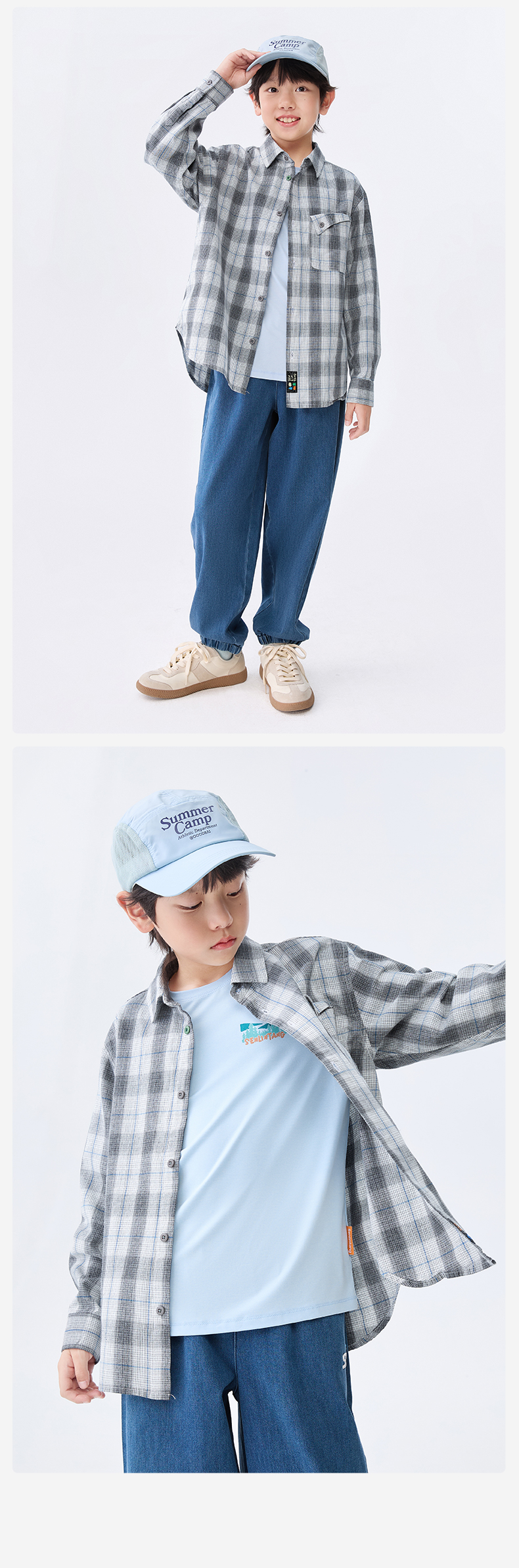 【新复古格纹衬衫】森林棠25秋款儿童经典双层棉纱格子衬衫20522505