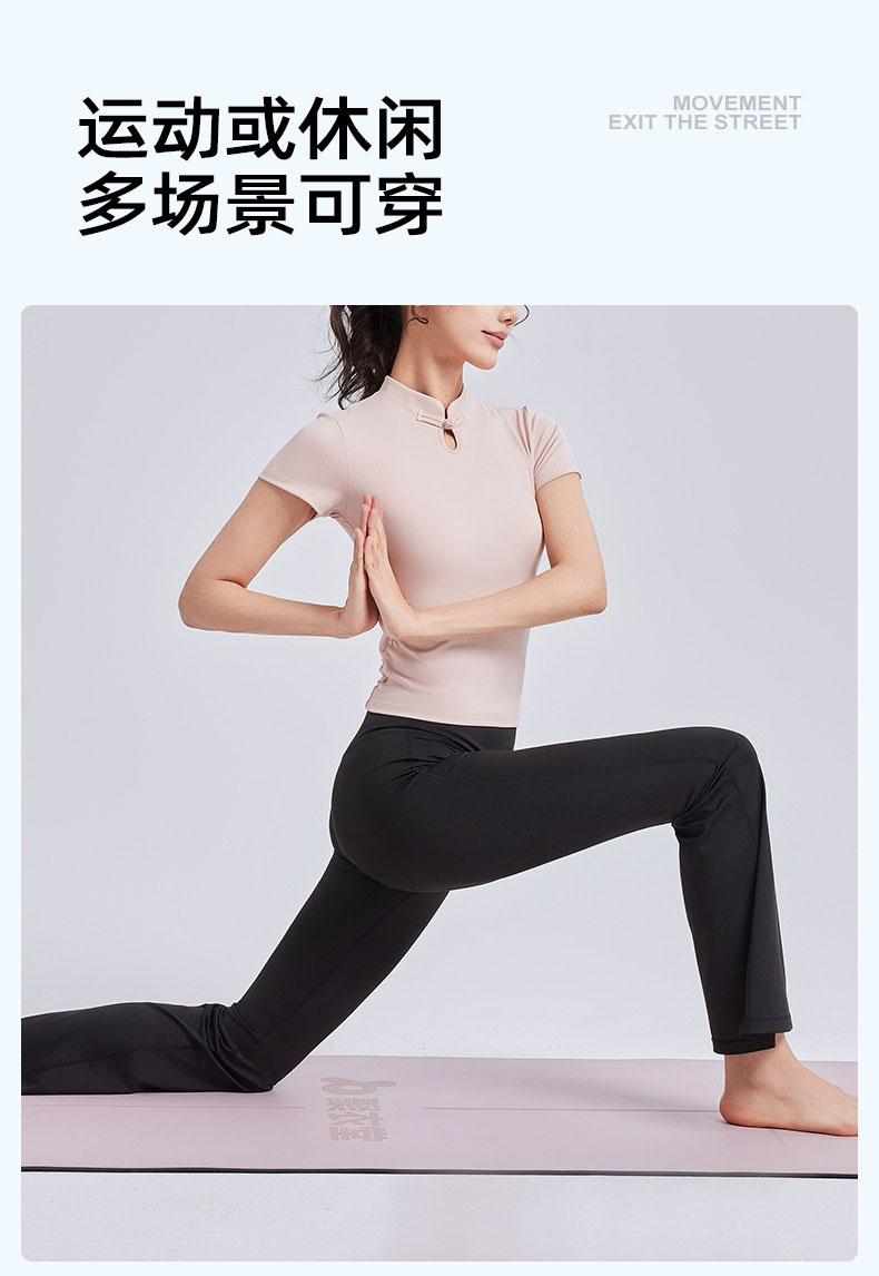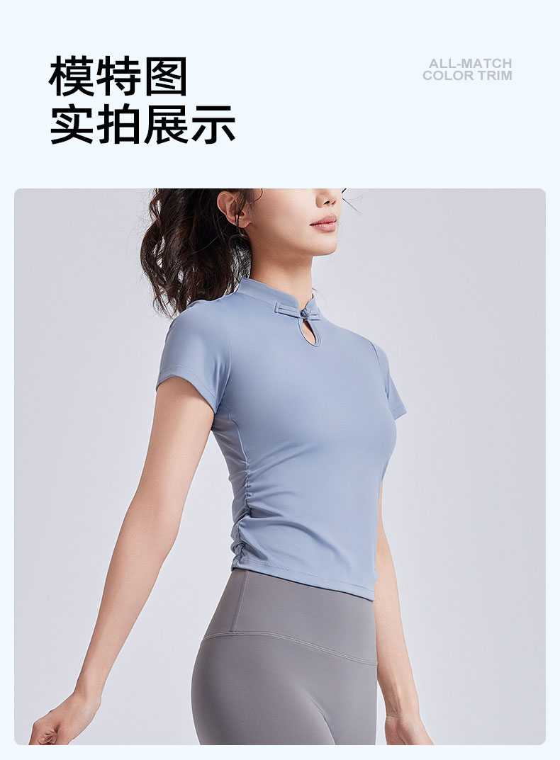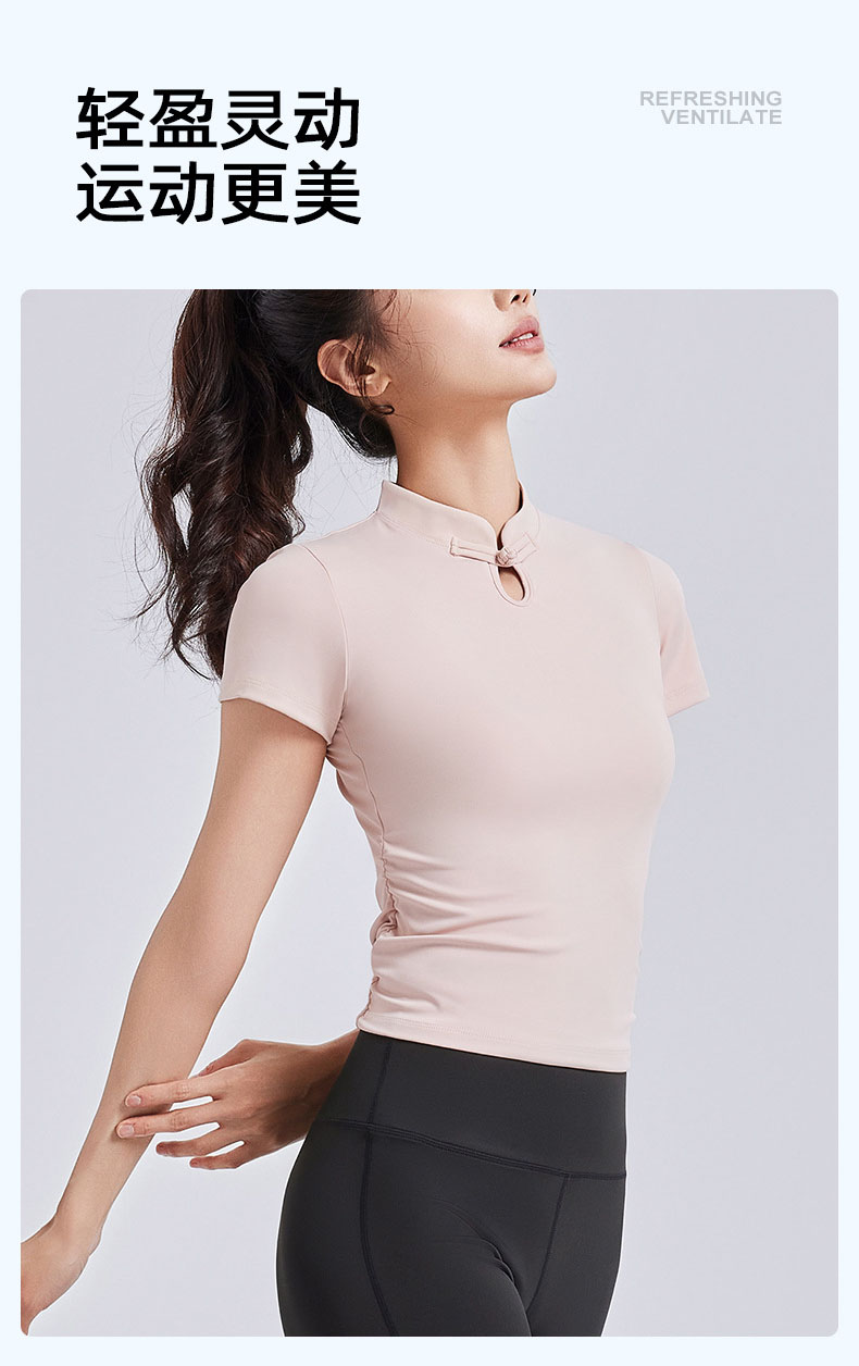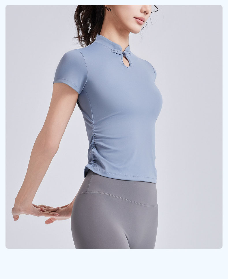 跃牌【瑜堂系列】新款国风瑜伽短袖女盘扣中式运动上衣夏季国潮瑜伽服JYMD102