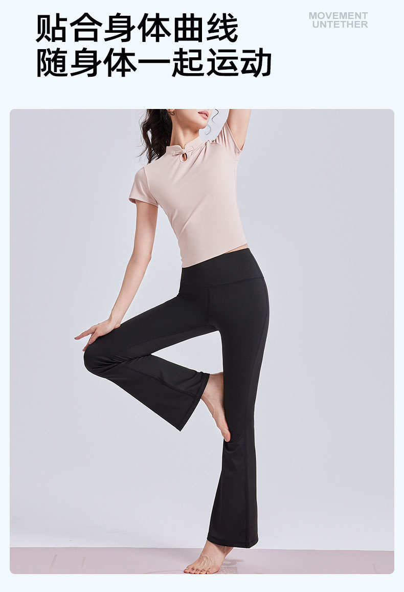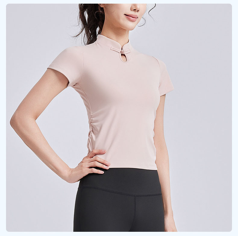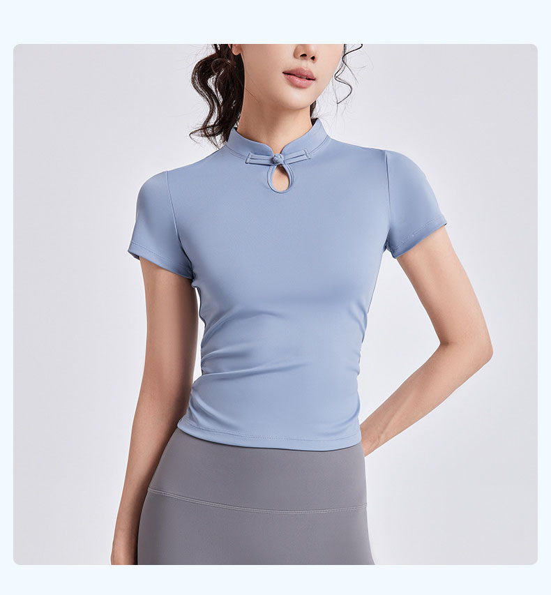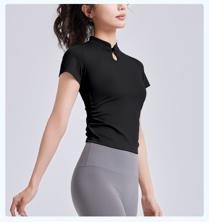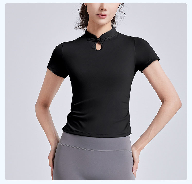 跃牌【瑜堂系列】新款国风瑜伽短袖女盘扣中式运动上衣夏季国潮瑜伽服JYMD102