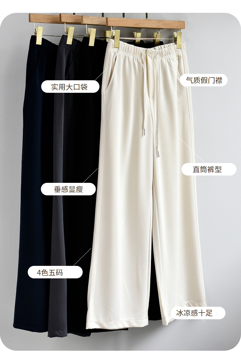 丁摩 【云感垂垂裤】春夏新款女装莫代尔冰凉垂感窄版直筒阔腿长裤子6ZF-M008