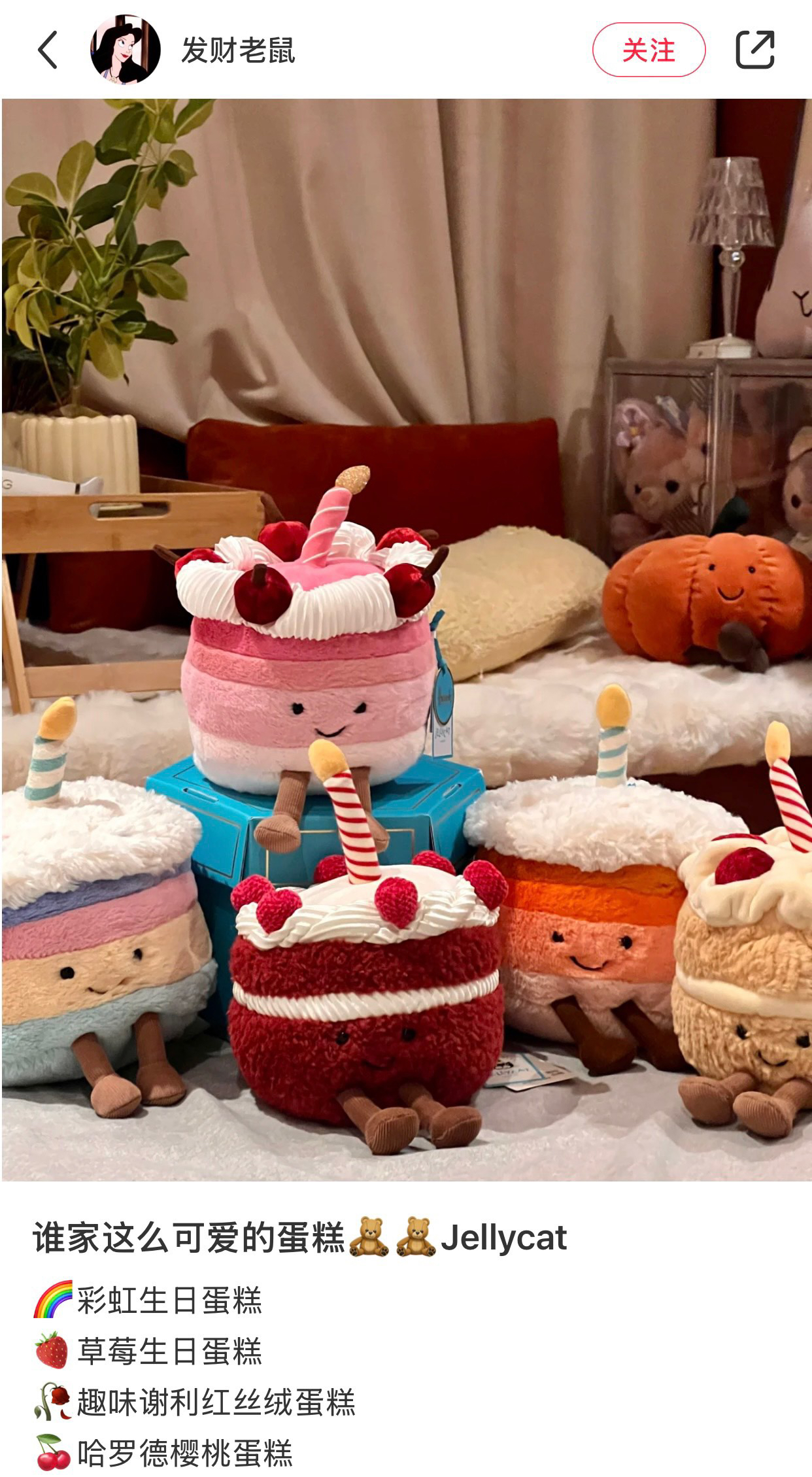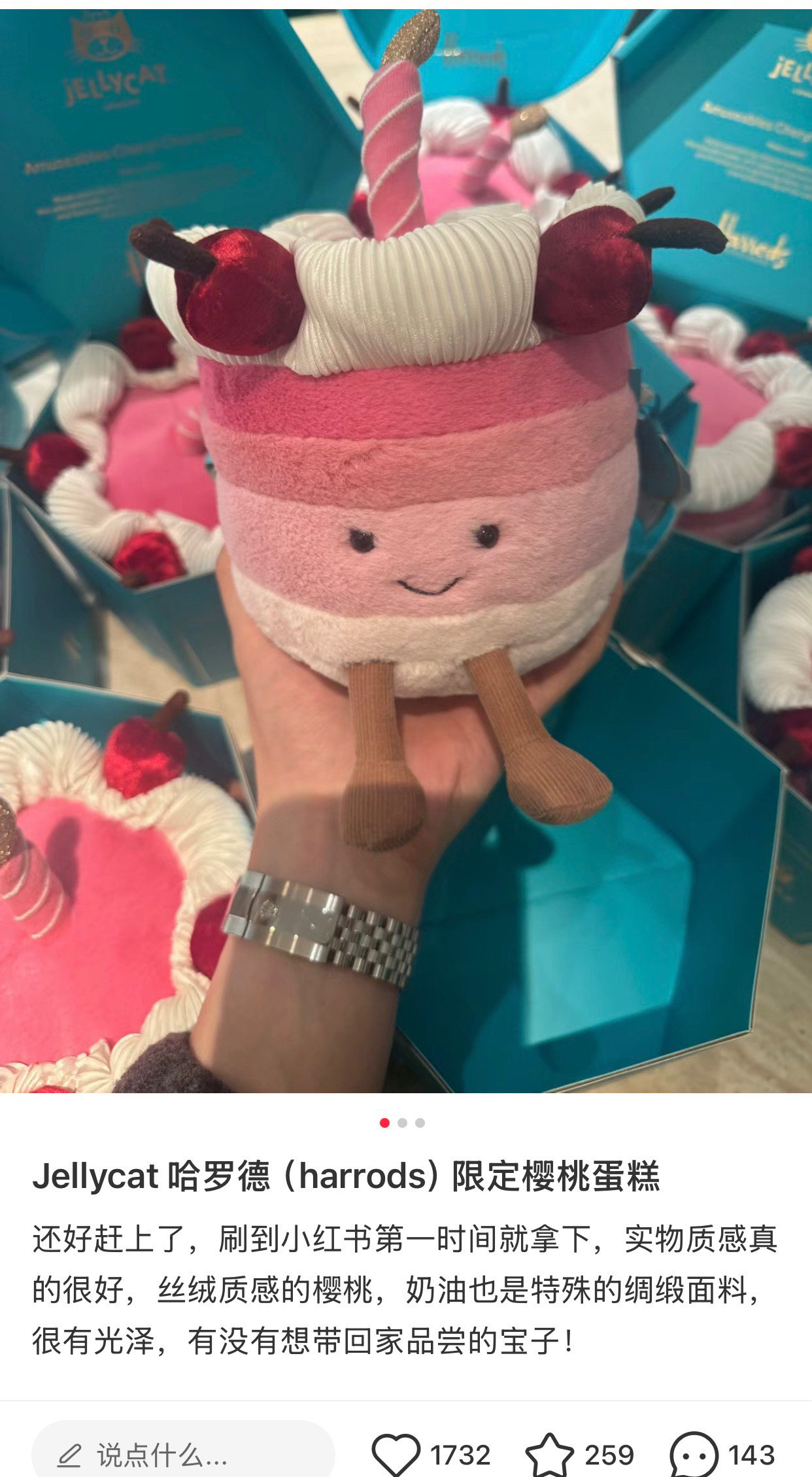 个人觉得它比jellycat家的草莓蛋糕要可爱 怪不得也要更贵!官价509💰!