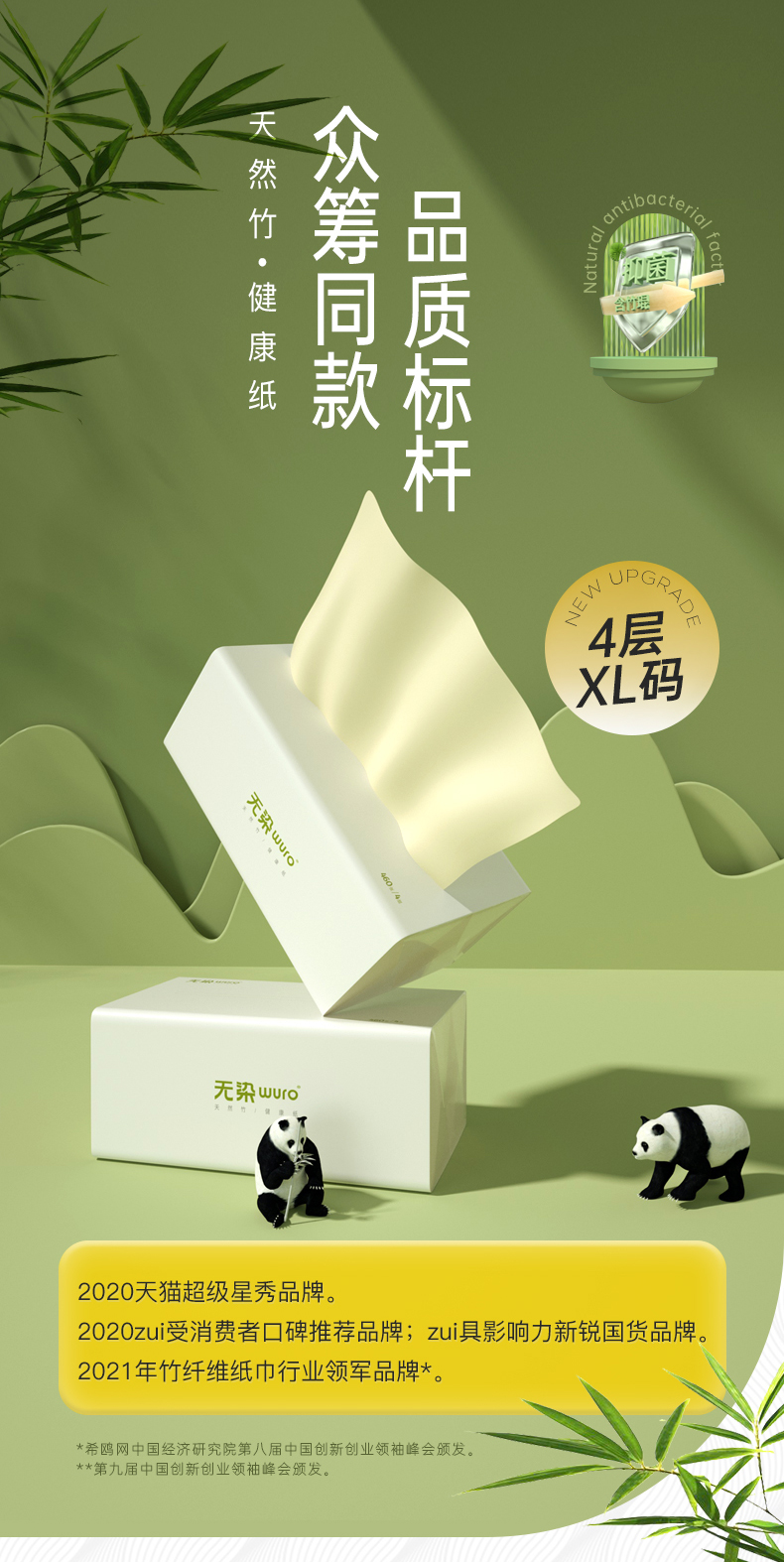 无染WURO竹纤维4层本色立体压花90抽24包抽纸