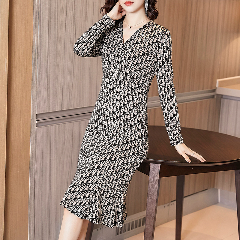 NYL-4690023新款韩版气质V领收腰显瘦内搭鱼尾裙