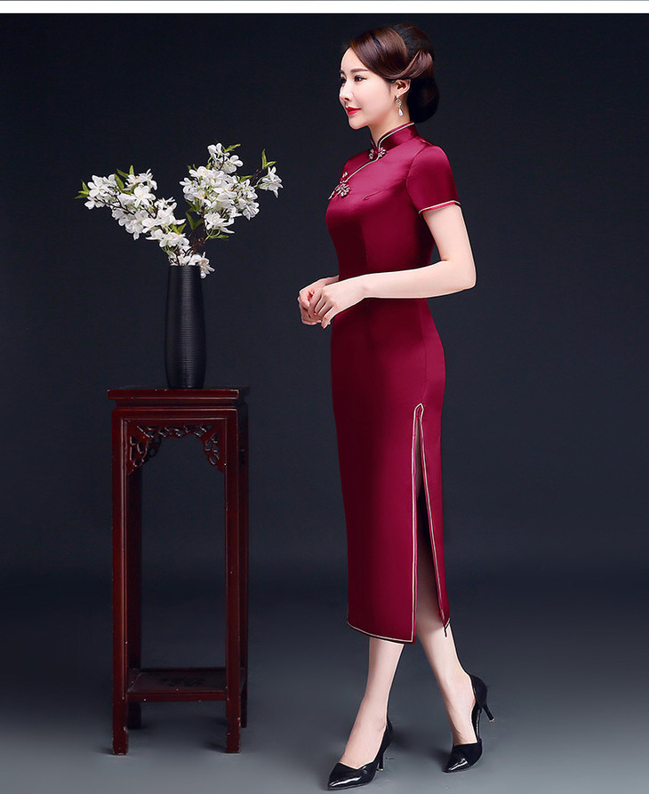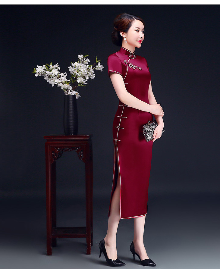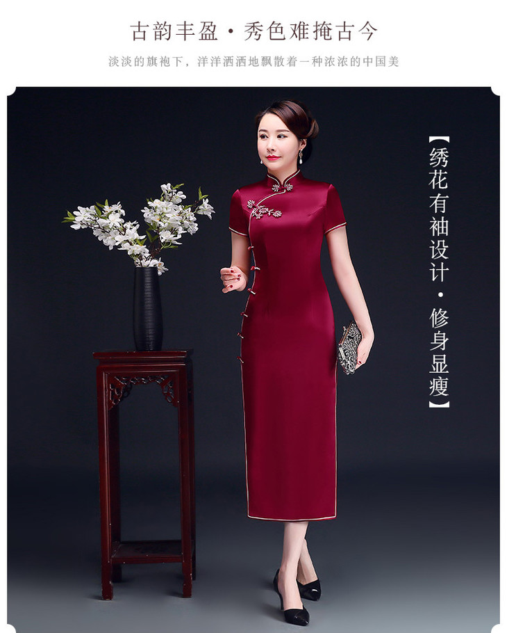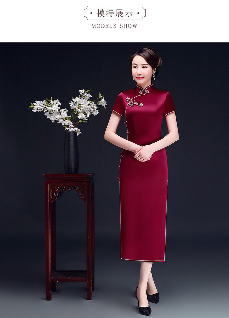 LHS-L06181端庄大气改良,酒红纯色婚宴婚礼妈妈装旗袍