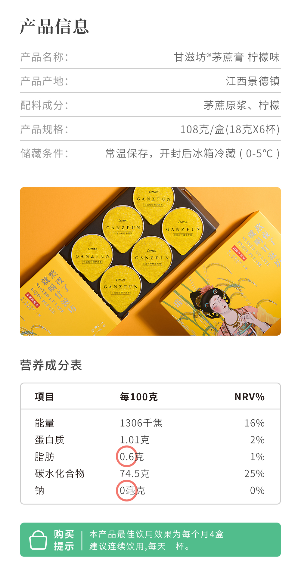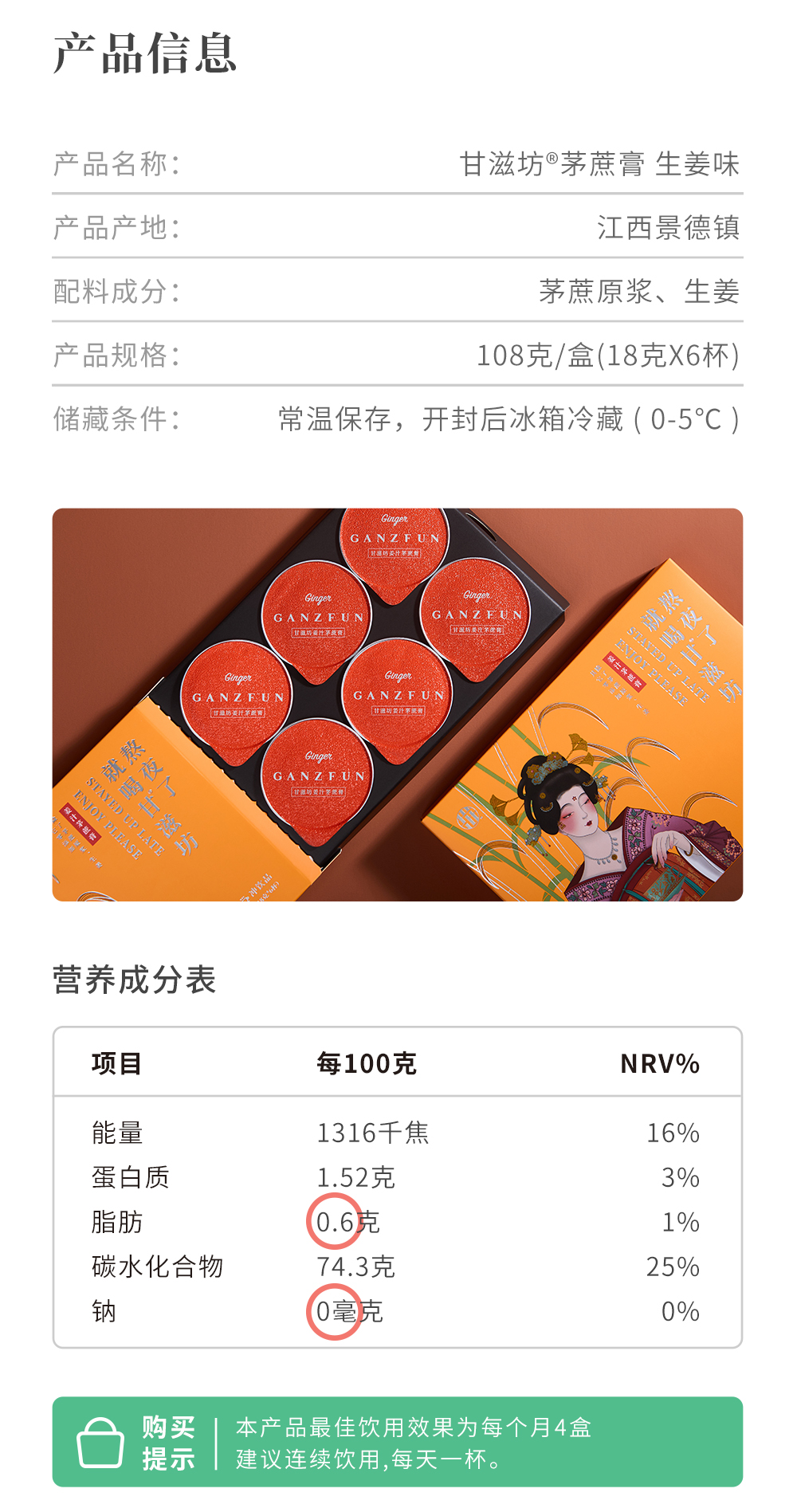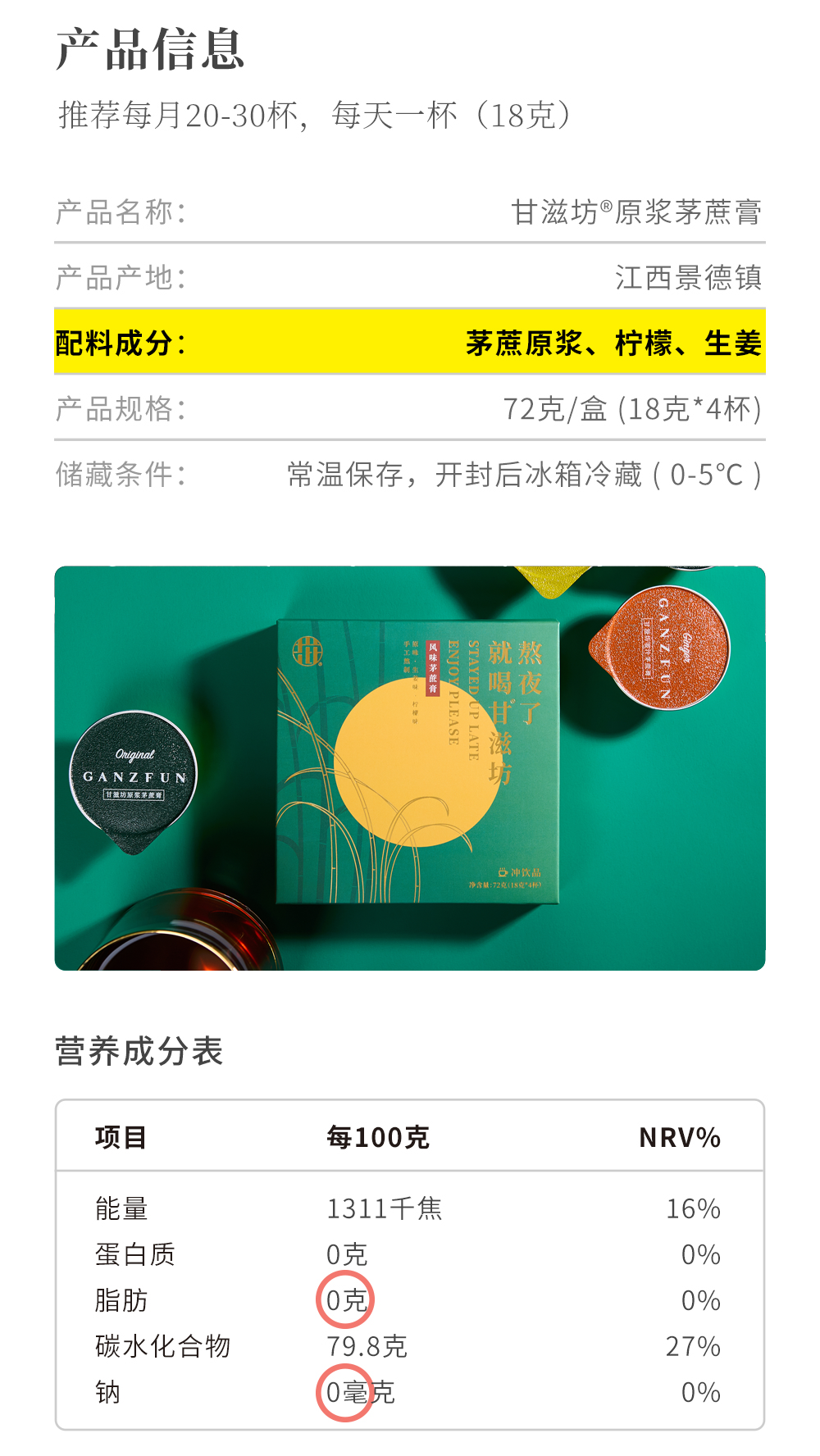 【低脂冲饮 纯净健康!】甘滋坊茅蔗膏 茅蔗原浆红糖暖而有营养 新鲜美味草本暖姜冲泡 生姜/柠檬味 72g/108g 盒
