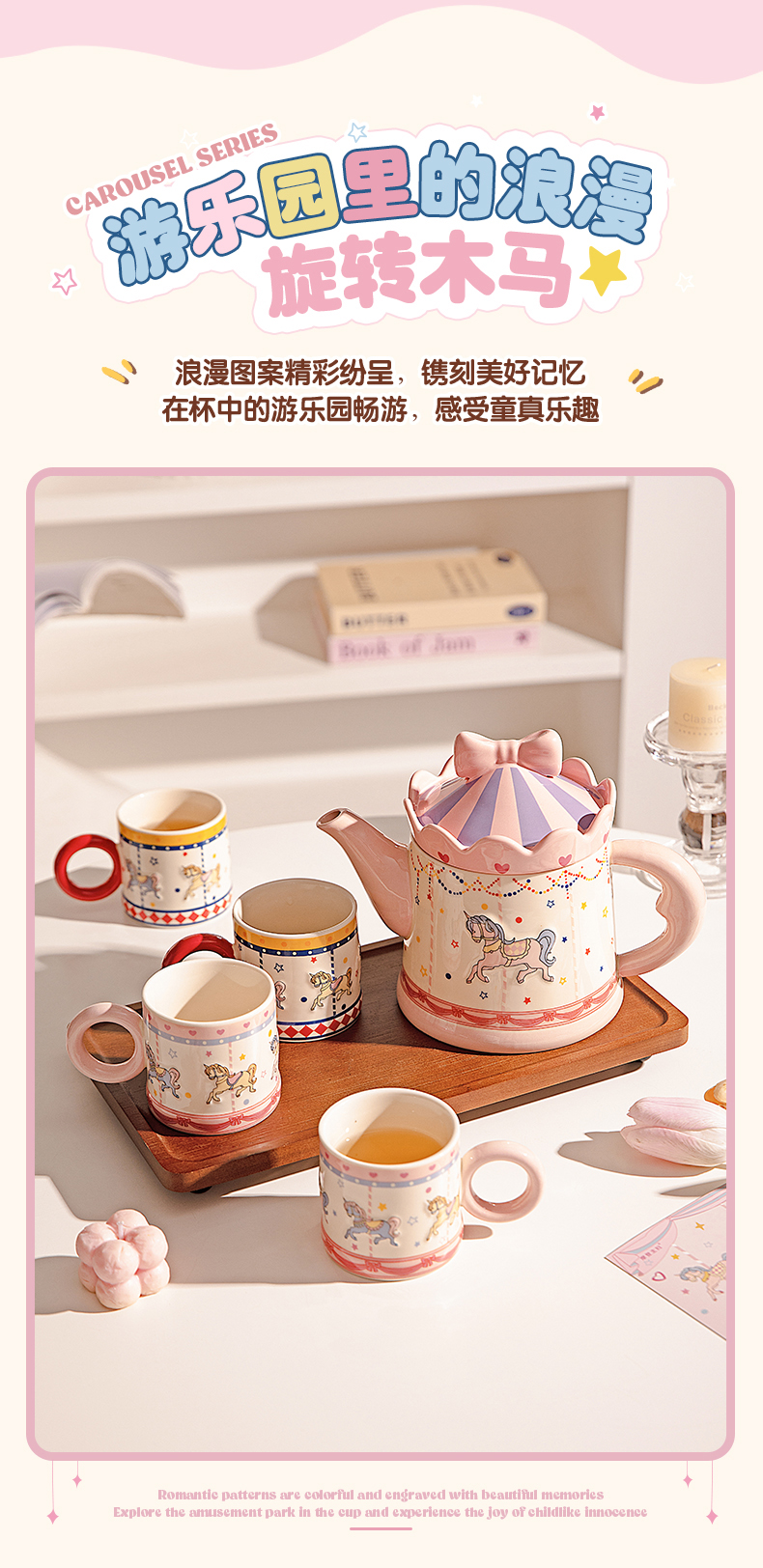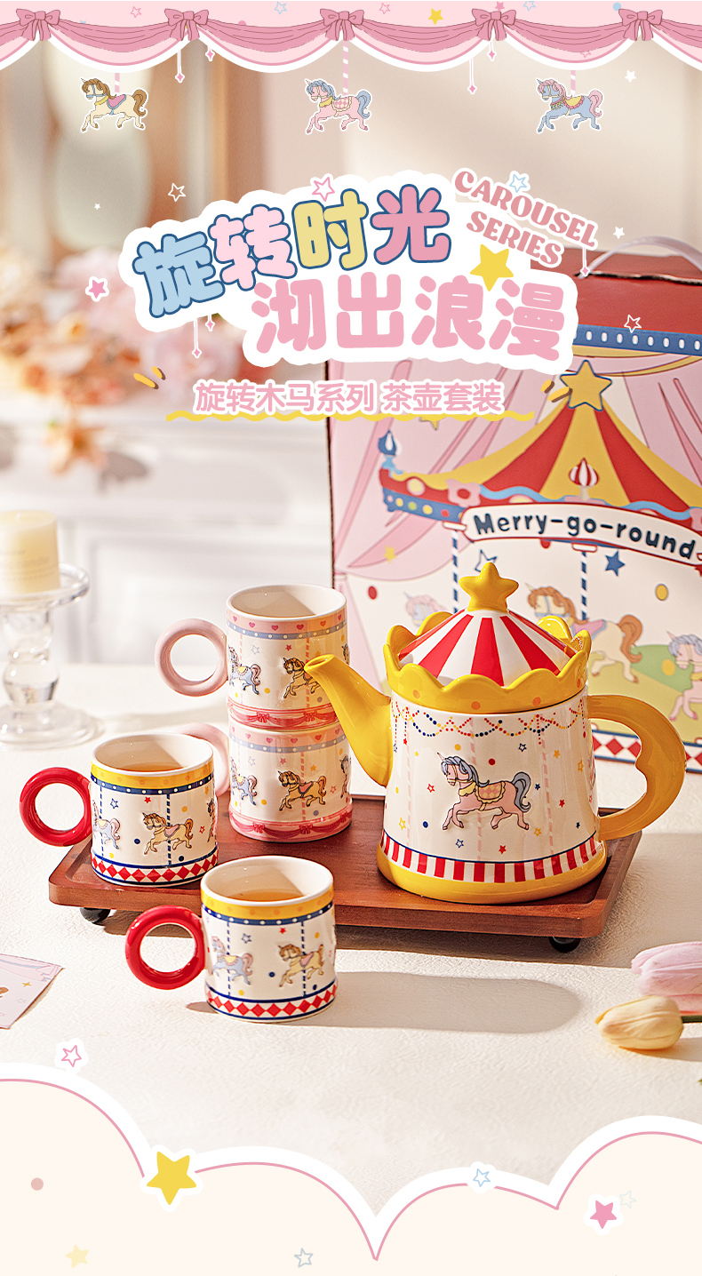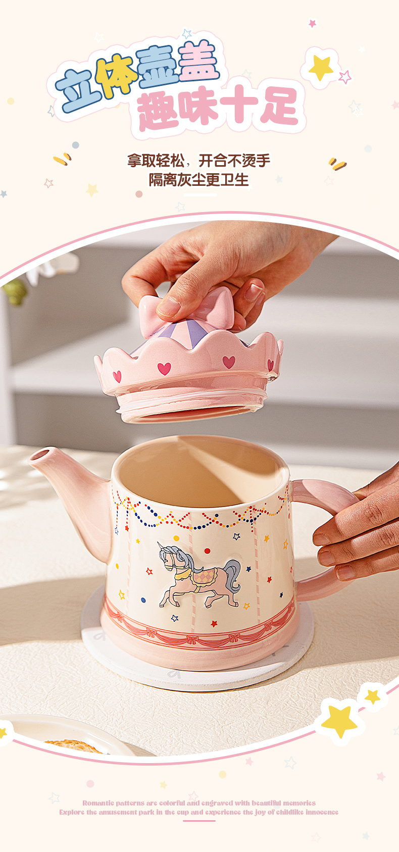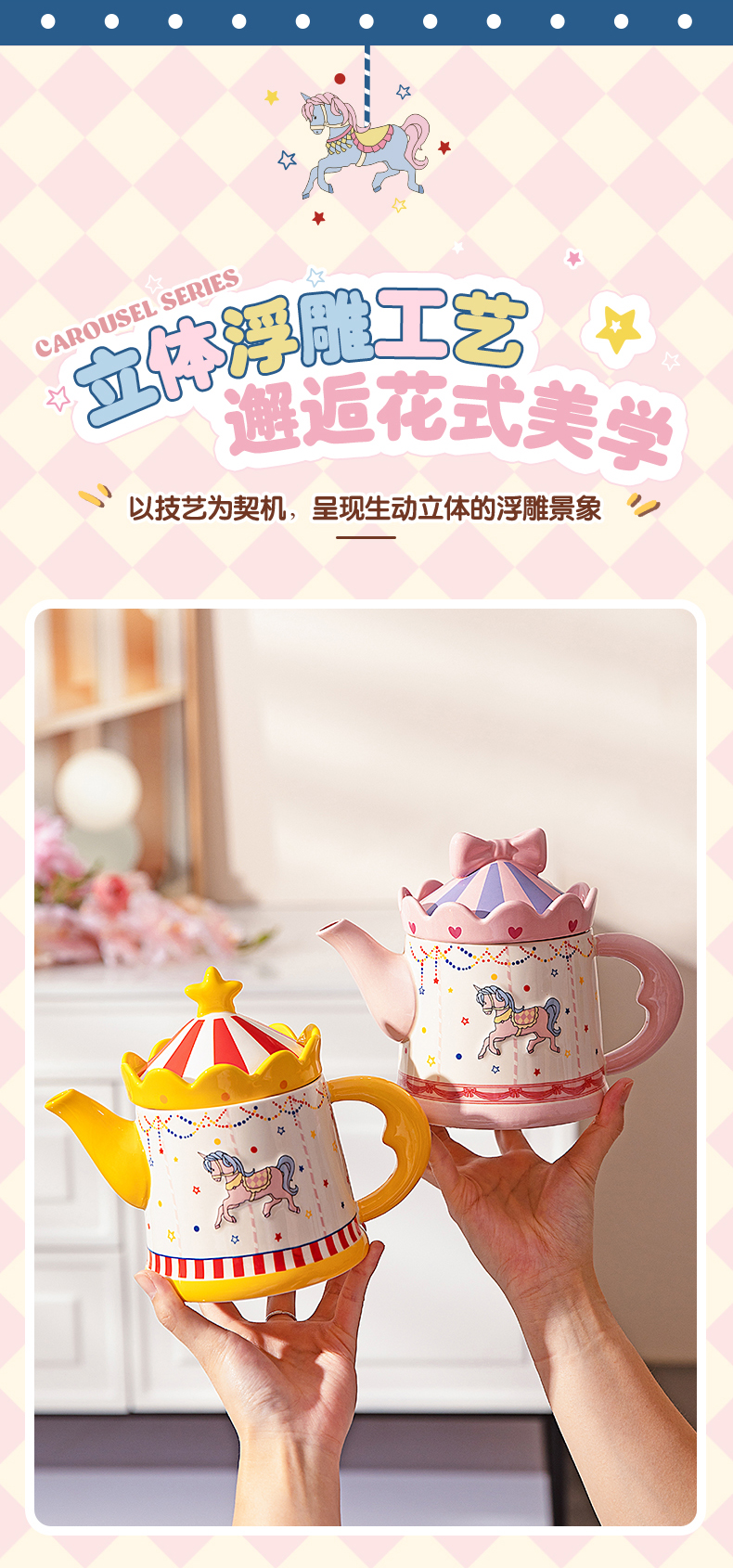 摩登主妇旋转木马陶瓷泡茶壶乔迁新婚礼物送闺蜜生日浮雕茶具套装