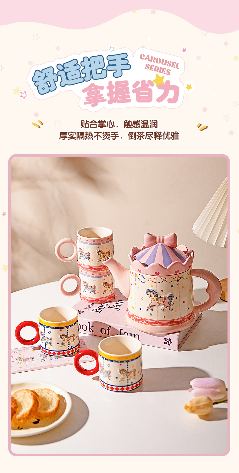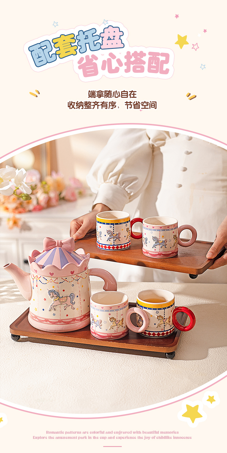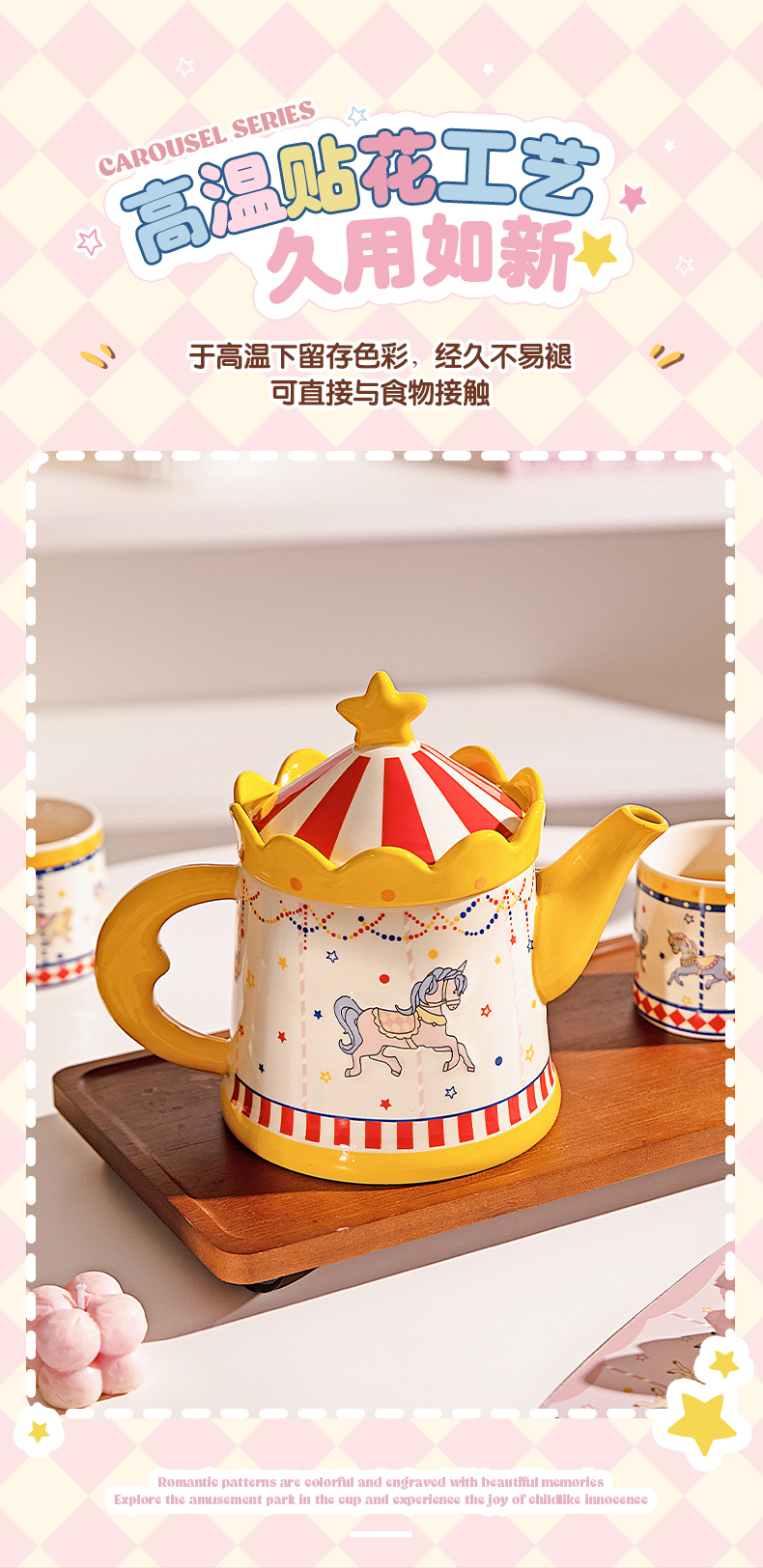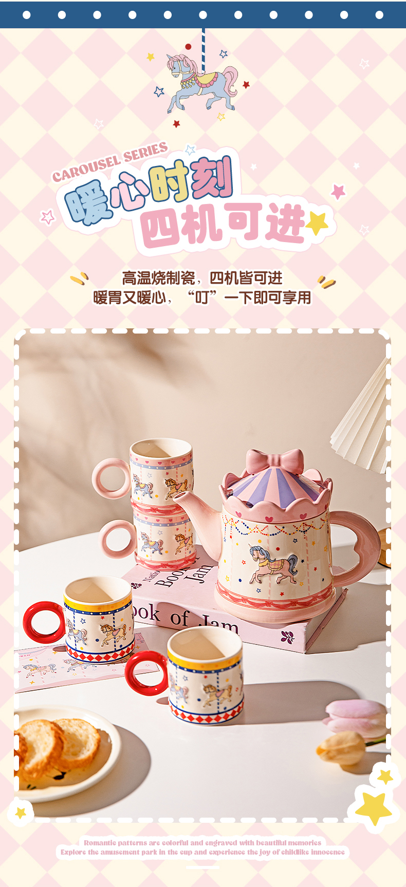 摩登主妇旋转木马陶瓷泡茶壶乔迁新婚礼物送闺蜜生日浮雕茶具套装