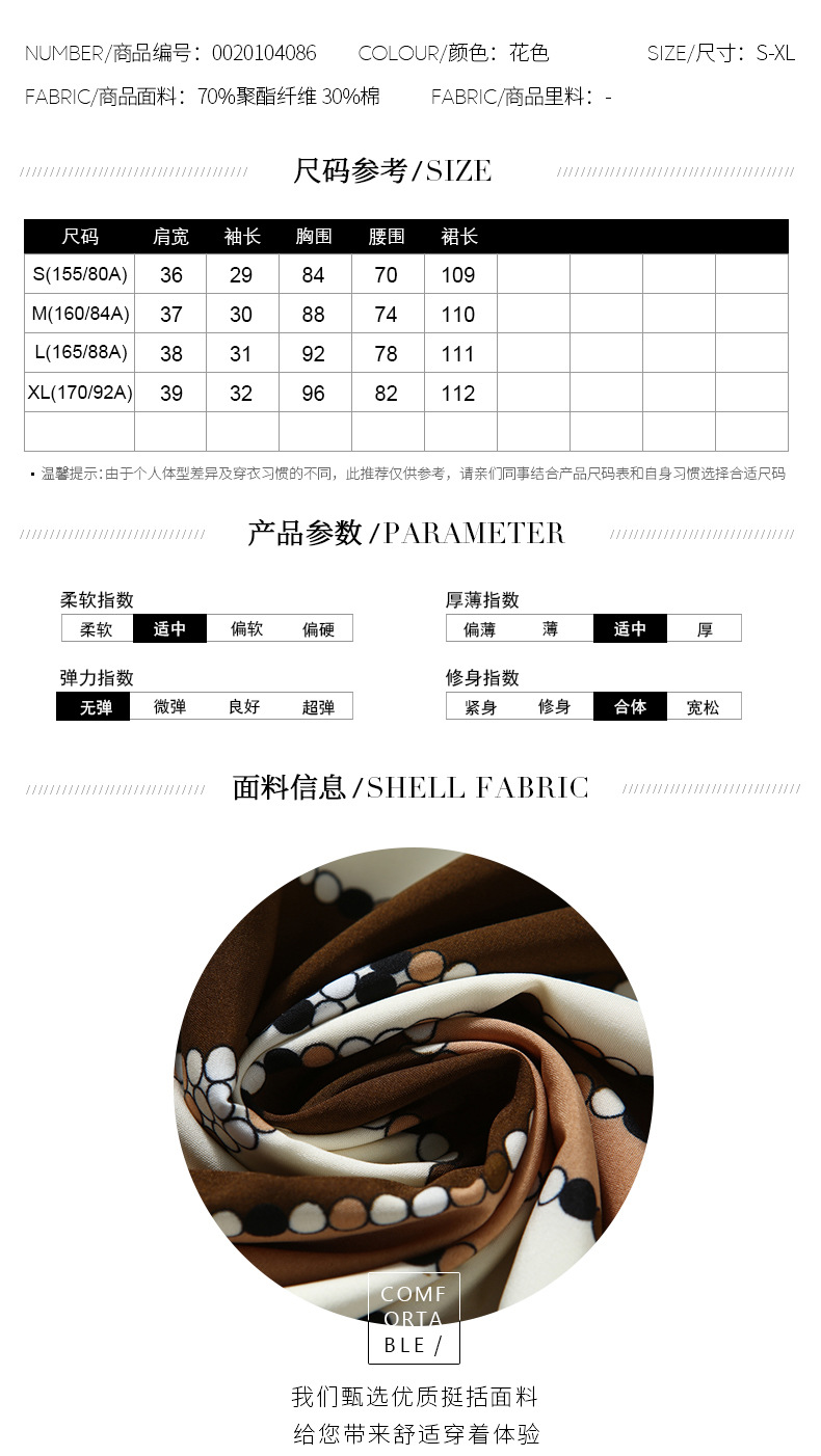 BHS-020104086新款女新款品质款中长款五分袖圆领撞色波点A字裙