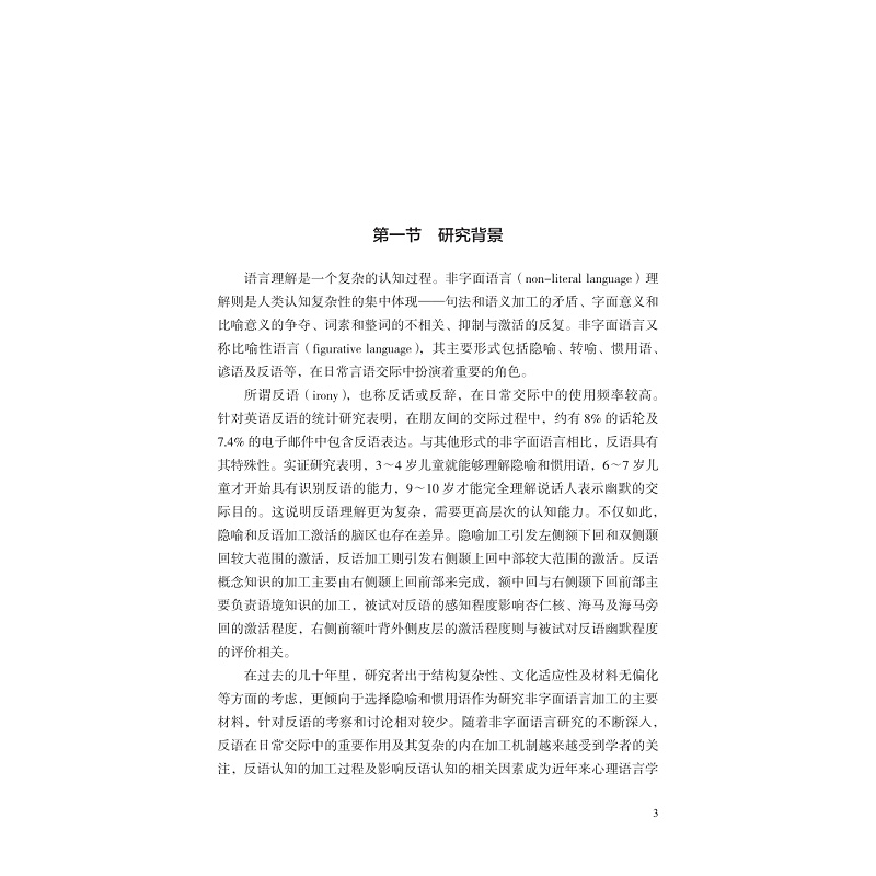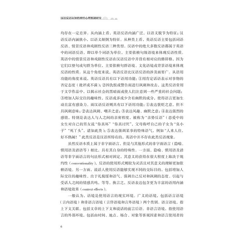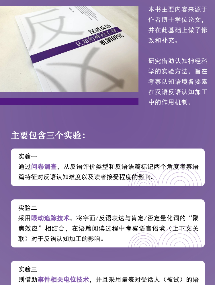 本书梳理归纳前人提出的众多反语认知理论和假说,结合实验证据,提出反语认知加工的动态建构模型,为当前的非字面语言加工实证研究提供新的视角和思路。