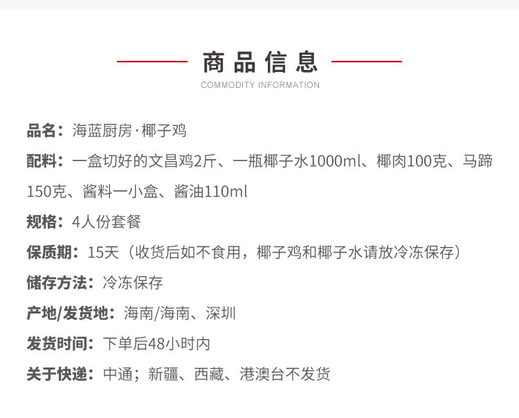 【 4人份食材包】海南正宗文昌鸡海蓝厨房·椰子鸡 4人份食材包 顺丰