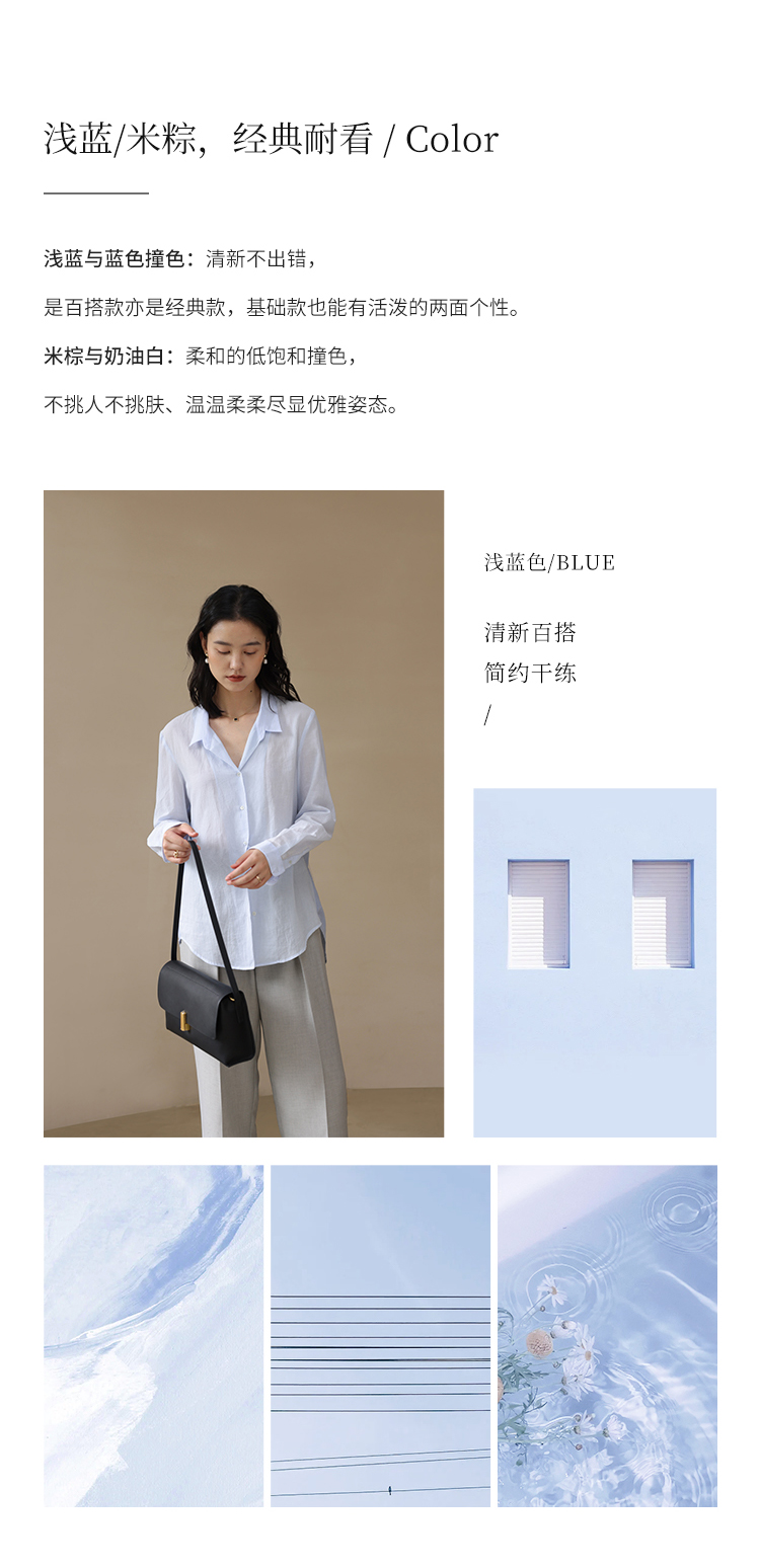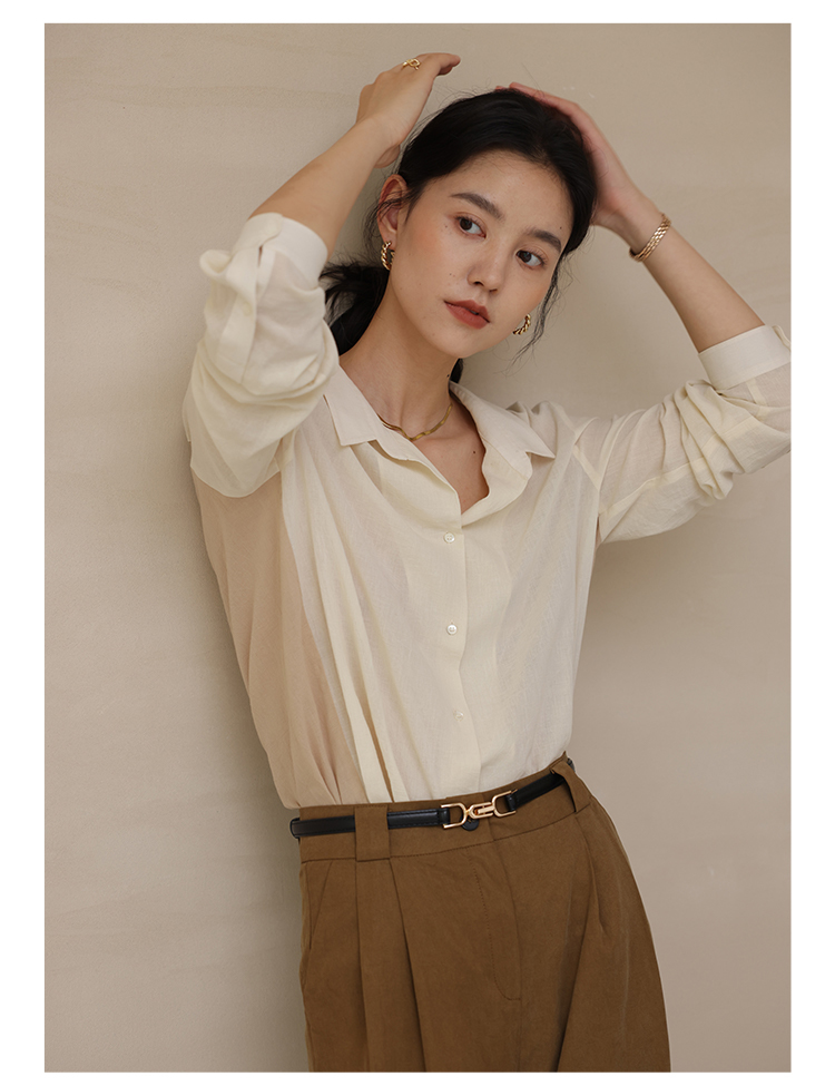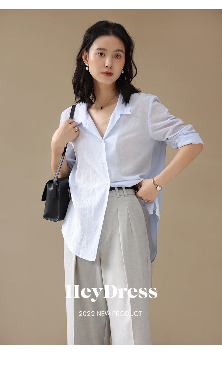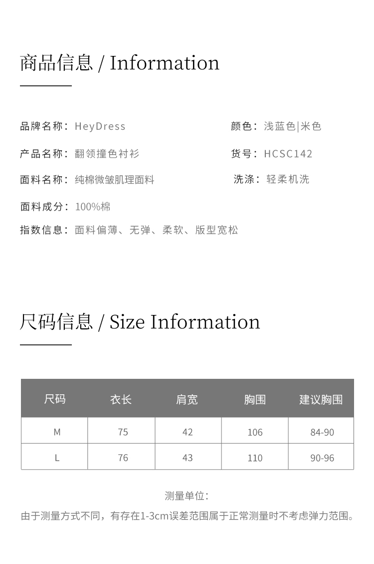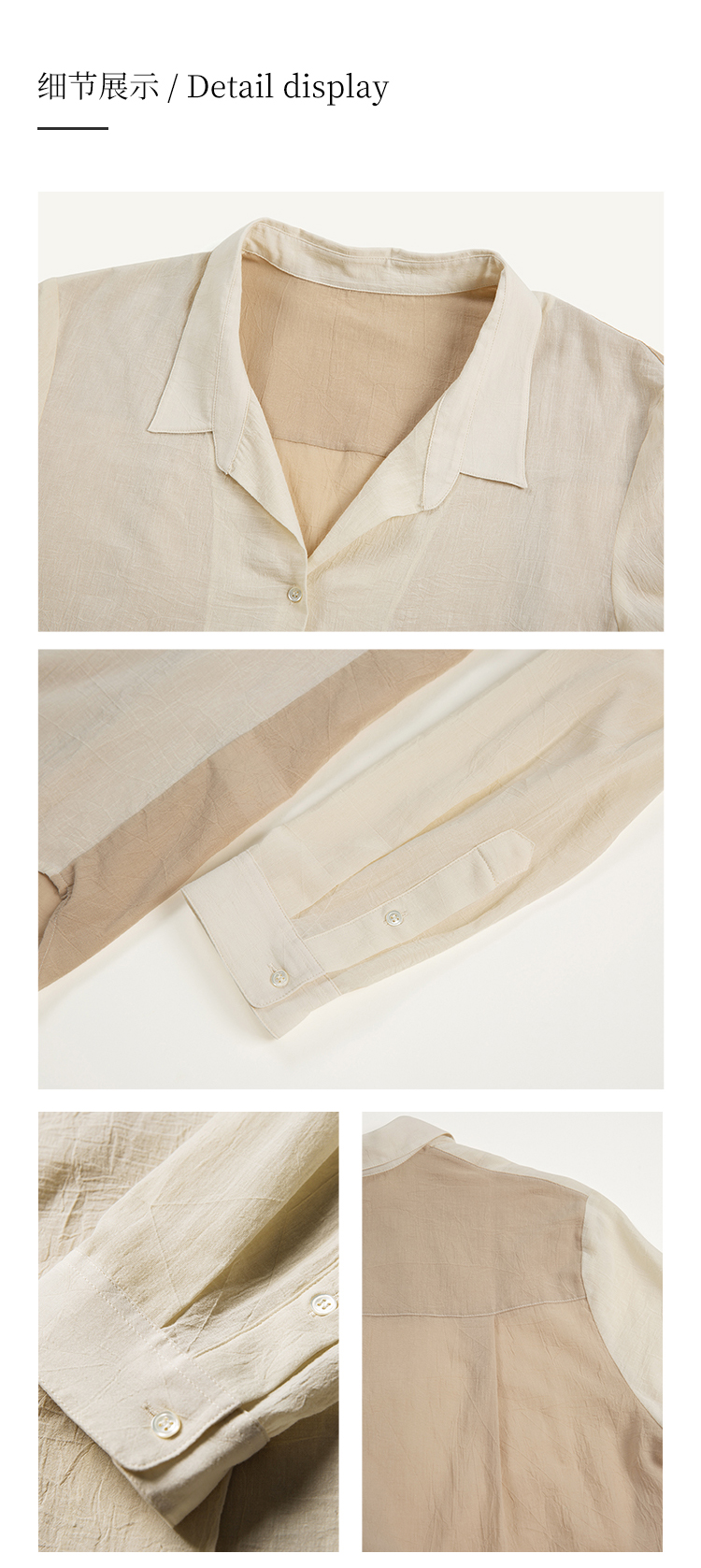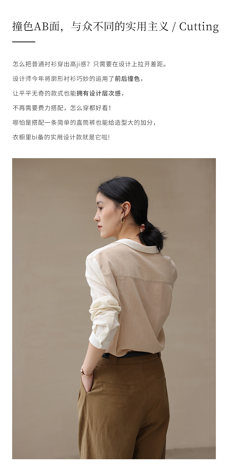 HeyDress休闲长袖衬衫女夏季宽松垂感撞色设计感衬衣薄款气质上衣