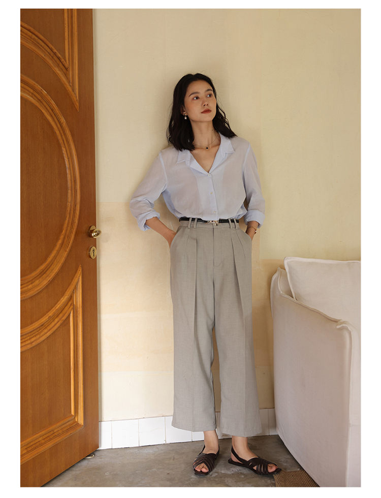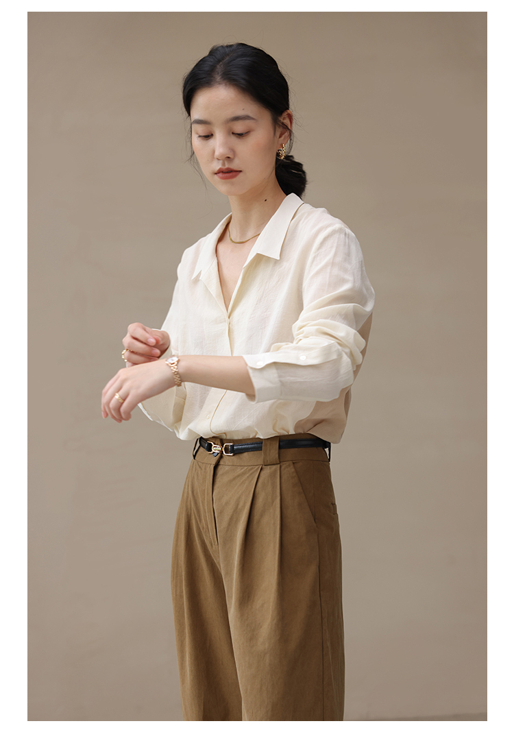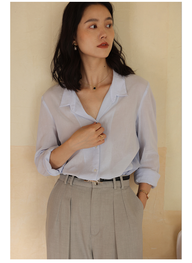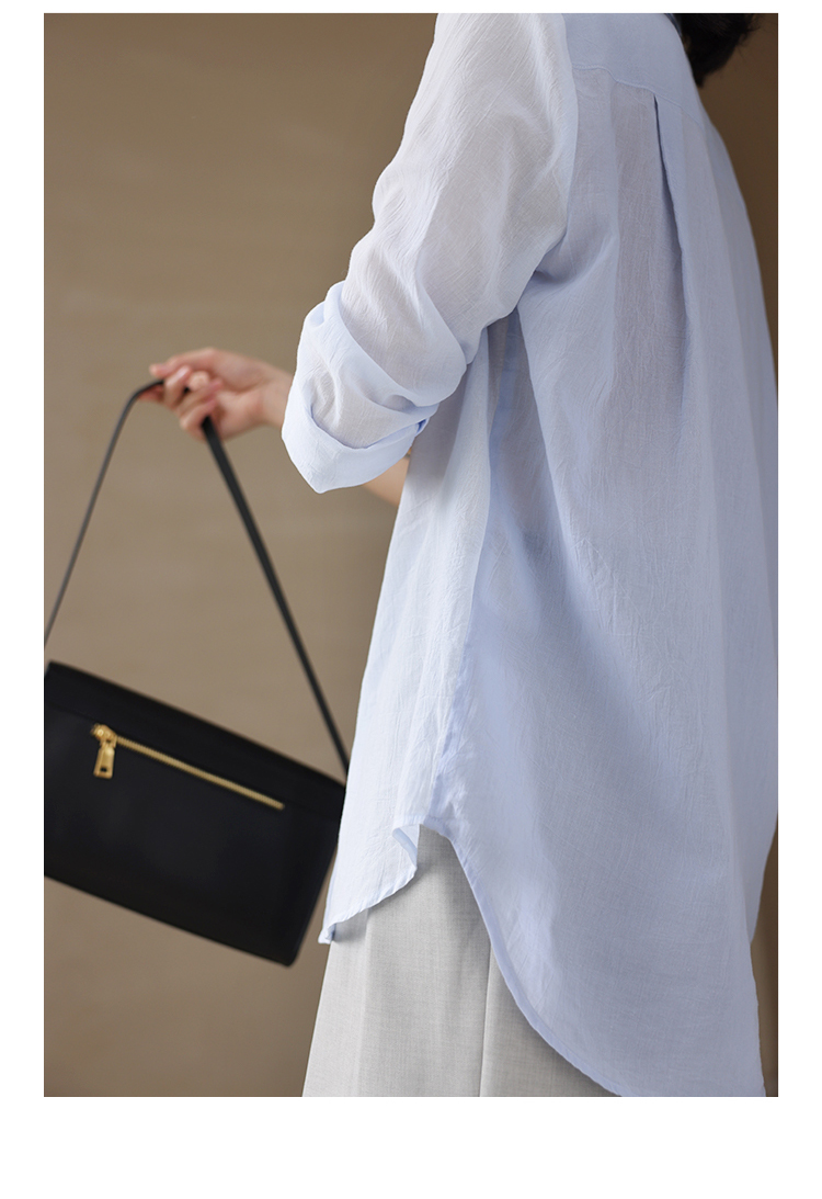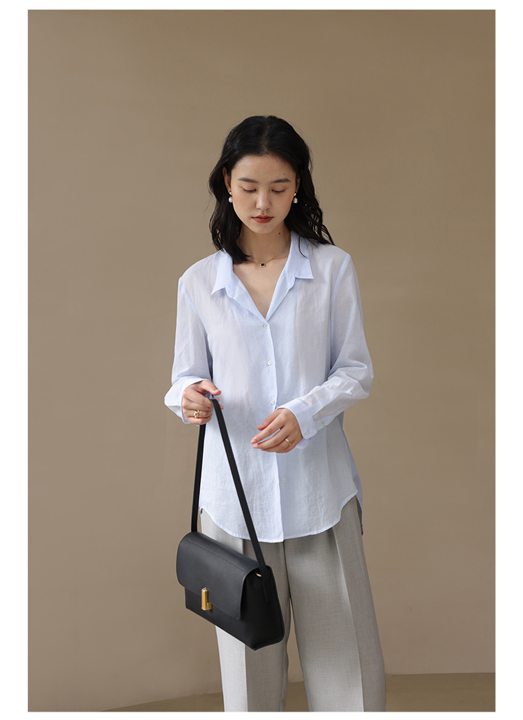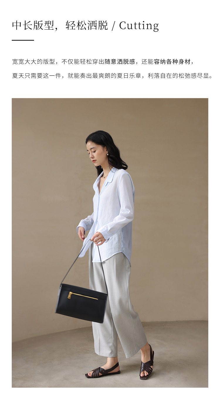 HeyDress休闲长袖衬衫女夏季宽松垂感撞色设计感衬衣薄款气质上衣