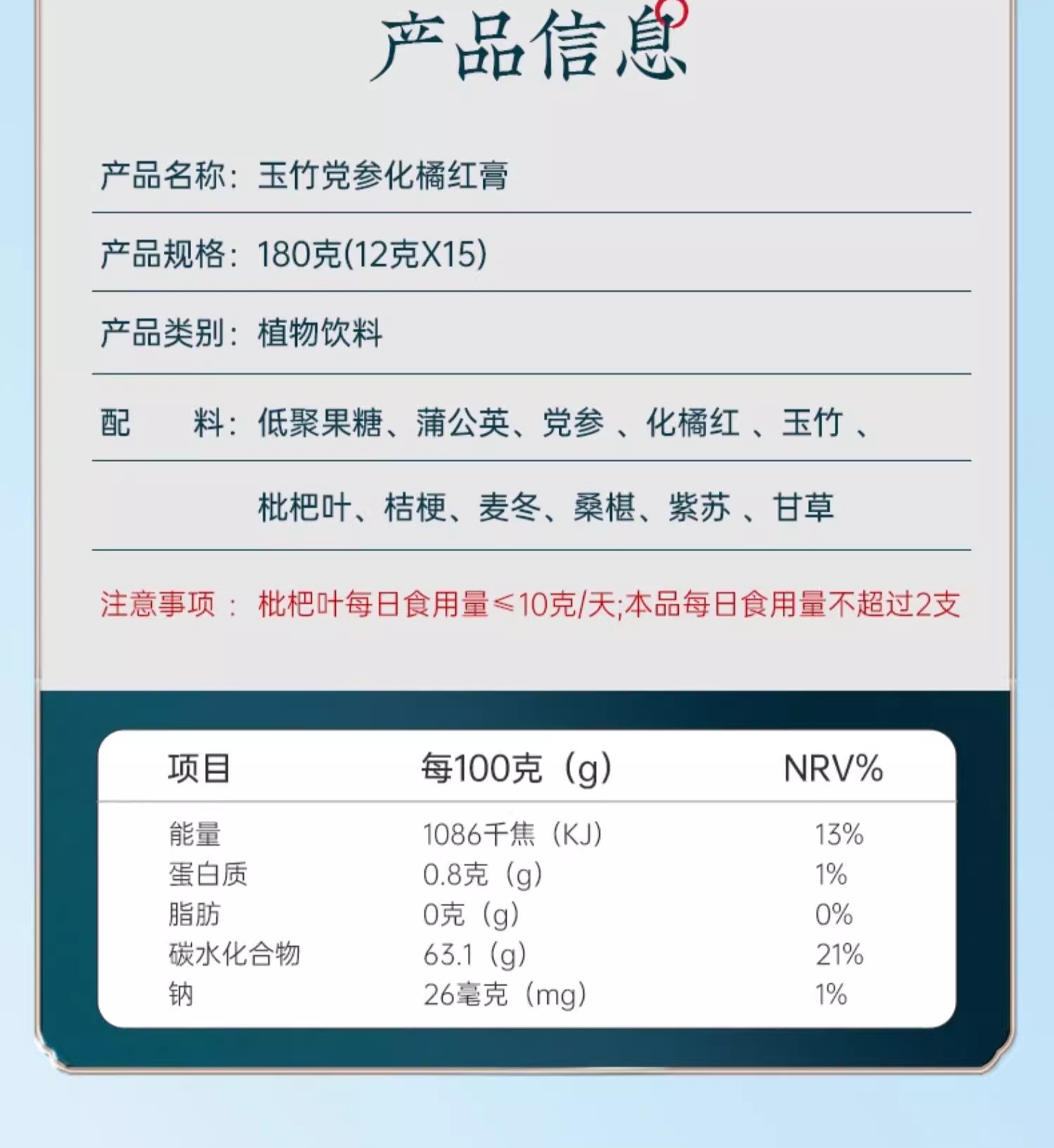 杜江南·玉竹党参化橘红膏180g (15支/礼盒) 秋冬关怀 草本滋养 精致好礼