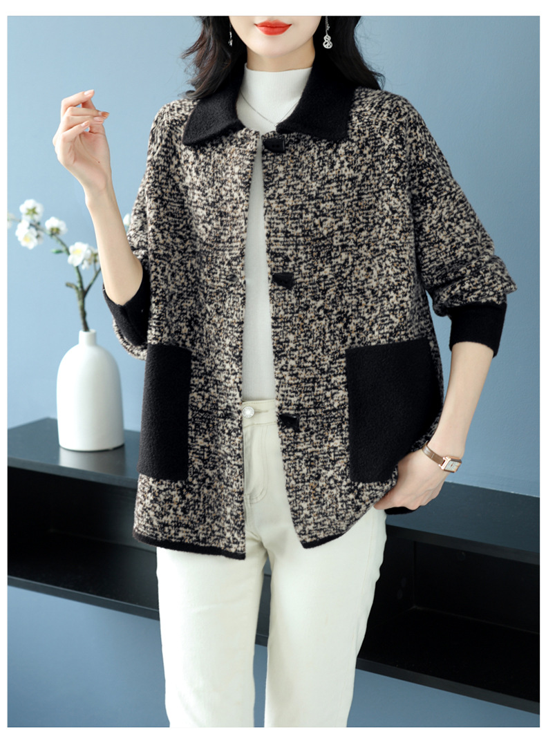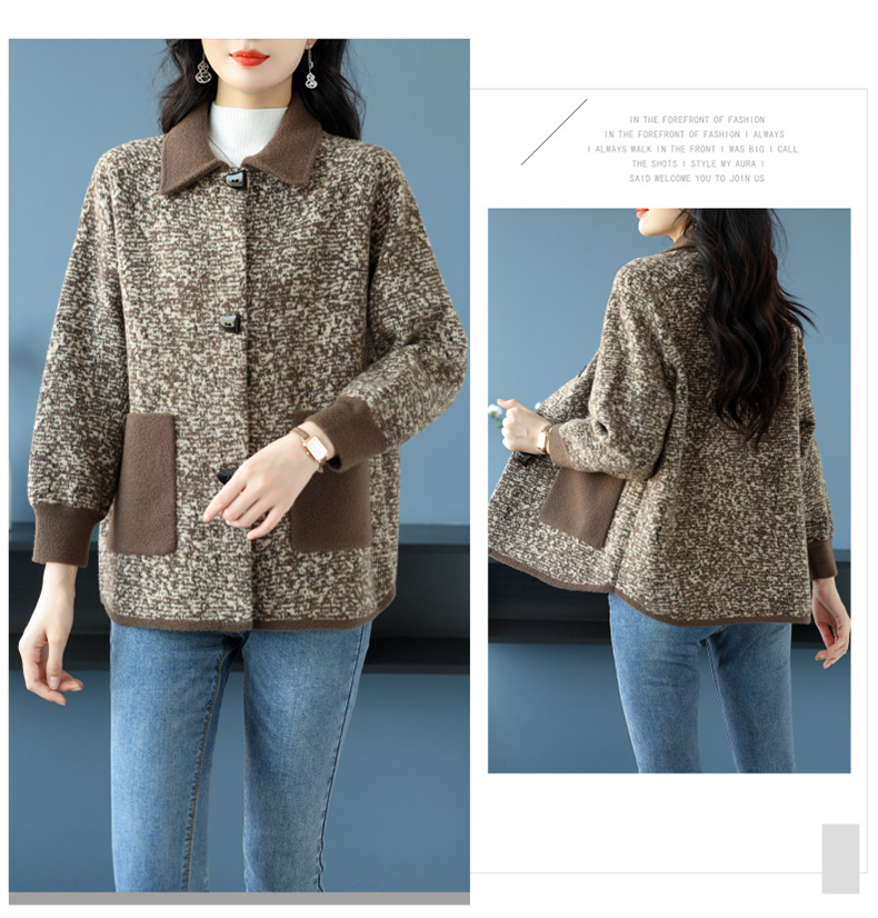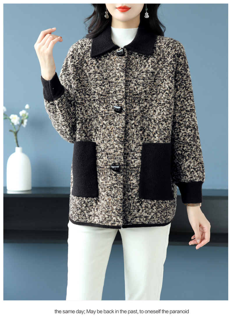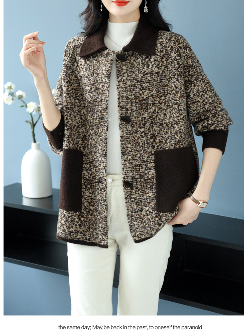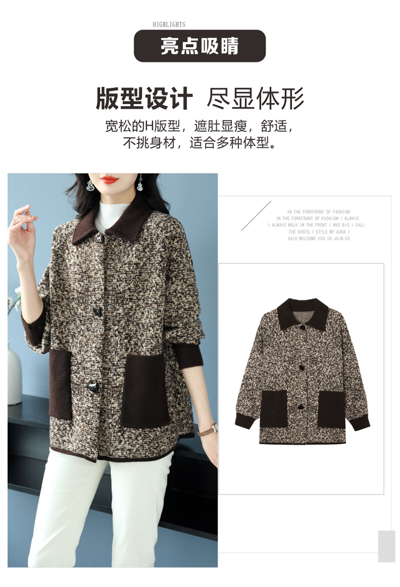 CC-17-2074翻领呢子大衣外套女宽松时尚洋气中年妈妈大码宽松秋冬毛呢上衣厚