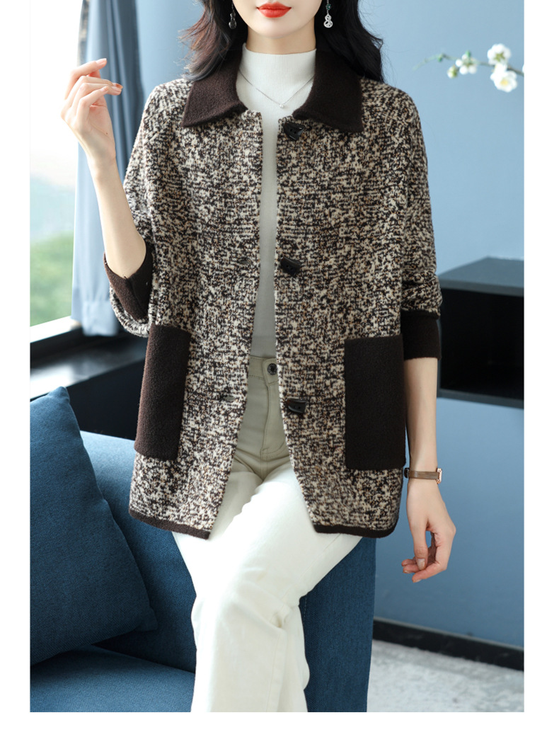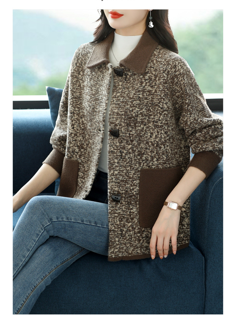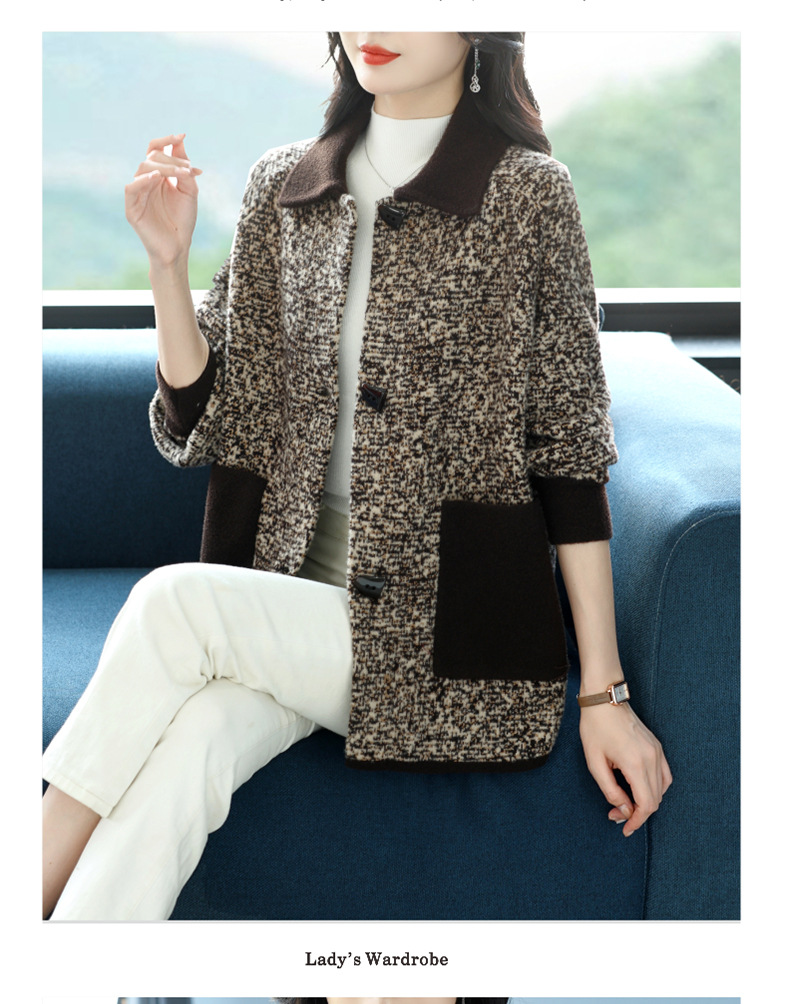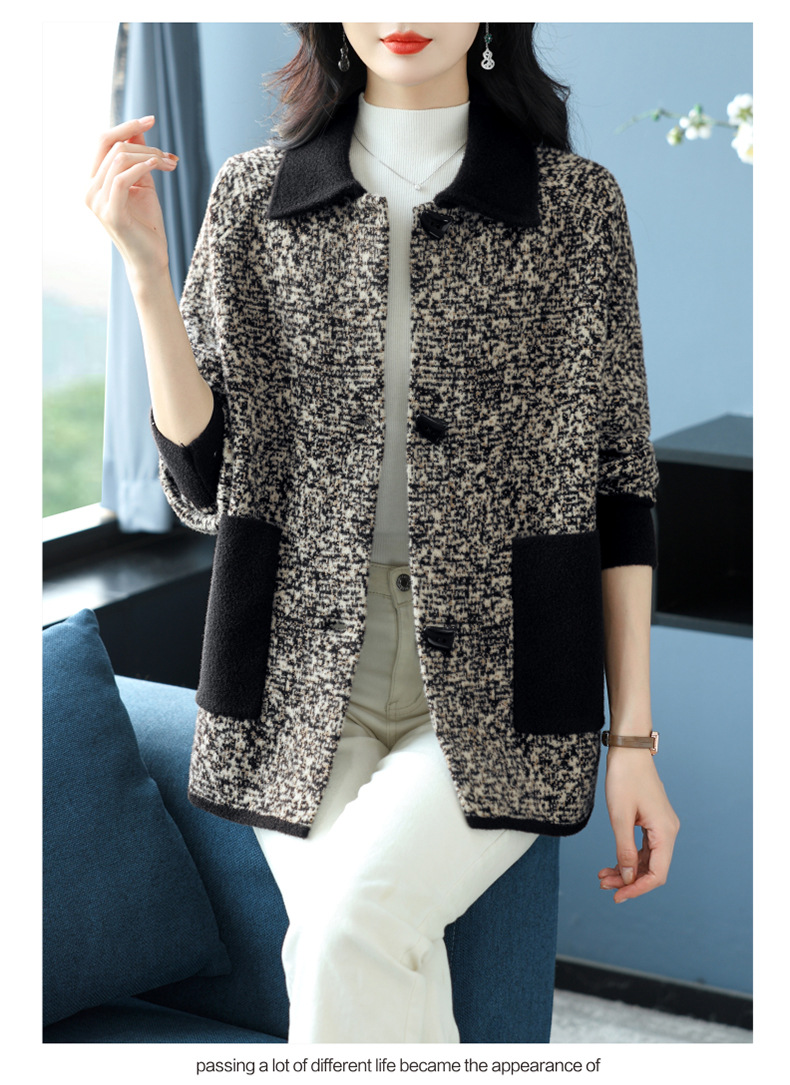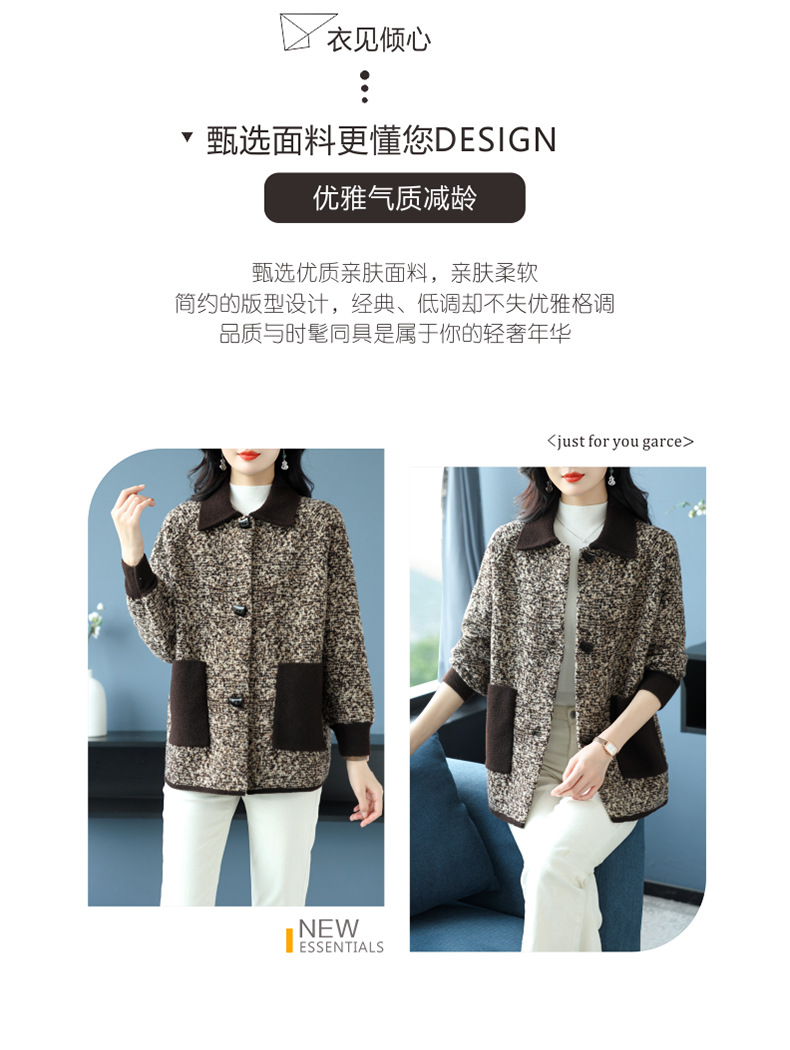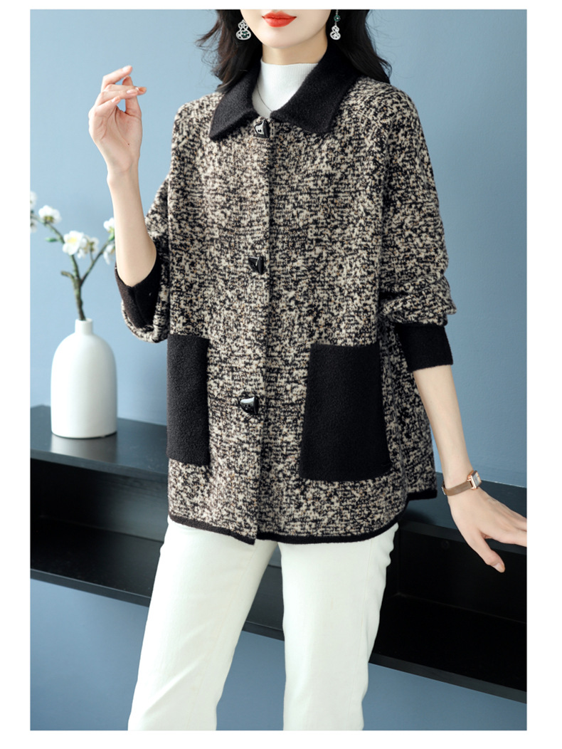 CC-17-2074翻领呢子大衣外套女宽松时尚洋气中年妈妈大码宽松秋冬毛呢上衣厚