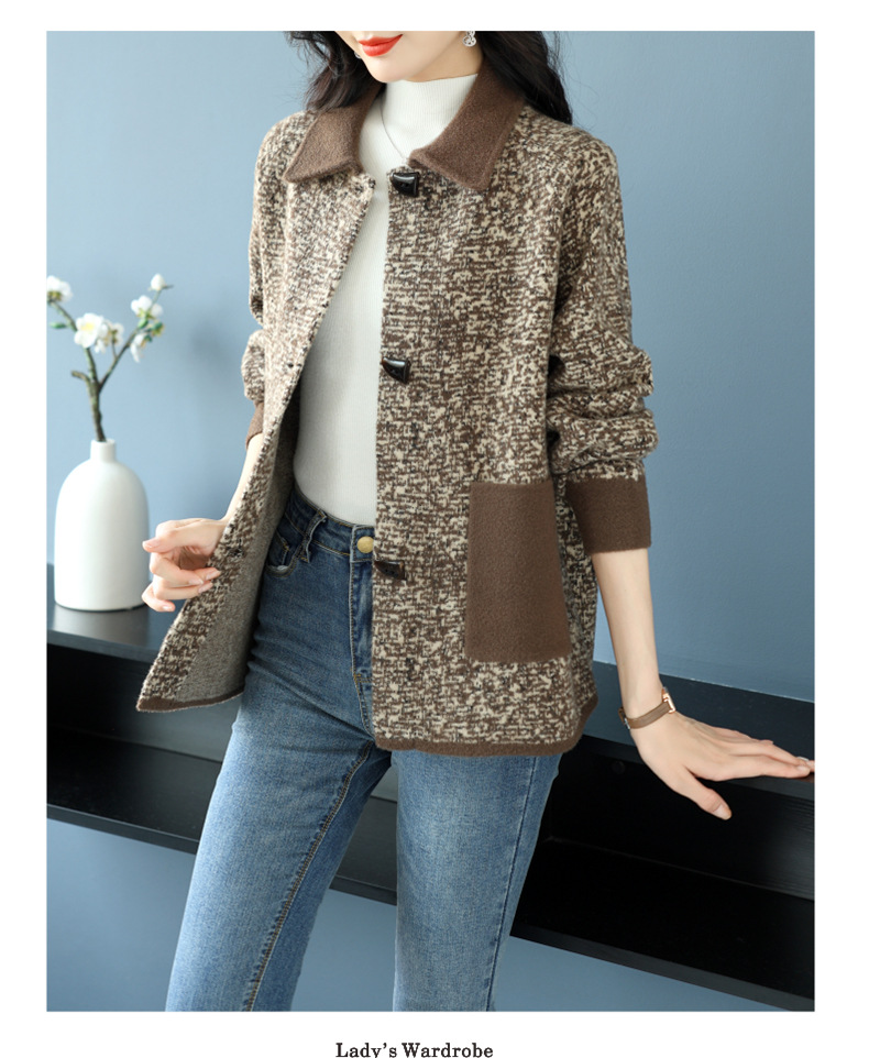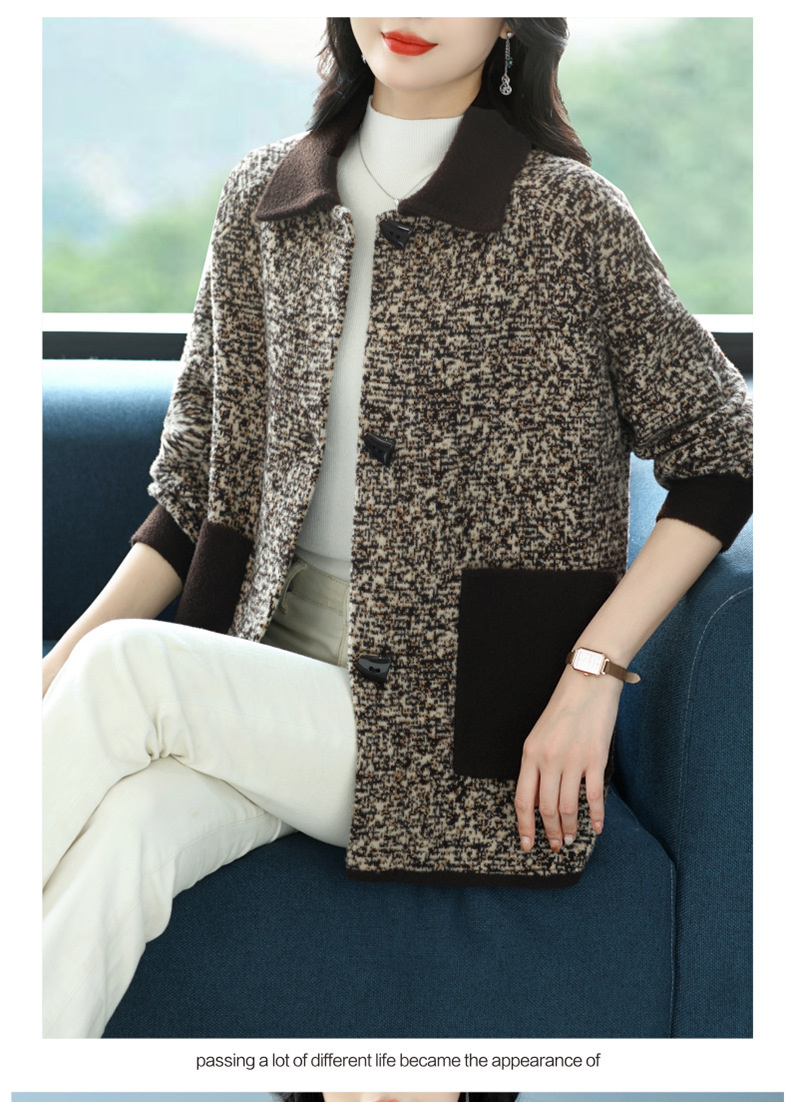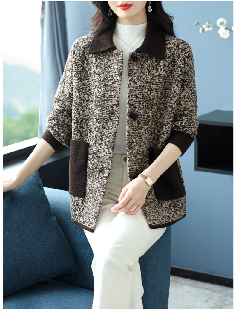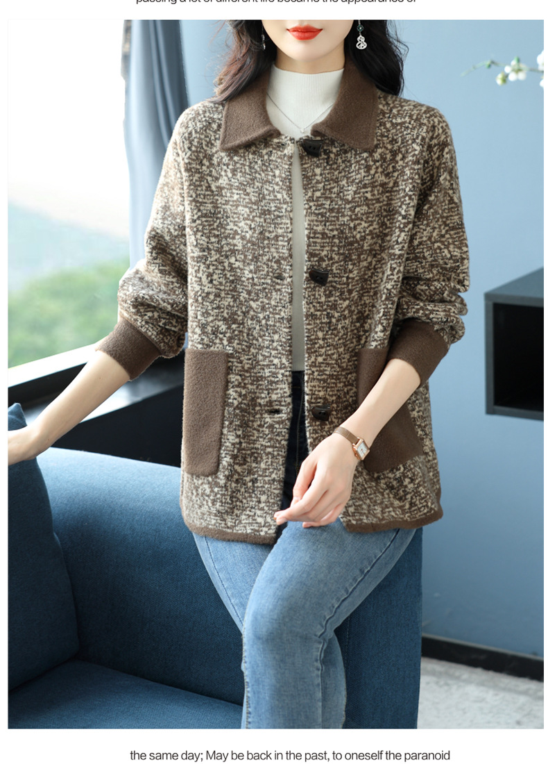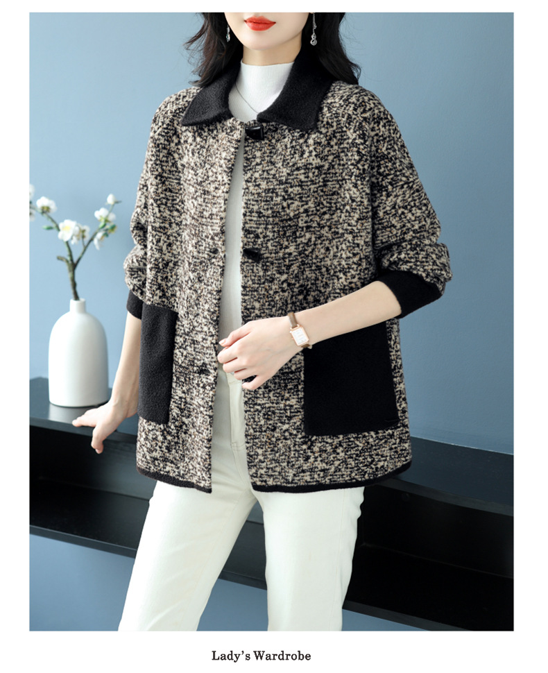 CC-17-2074翻领呢子大衣外套女宽松时尚洋气中年妈妈大码宽松秋冬毛呢上衣厚
