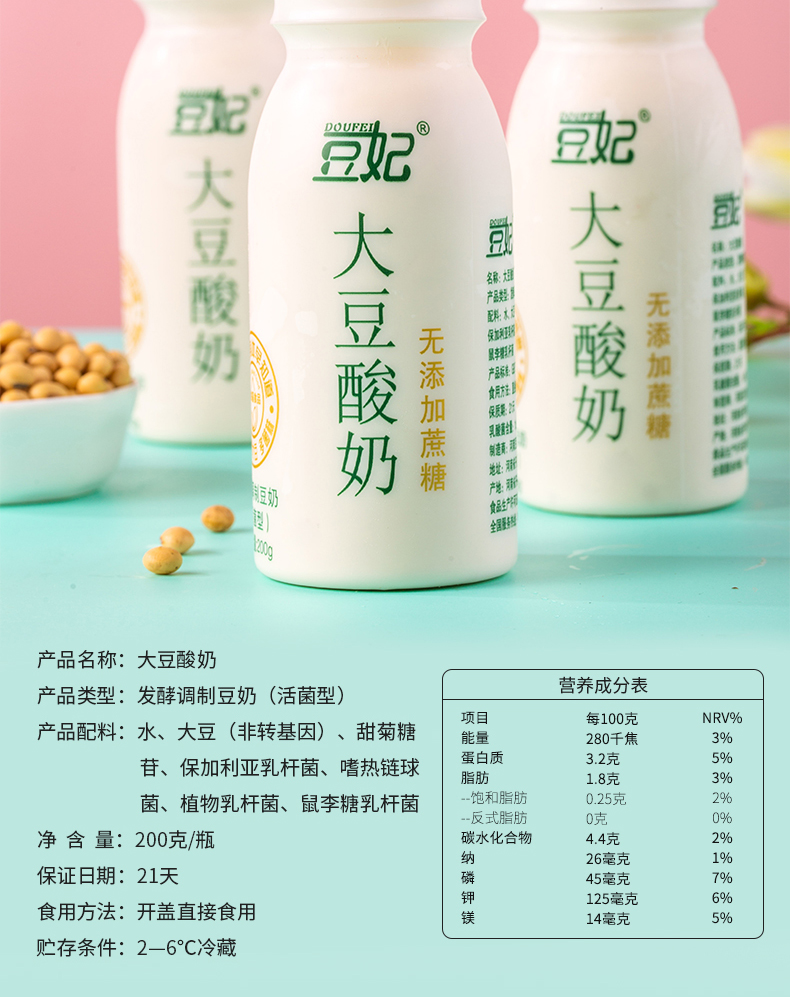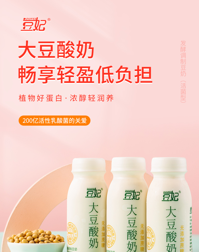 大豆酸奶 (不添加蔗糖) | 200g*6瓶/10瓶 原味 植物蛋白发酵型酸奶 豆妃「下单后72小时内发货」