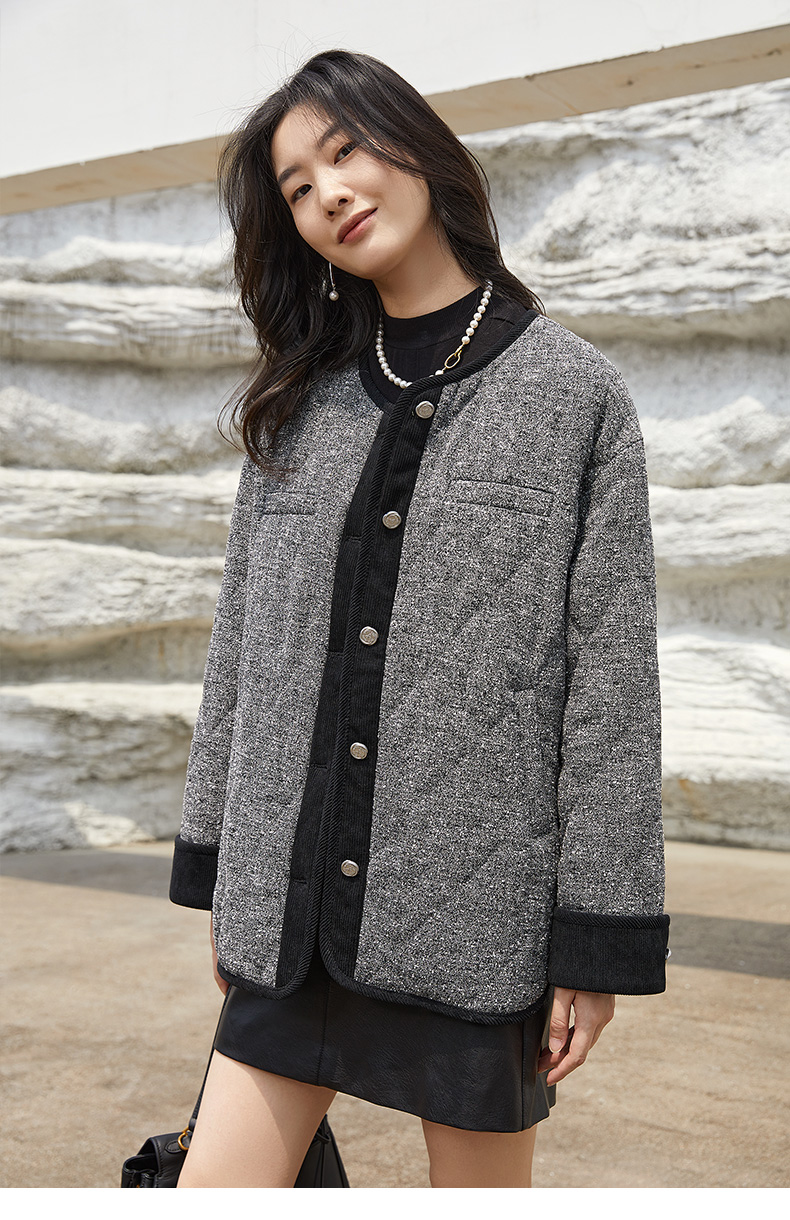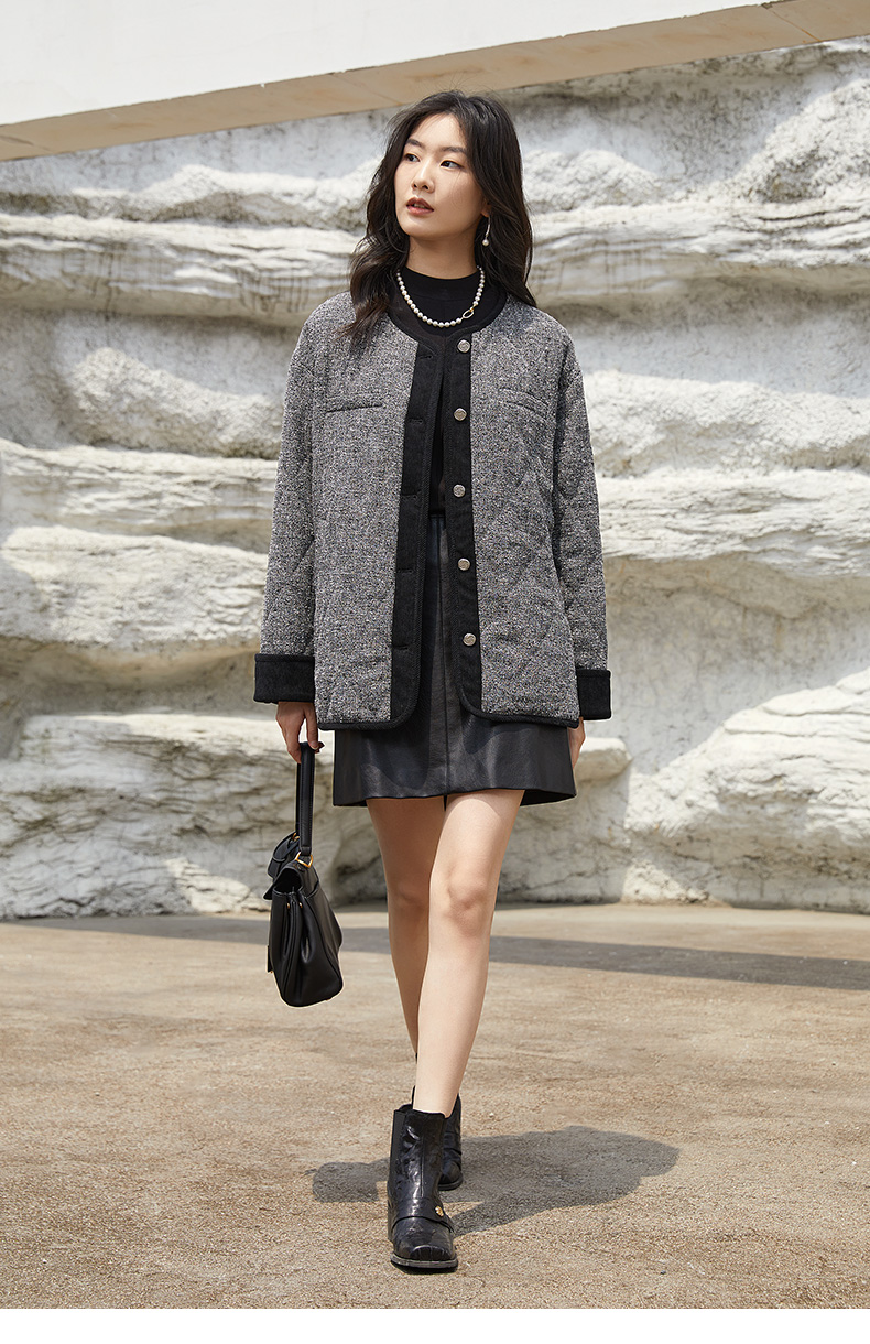 质感控必入 银灰混纺肌理纹 黑边点缀圆领单排扣复古小香风短外套