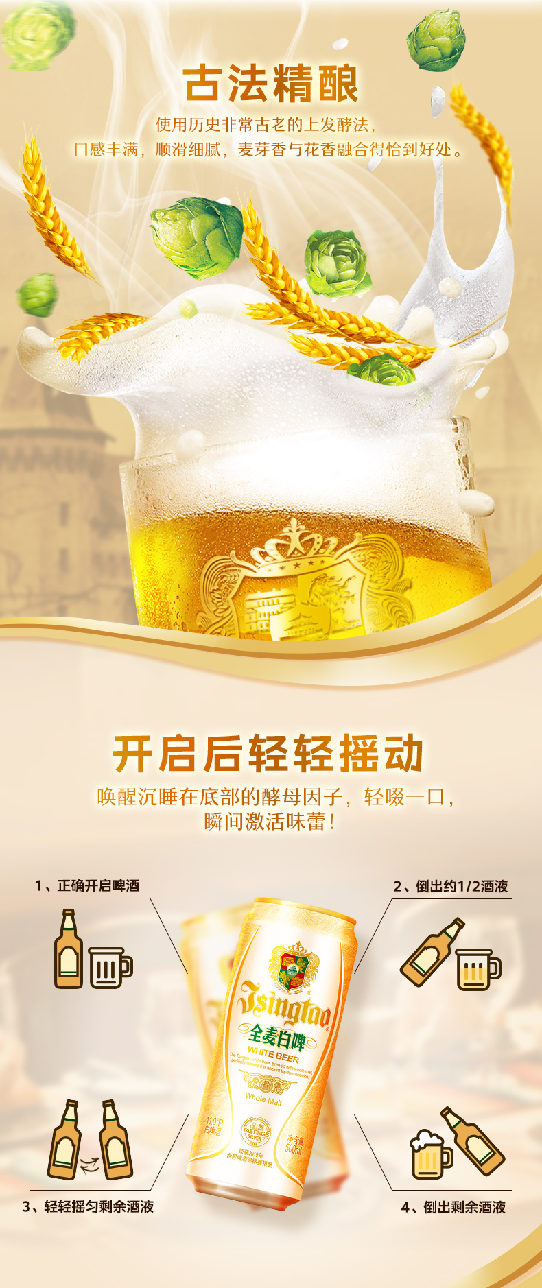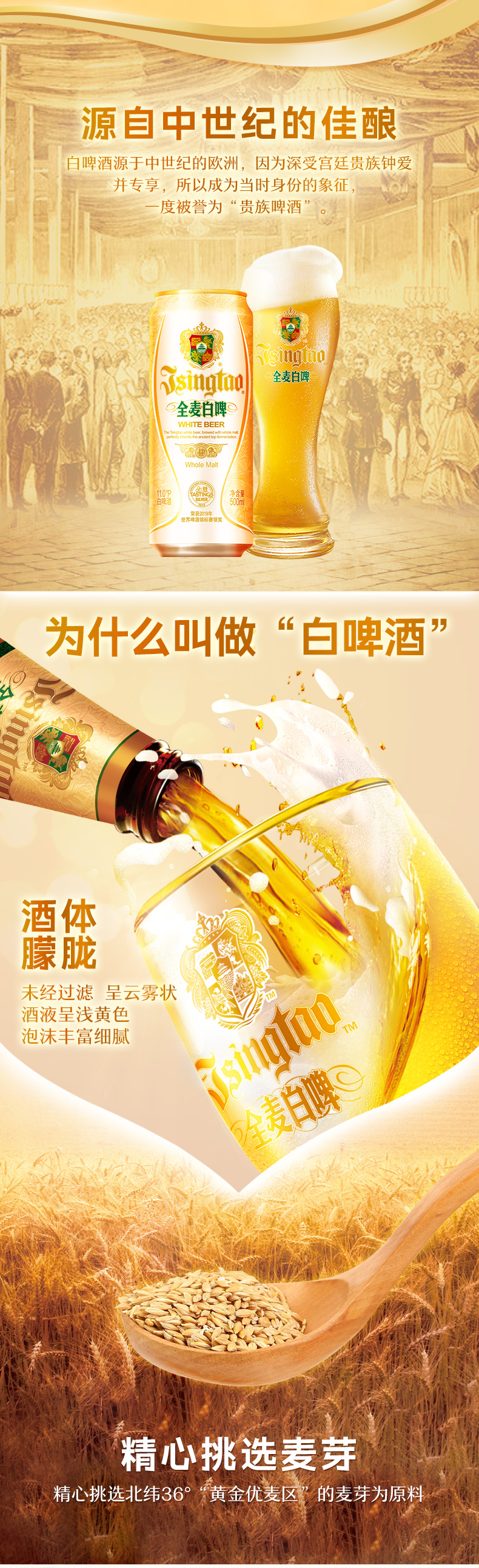 青岛啤酒 白啤500ml*12听/箱 全麦酿造 商品图4