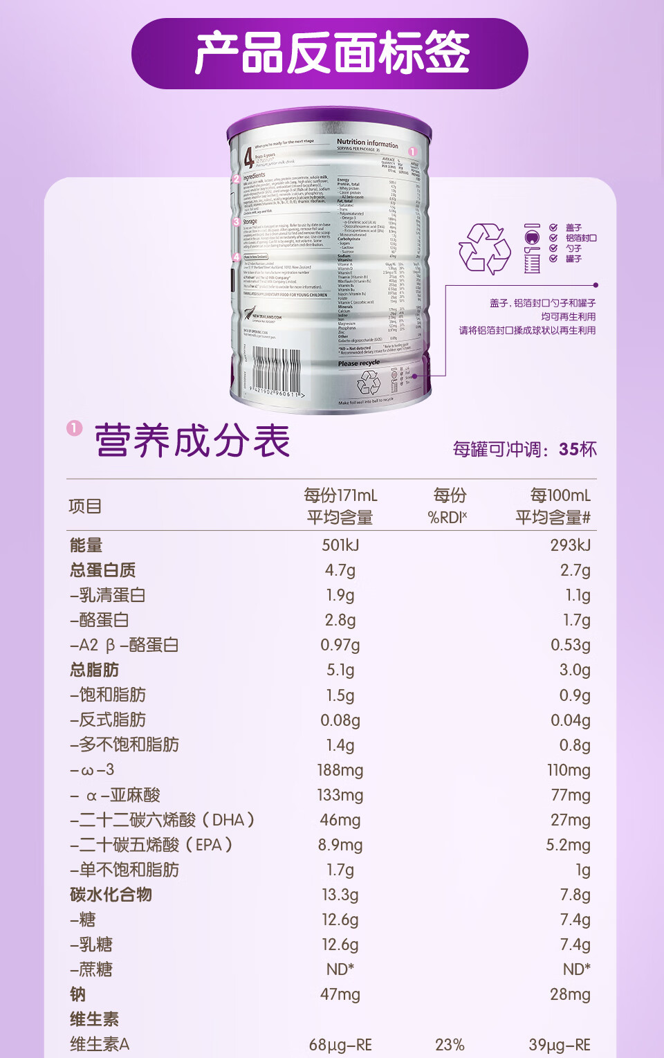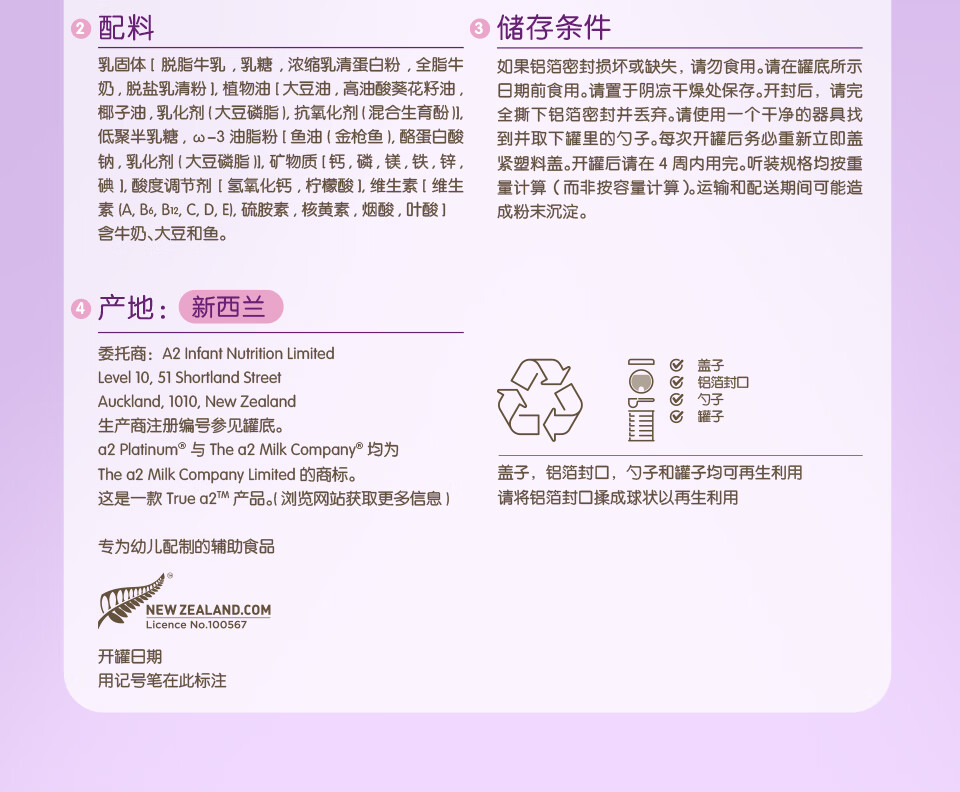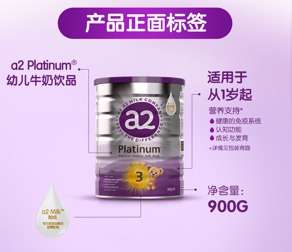 澳洲 A2白金婴儿配方奶粉3段 900g 跨境购