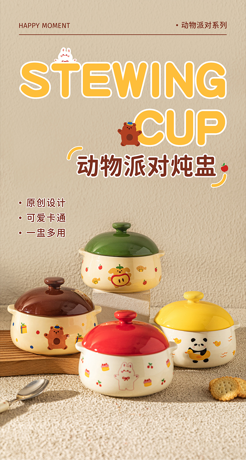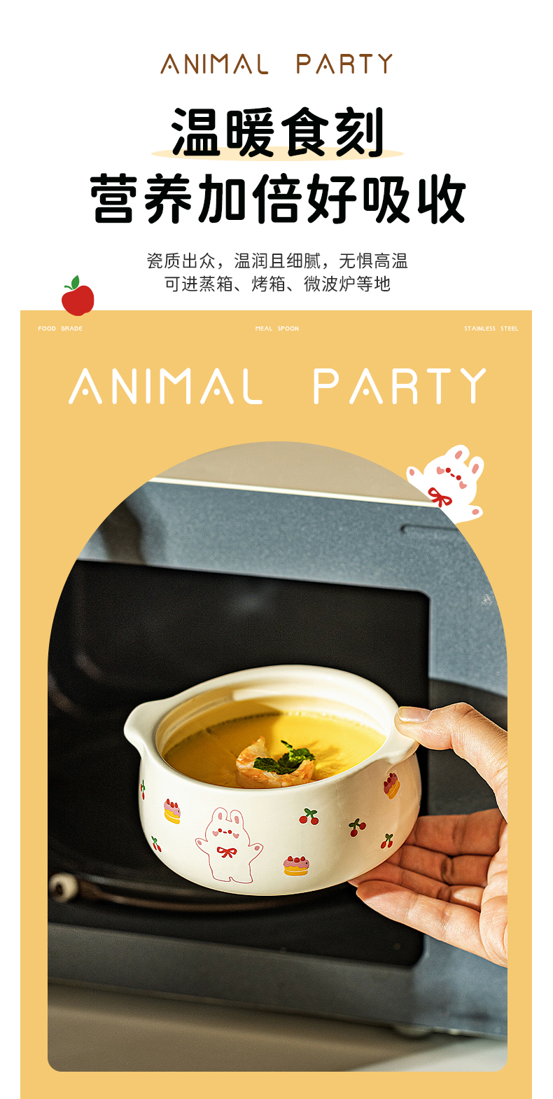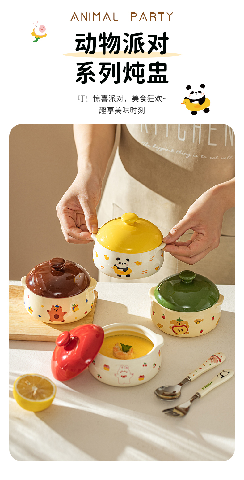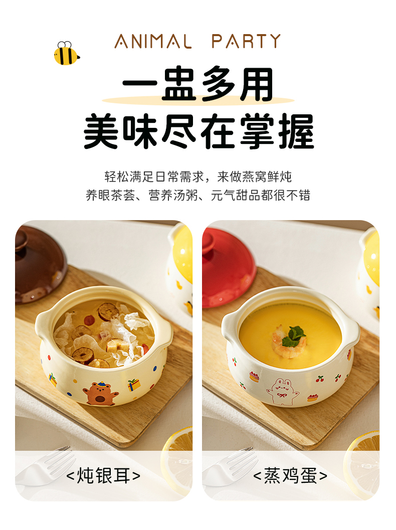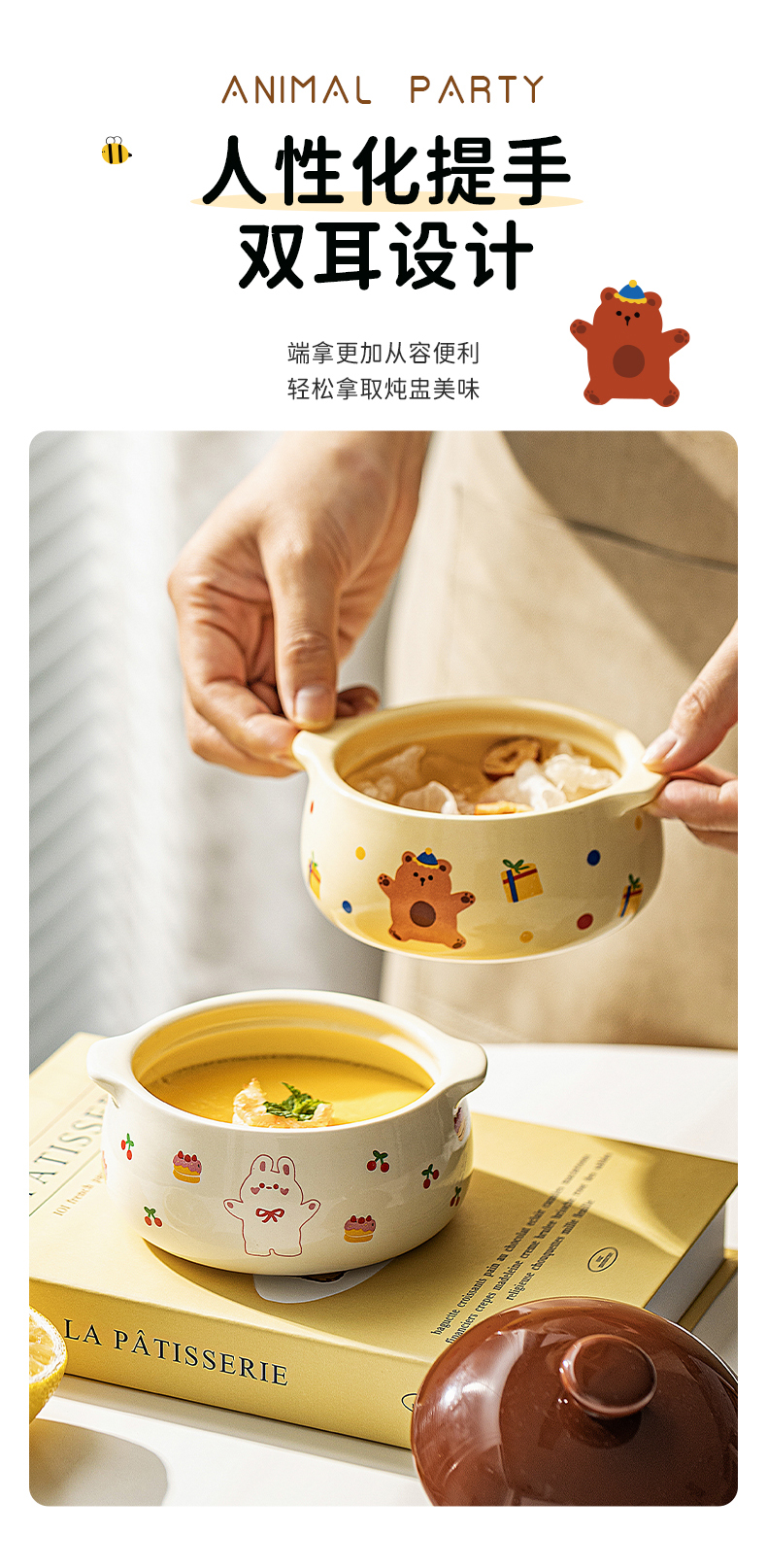 摩登主妇双耳蒸蛋碗带盖陶瓷炖盅小汤盅水蒸蛋专用碗家用餐具饭碗