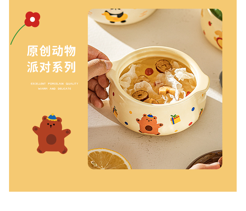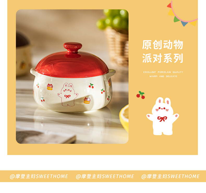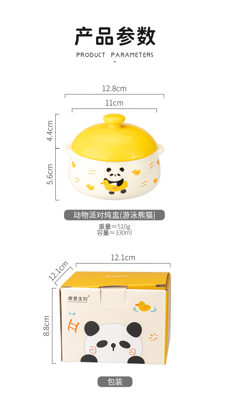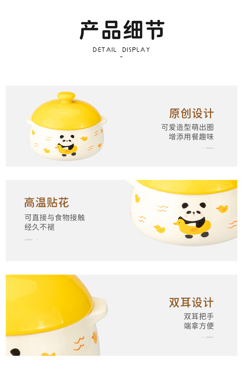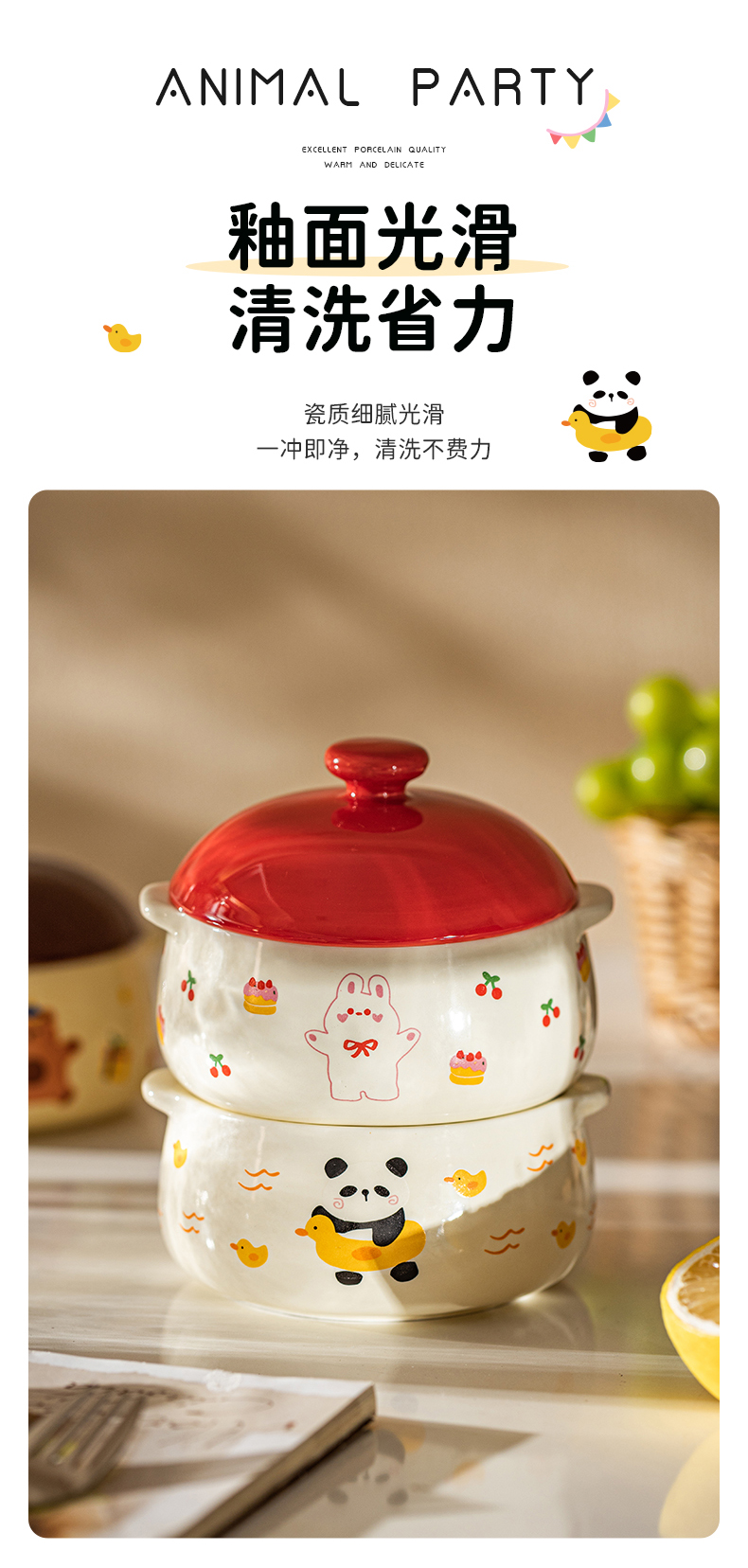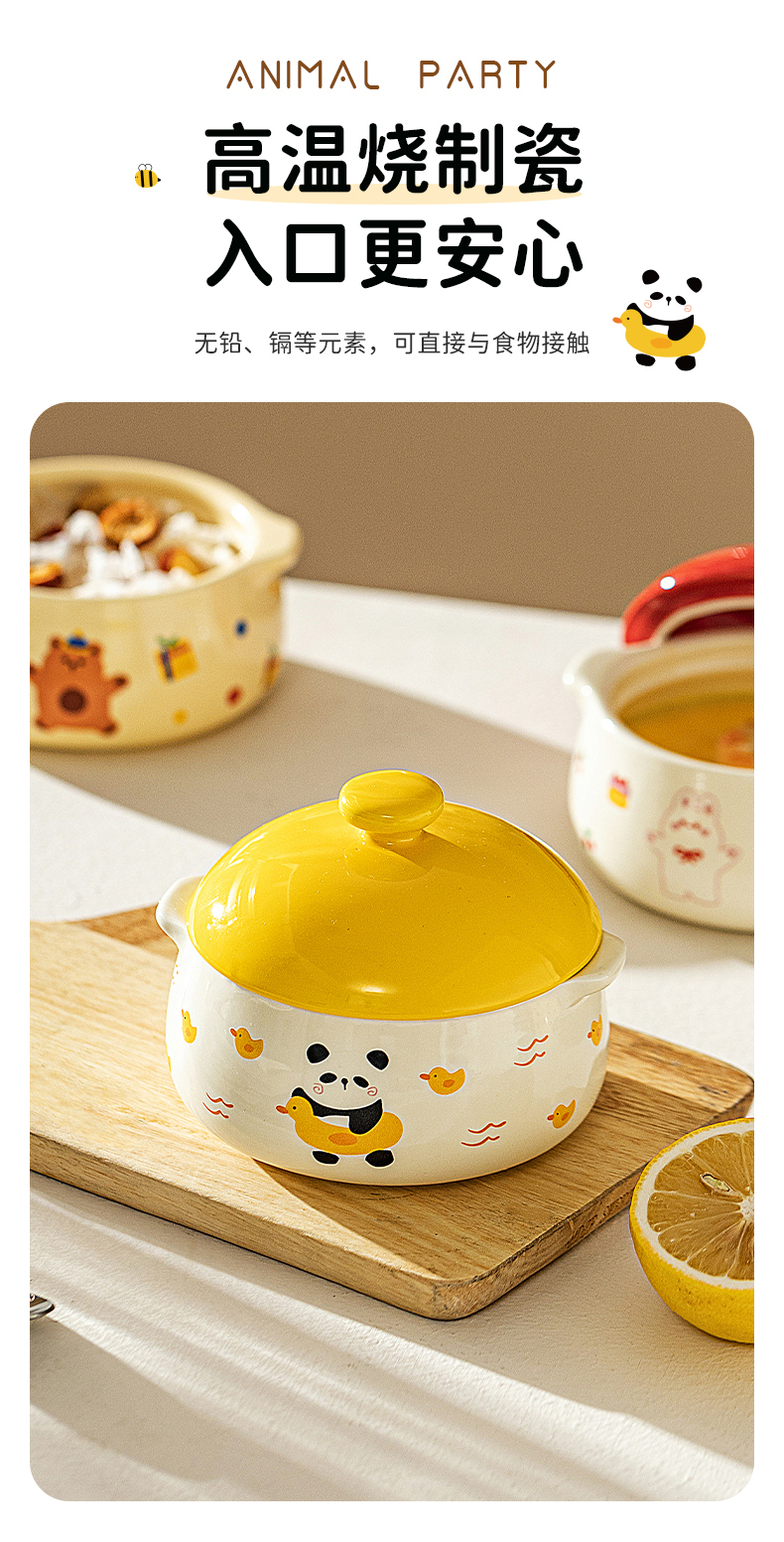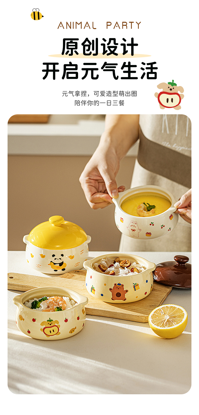摩登主妇双耳蒸蛋碗带盖陶瓷炖盅小汤盅水蒸蛋专用碗家用餐具饭碗