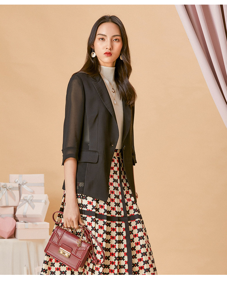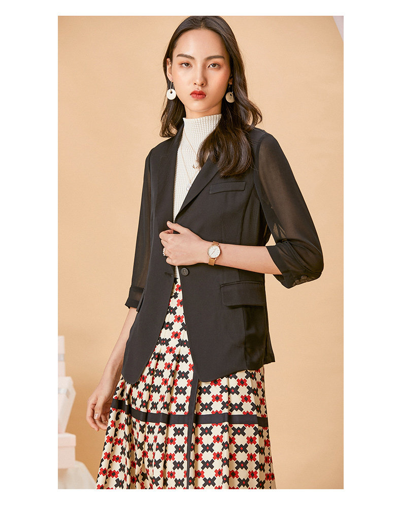 乔万尼短外套女春季韩版新款时尚气质休闲七分袖薄款外套ES1B026