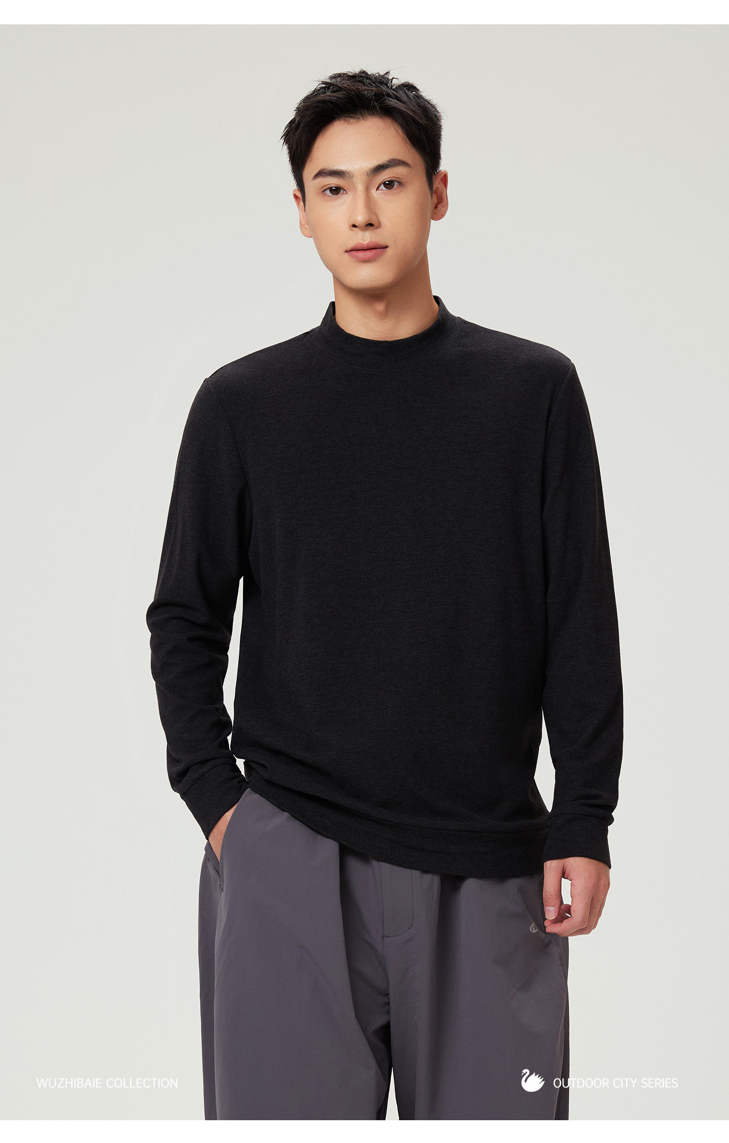 五只白鹅—2025秋冬男士天丝羊毛半高领保暖打底衫5511