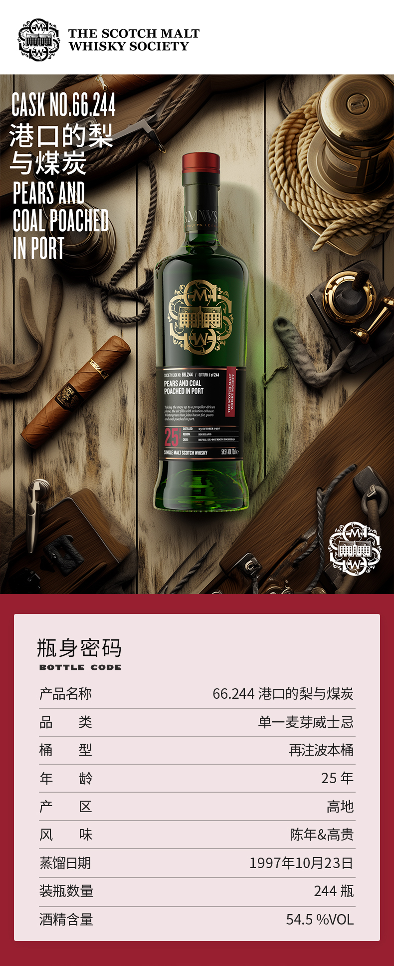 SMWS苏格兰麦芽威士忌协会 甄选黑标 66.244 港口的梨与煤炭