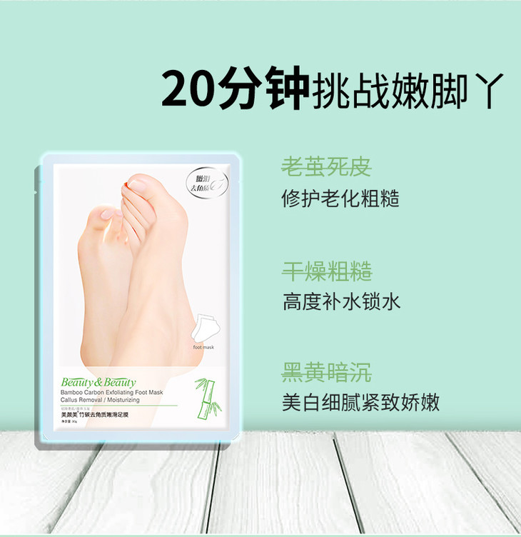1pcs美颜美竹炭去角质嫩滑足膜 足够美丽 足够轻松