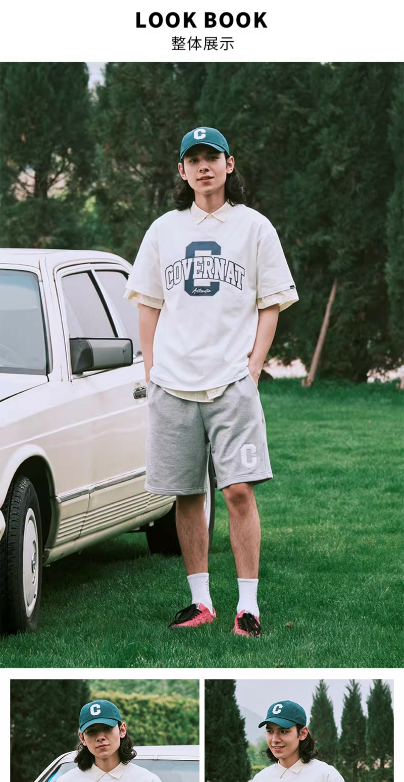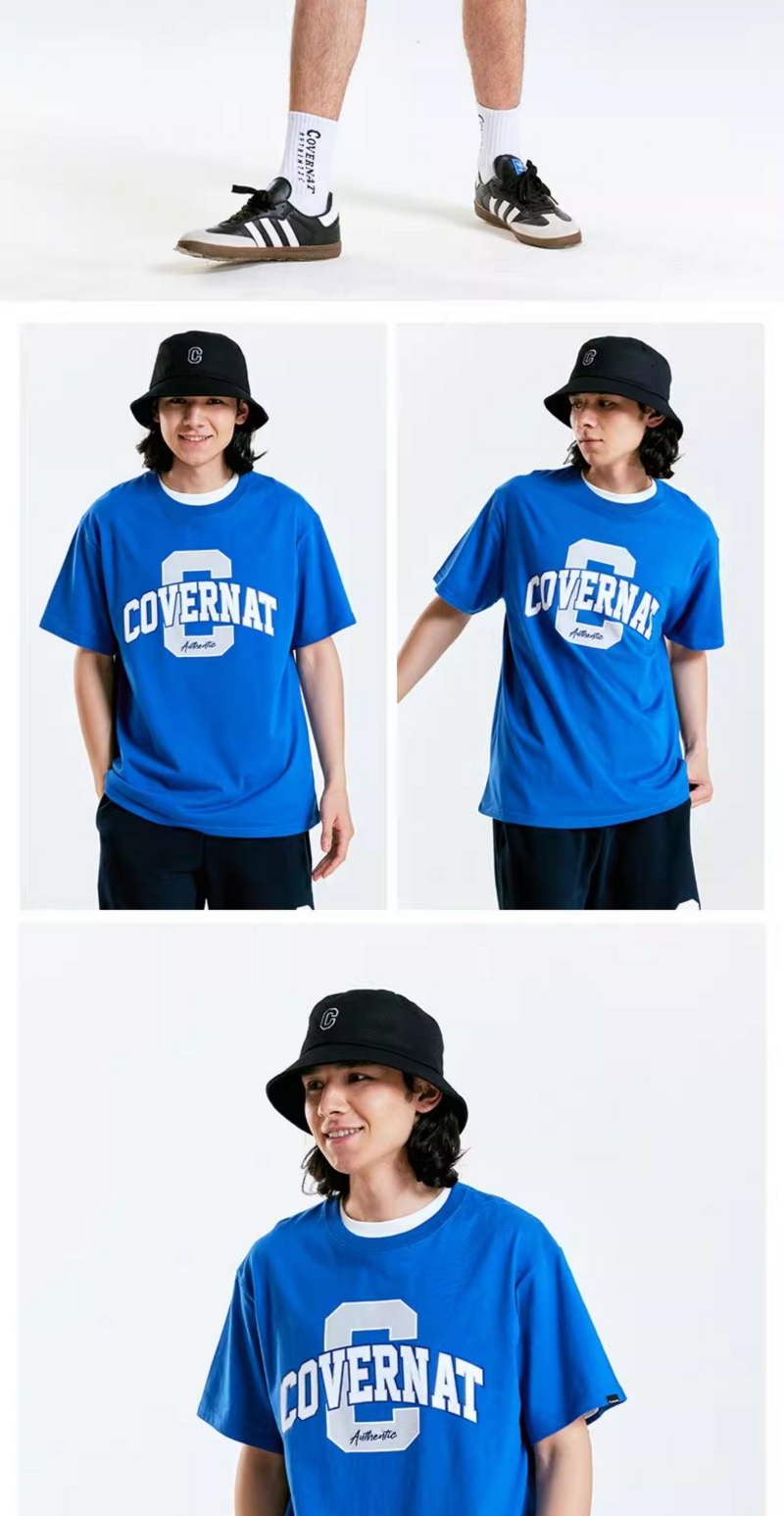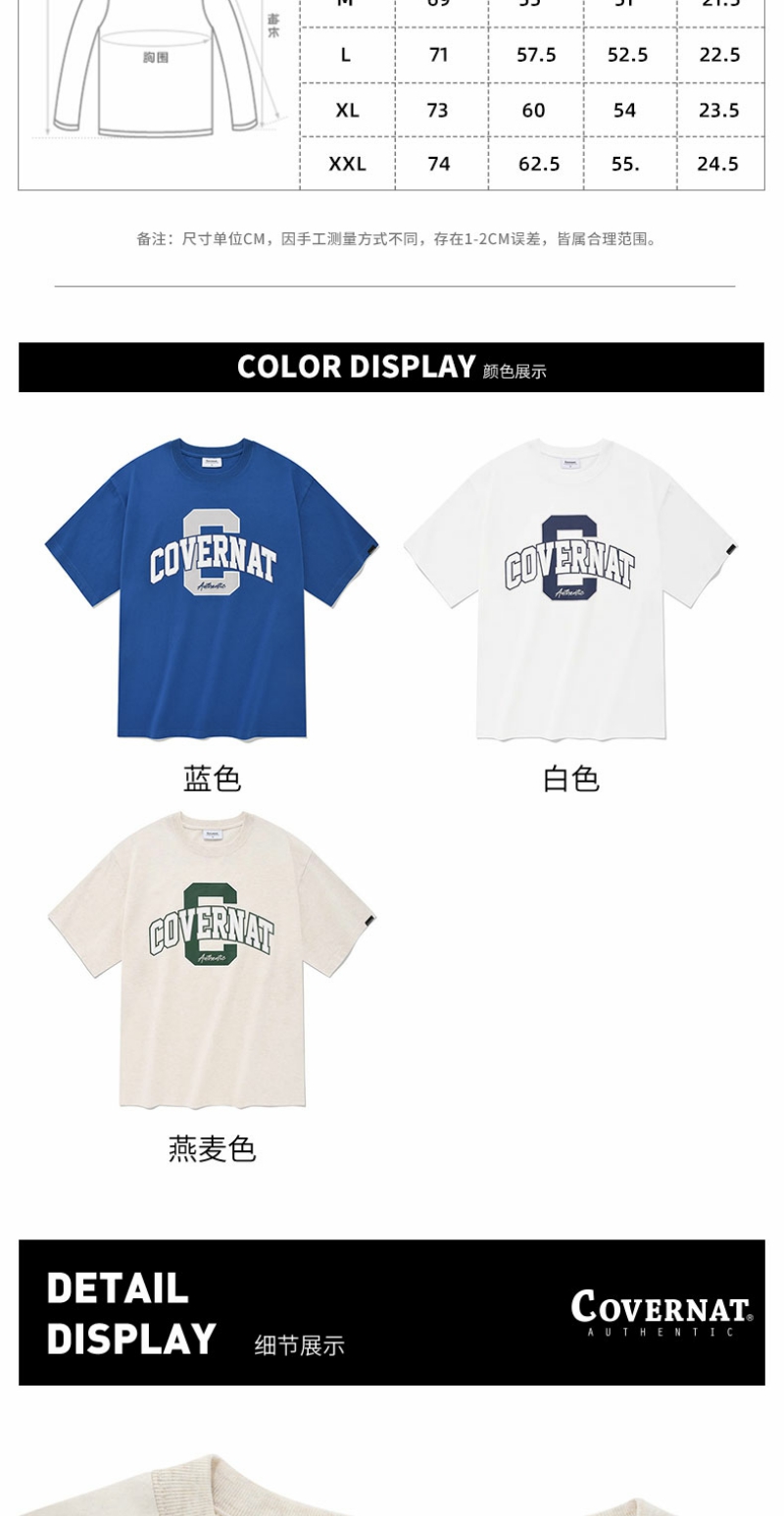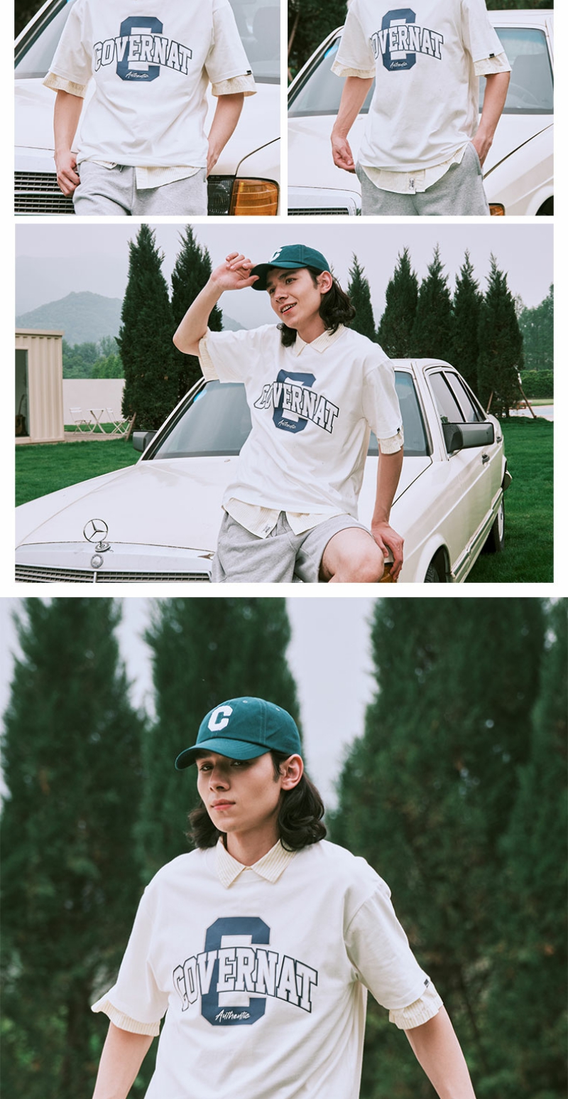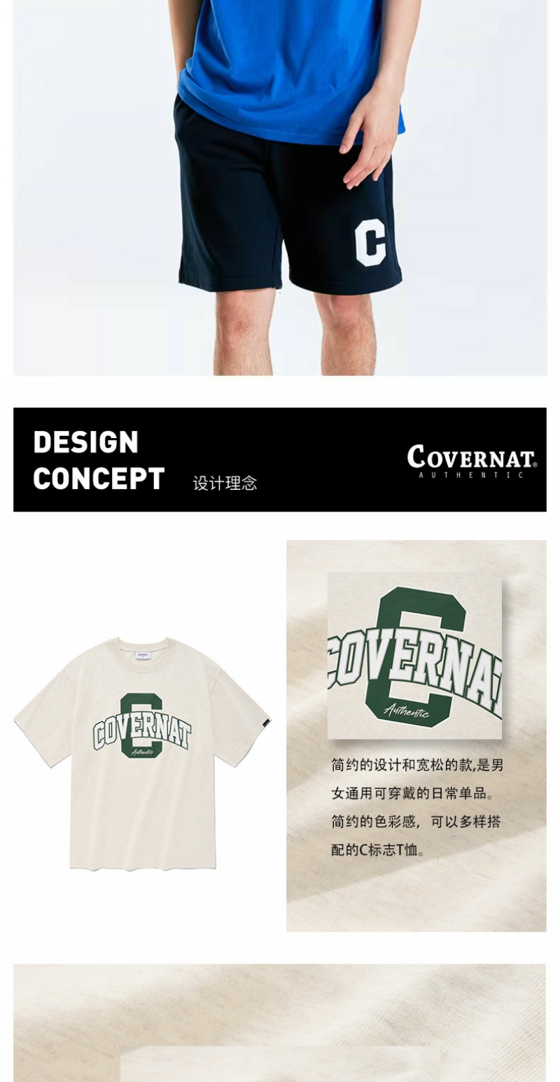 covernat韩国潮牌短袖T恤无性别拱形字母标简约休闲圆领上衣CO2302ST05