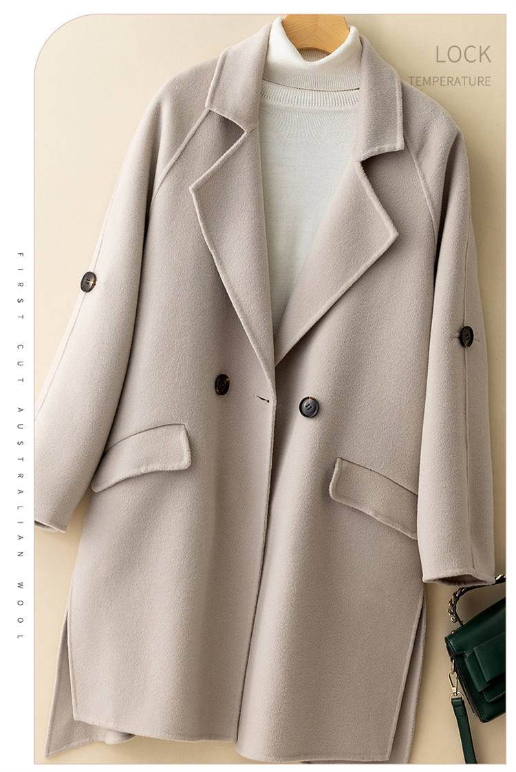 SimpleRetro高级感羊毛长款双面呢大衣女