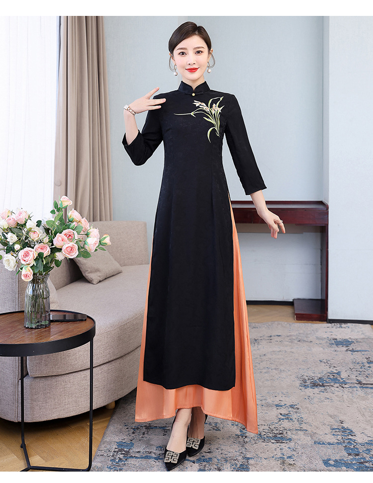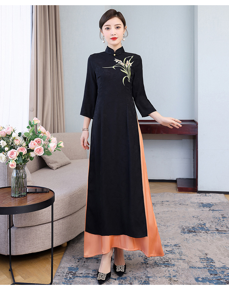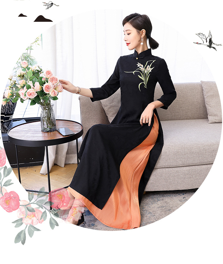 AHM dys6962年轻款长袖复古中国风改良连衣裙