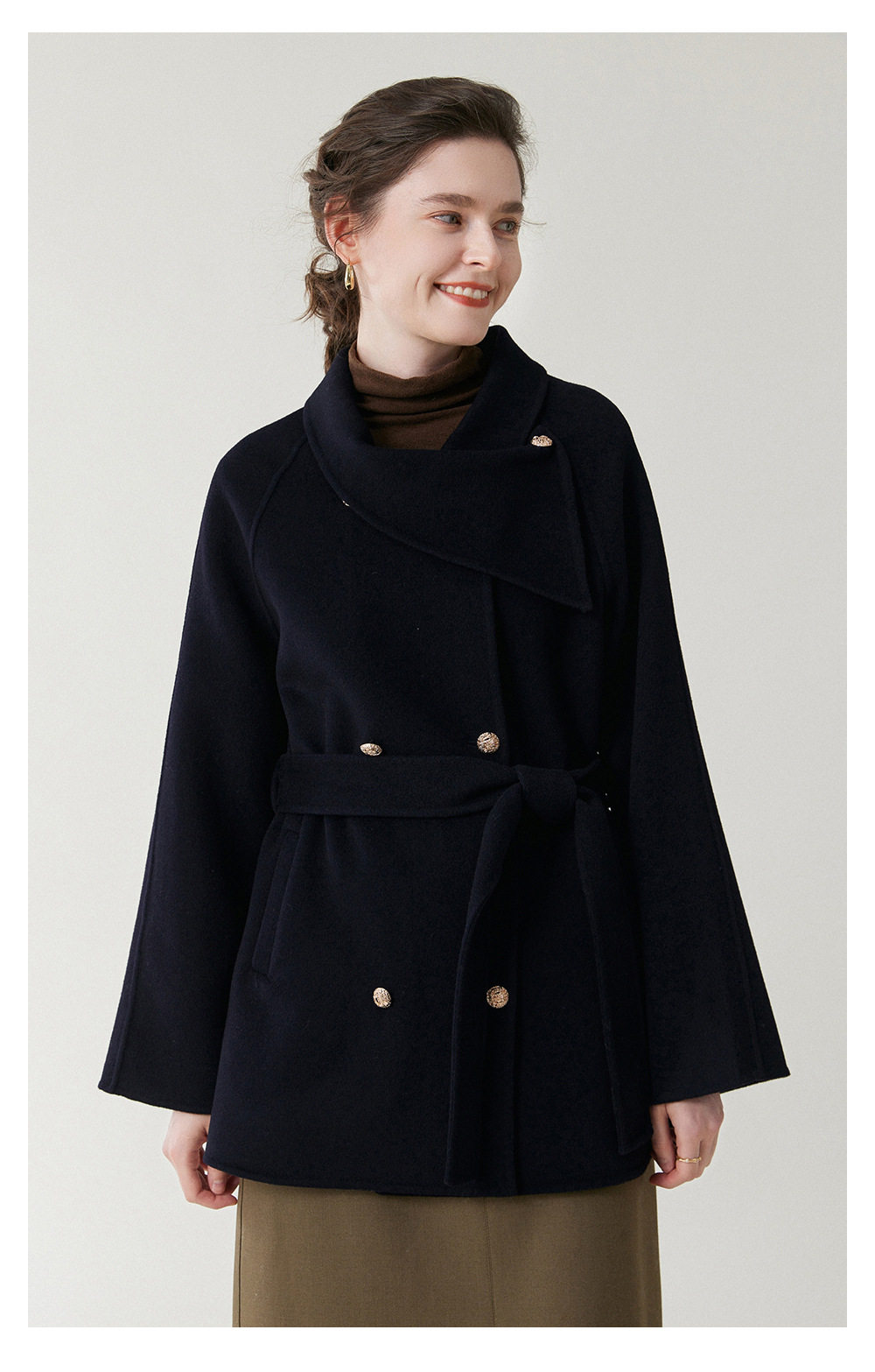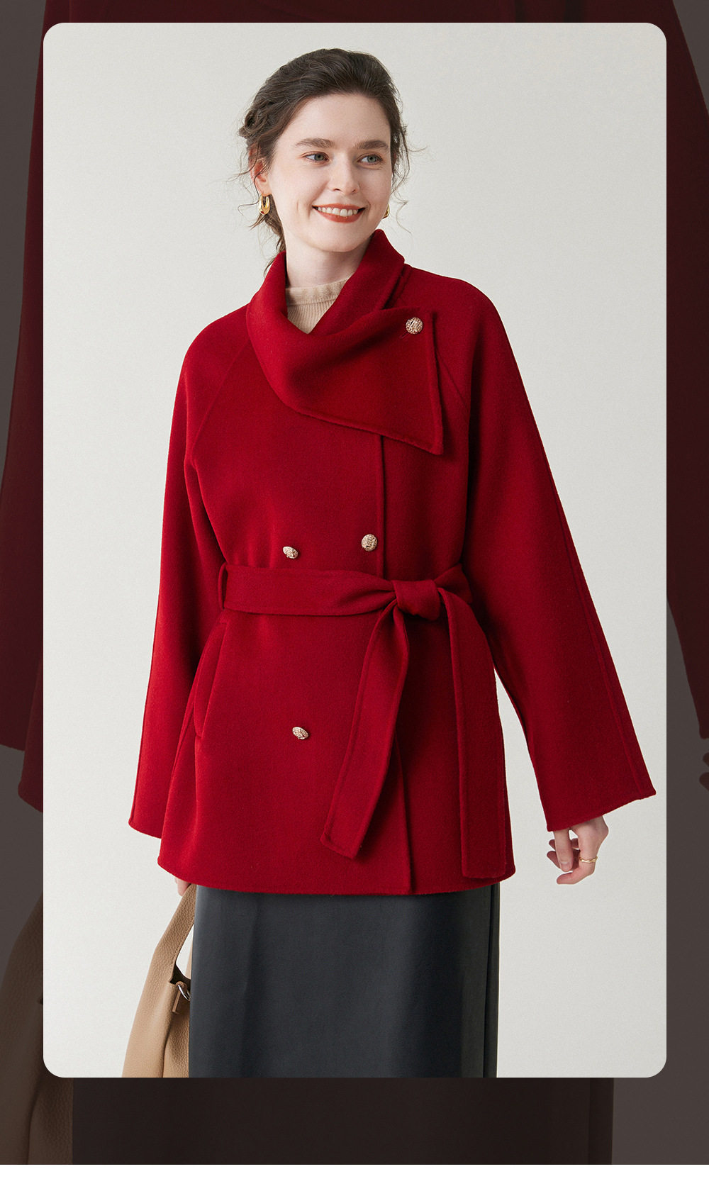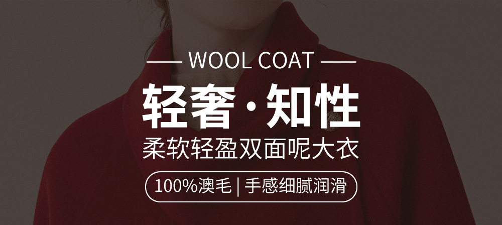 「自」全新升级【铂金会员349/天猫469/差价120】(22248)洛诗琳新年红羊毛双面呢大衣2025冬季围脖领中长款呢子外套